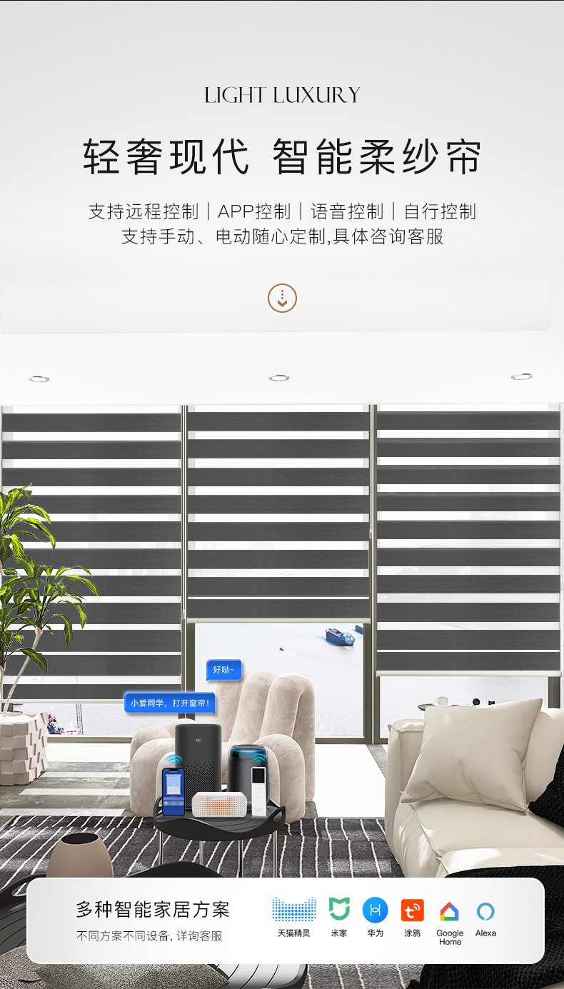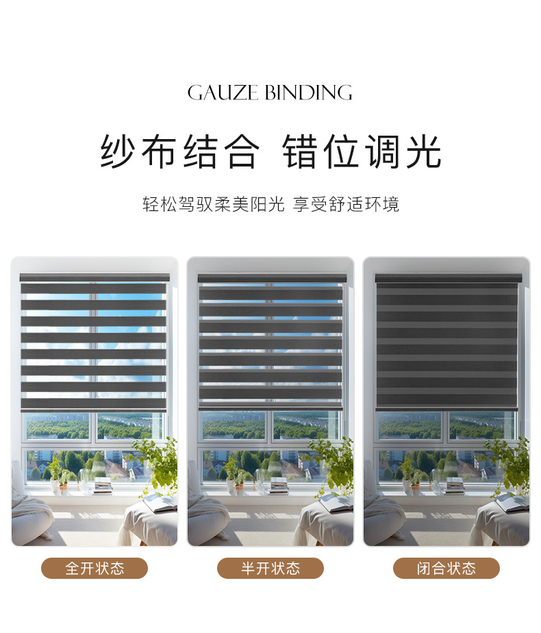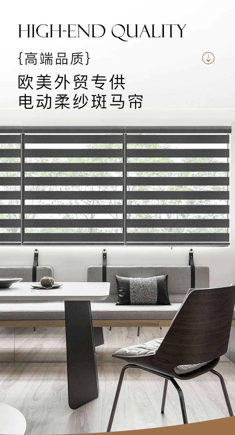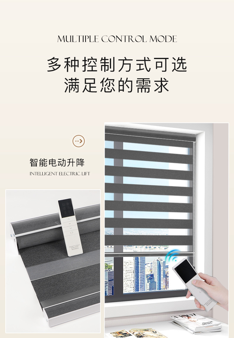 유럽과 미국의 뜨거운 판매 검은 얼룩말 커튼 국경 방수 지능형 전기 롤러 셔터 사무실 전체 음영 부드러운 거즈 커튼스토어 가기