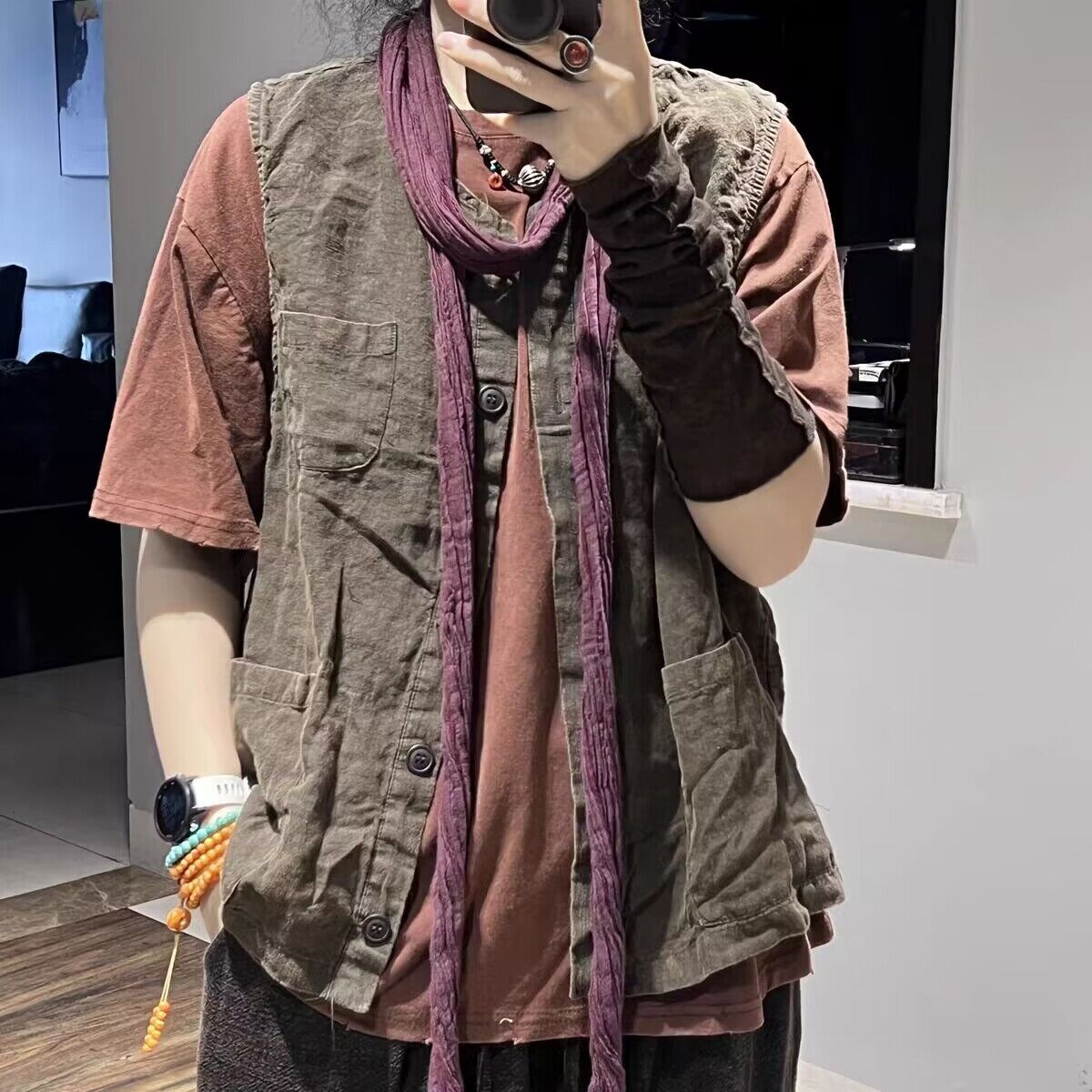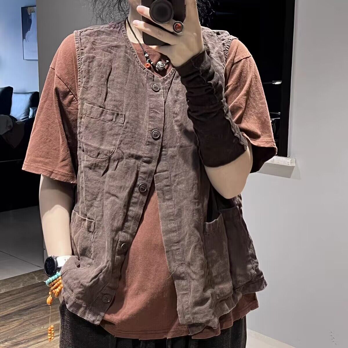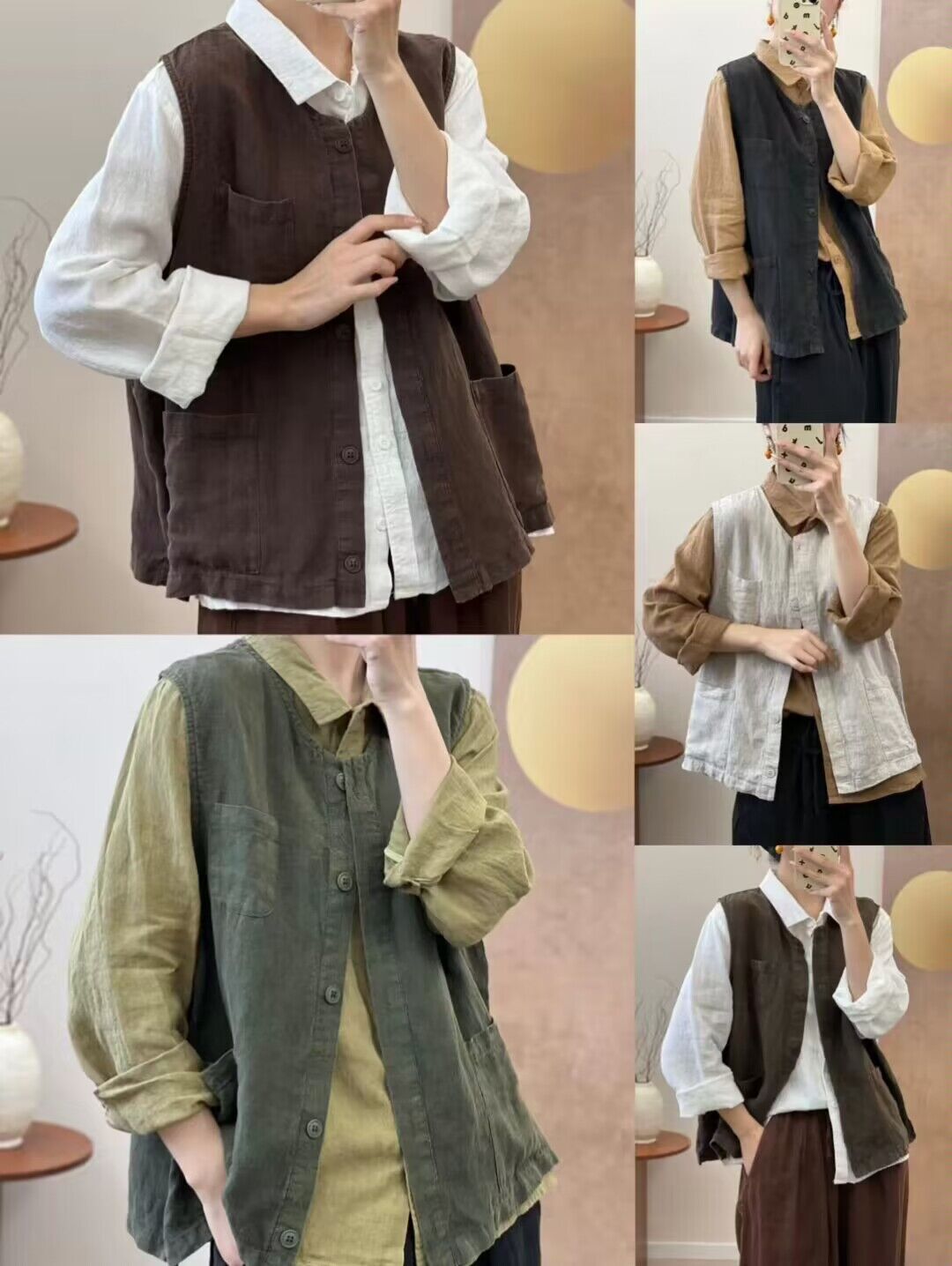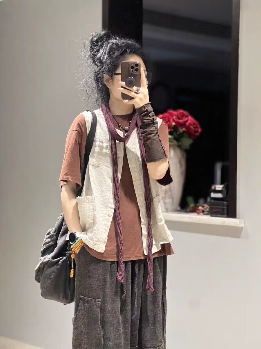 리넨 조끼 여자 2024 가을 빈티지 예술적 우아한 루즈 슬리밍 올 매치 샌드 워시블 올드 민소매 탑 조끼스토어 가기