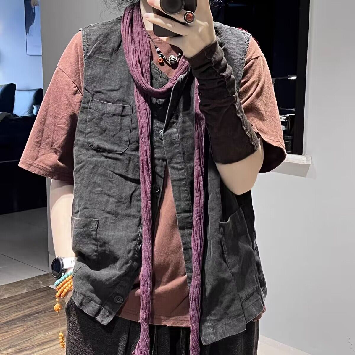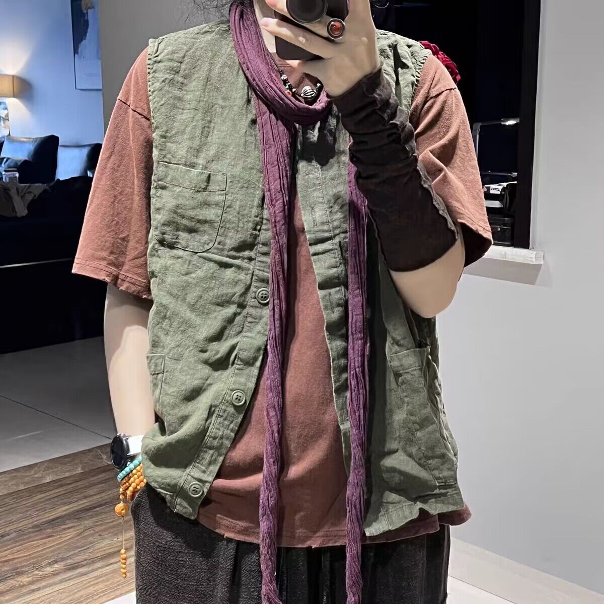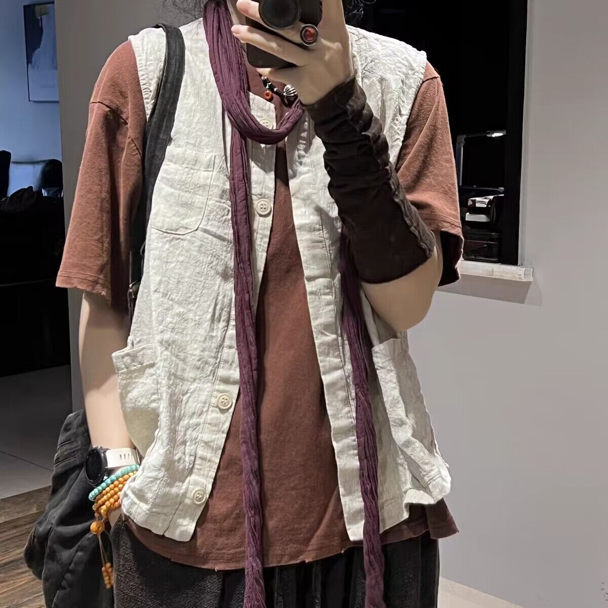 리넨 조끼 여자 2024 가을 빈티지 예술적 우아한 루즈 슬리밍 올 매치 샌드 워시블 올드 민소매 탑 조끼스토어 가기