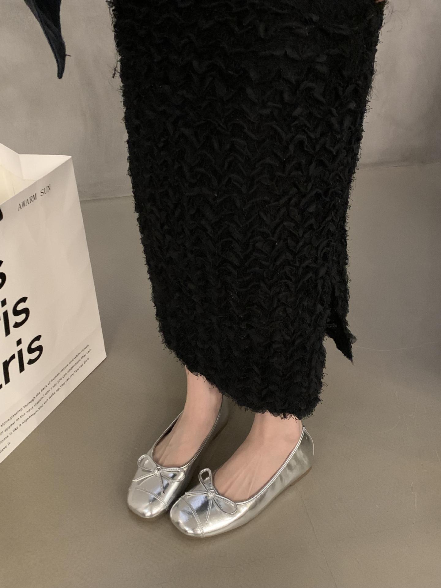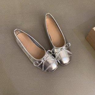 프랑스 플랫 얕은 입 여성 신발 2024 새로운 빈티지 스웨이드 레드 신발 요정 스타일 발레 완두콩 신발
