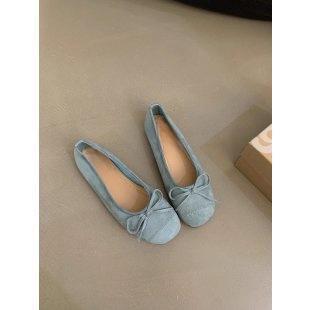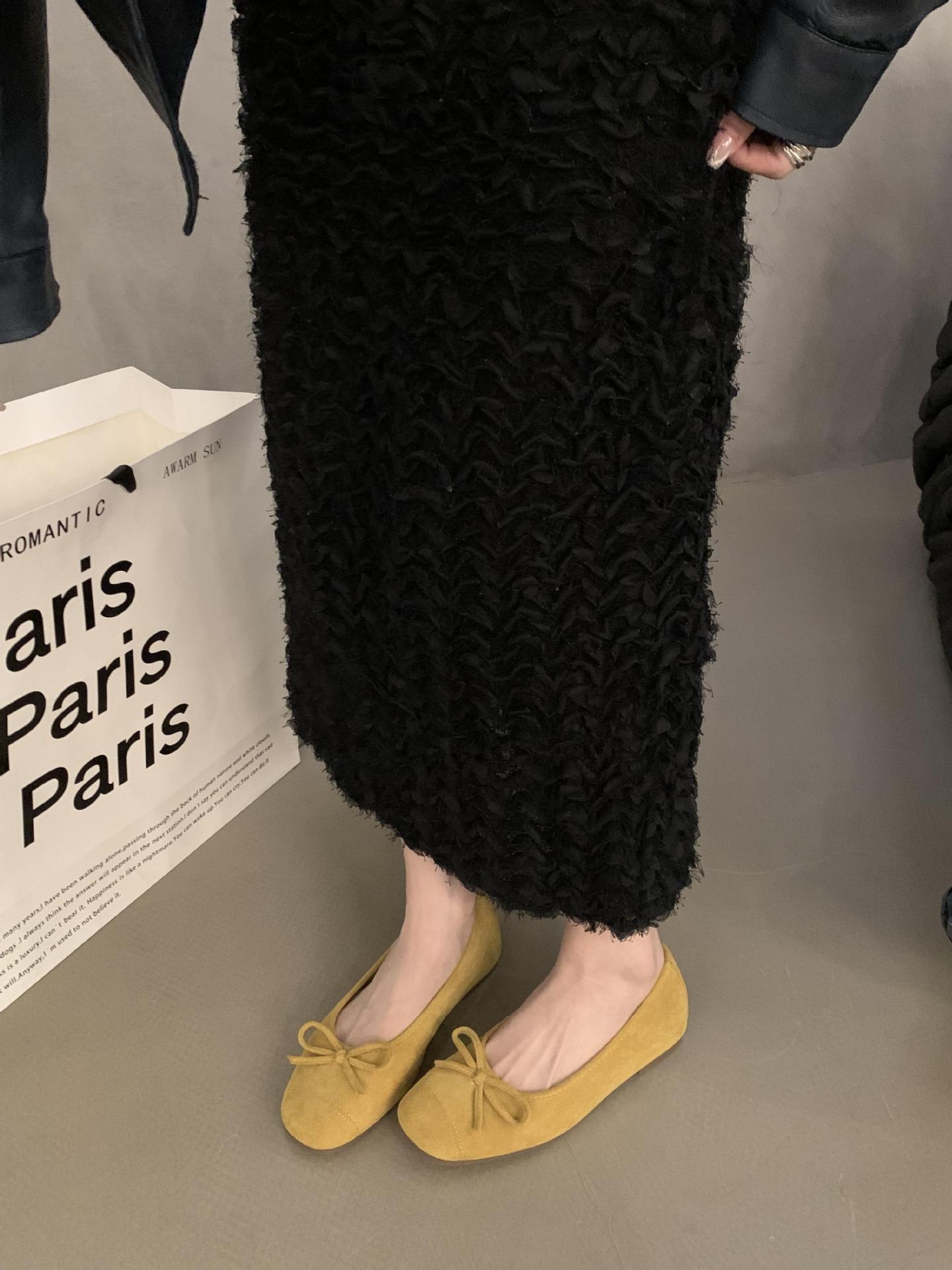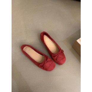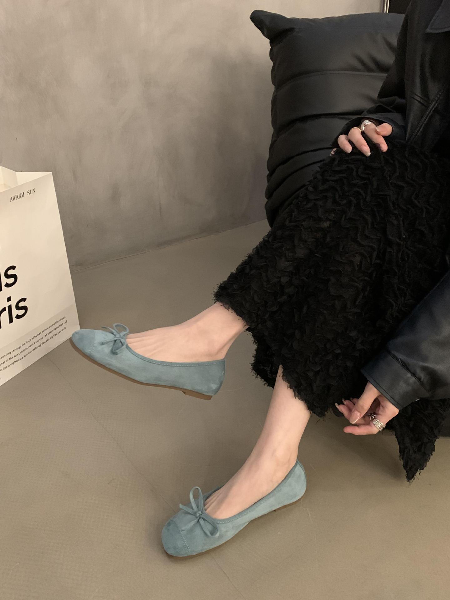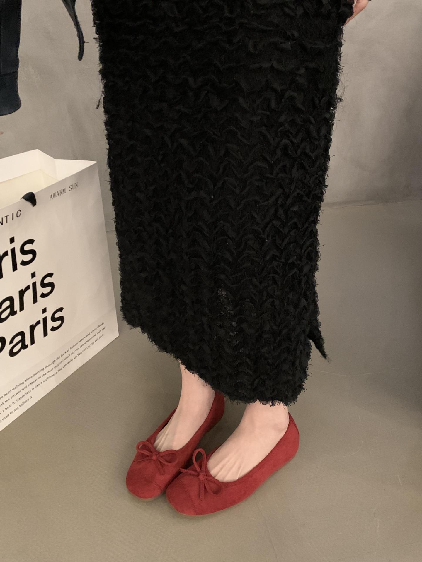 프랑스 플랫 얕은 입 여성 신발 2024 새로운 빈티지 스웨이드 레드 신발 요정 스타일 발레 완두콩 신발스토어 가기