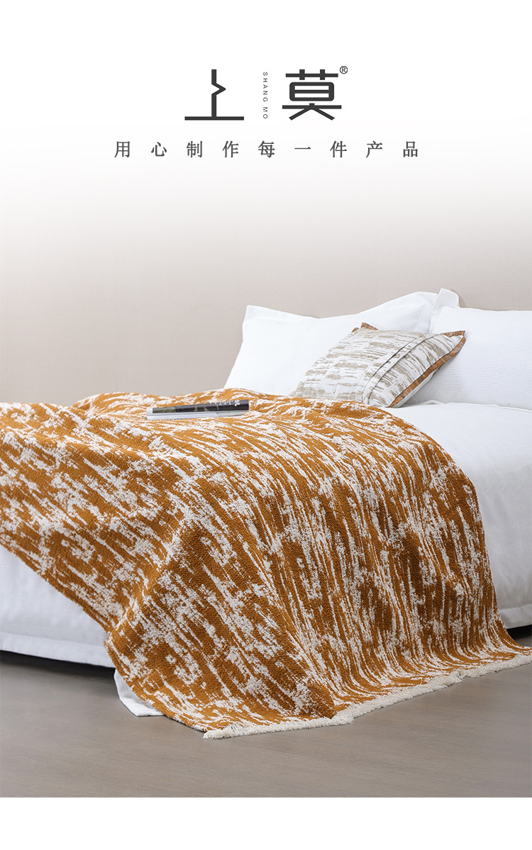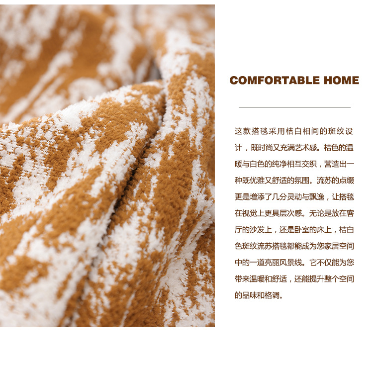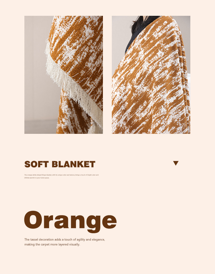 현대적인 오렌지색과 흰색 위장 술이 달린 침대 옆 담요, 호텔 B&B 빌라 모델 룸 소파 담요, 부드러운 장식을 맞춤 설정할 수 있습니다.스토어 가기