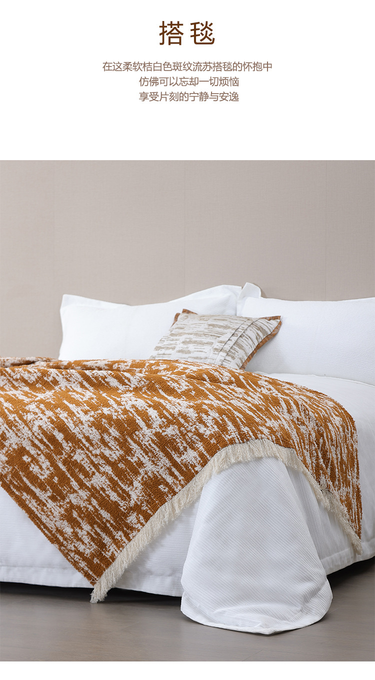 현대적인 오렌지색과 흰색 위장 술이 달린 침대 옆 담요, 호텔 B&B 빌라 모델 룸 소파 담요, 부드러운 장식을 맞춤 설정할 수 있습니다.