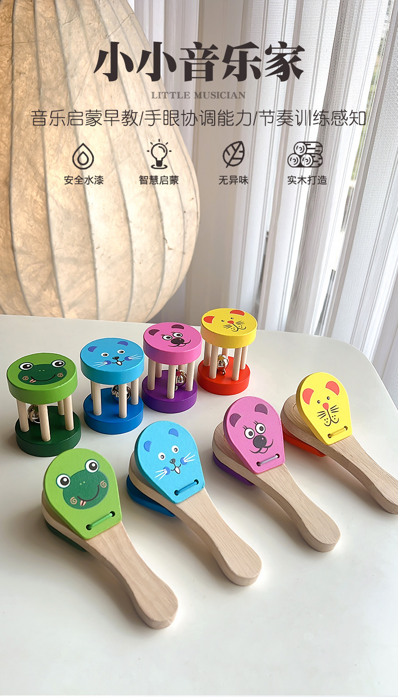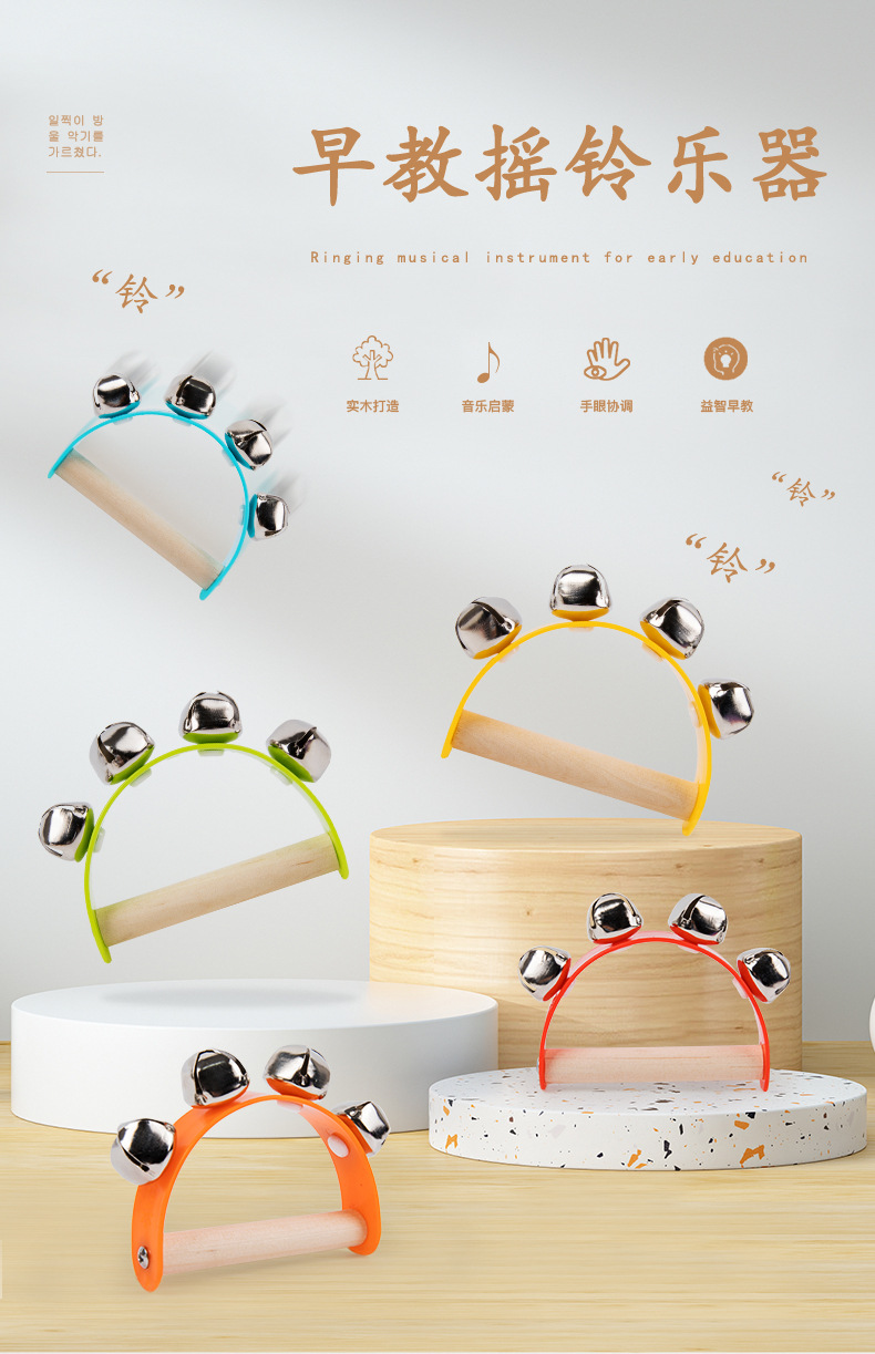 나무 몬테소리 유아 조기 교육 컴포트 베드 벨 오프 케이지 벨 아기의 핸드 헬드 벨 래틀 악기 장난감스토어 가기