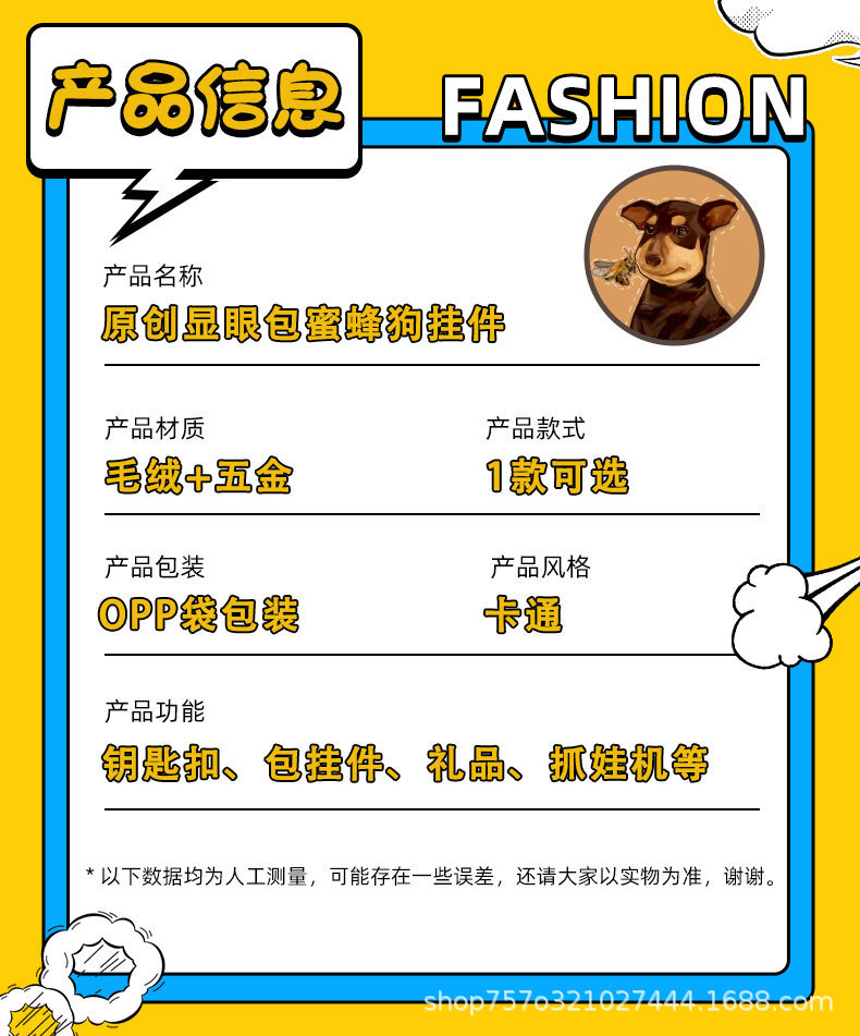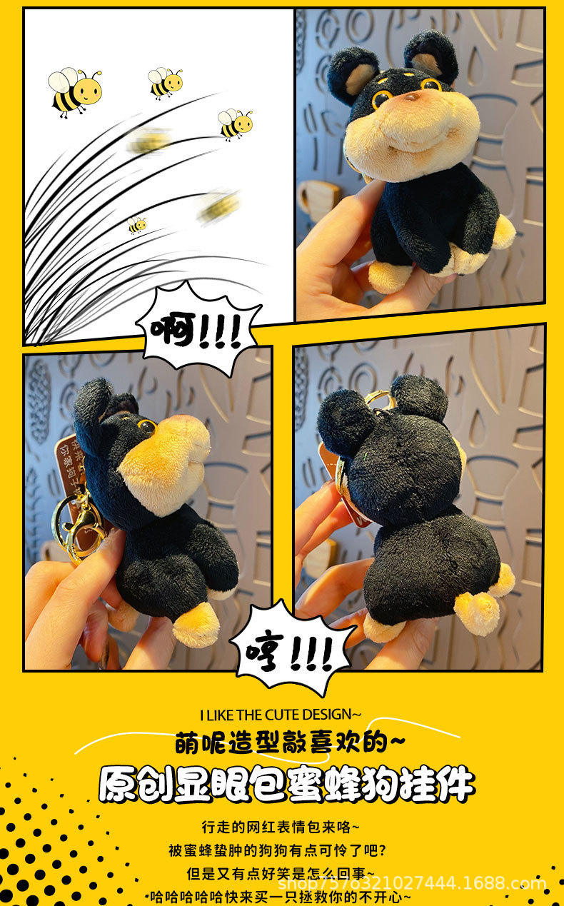 눈에 띄는 가방 봉제 장난감 꿀벌 개 키 체인 만화 가방 펜던트 키 체인 가방 펜던트 커플 선물