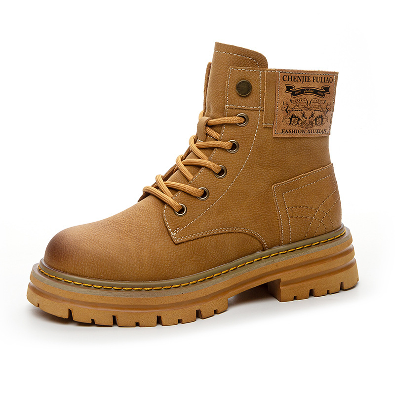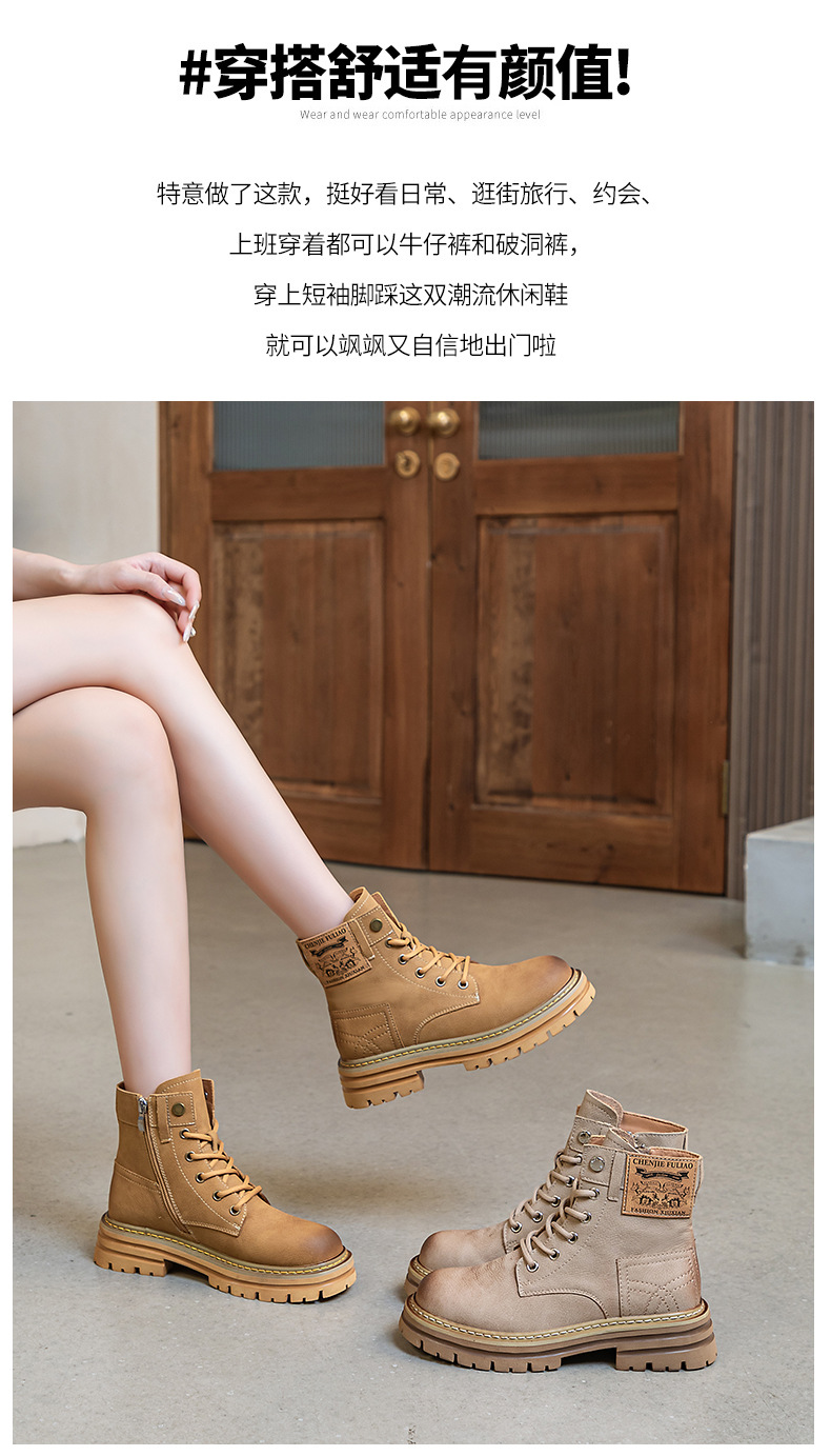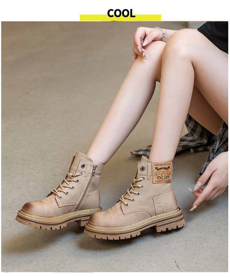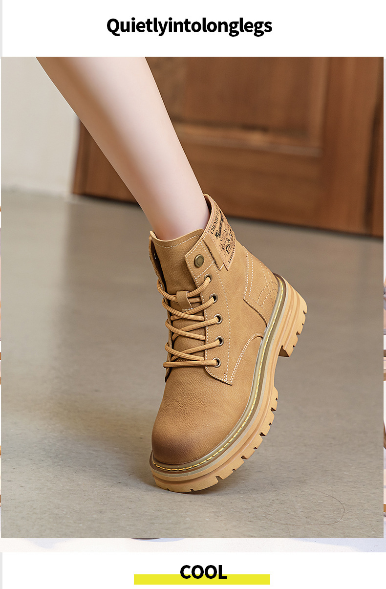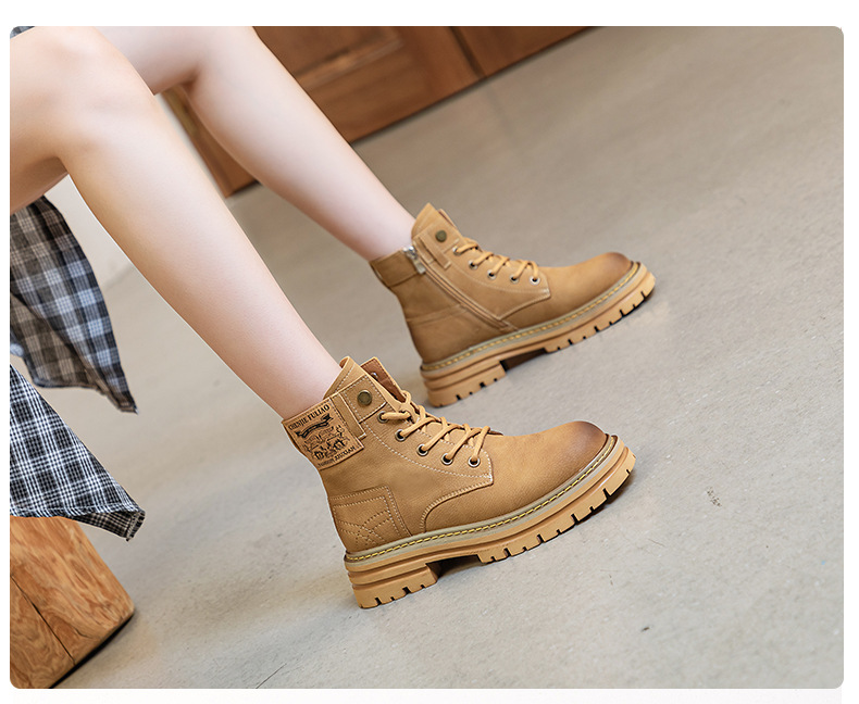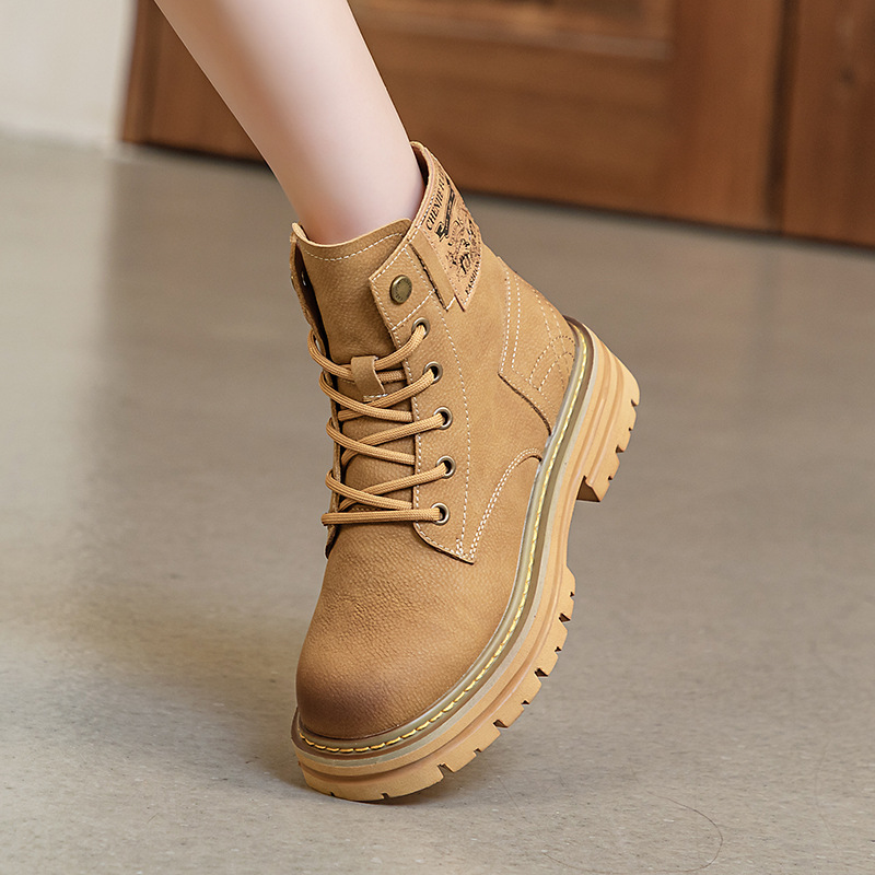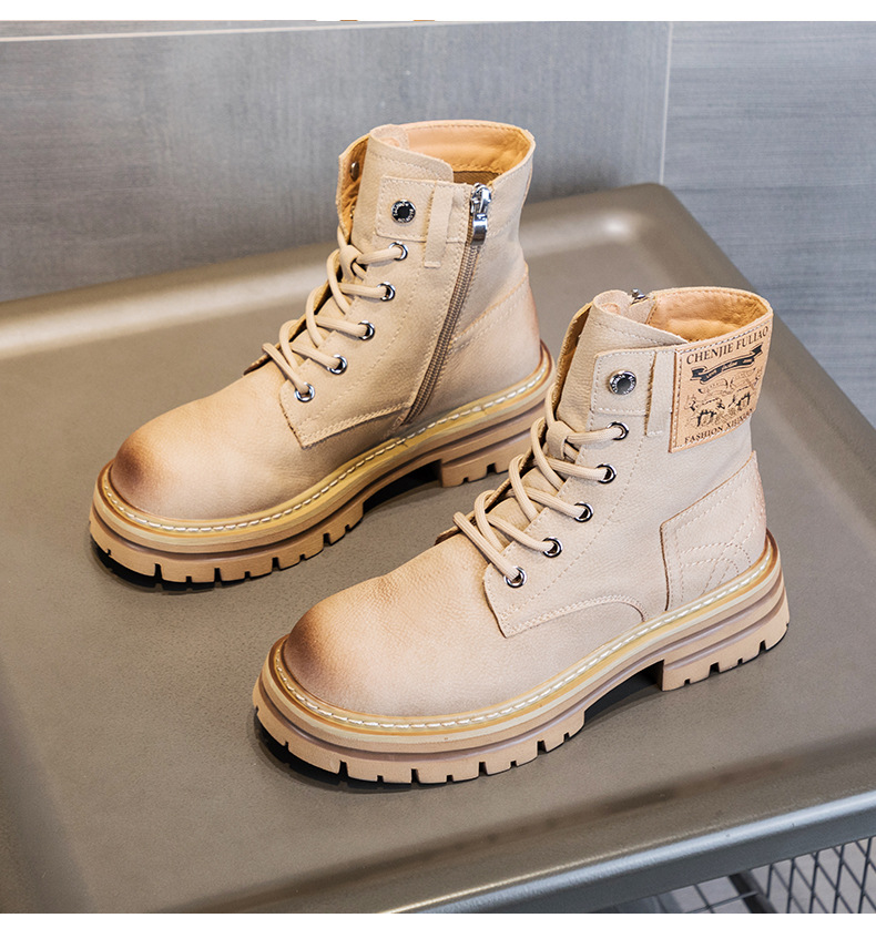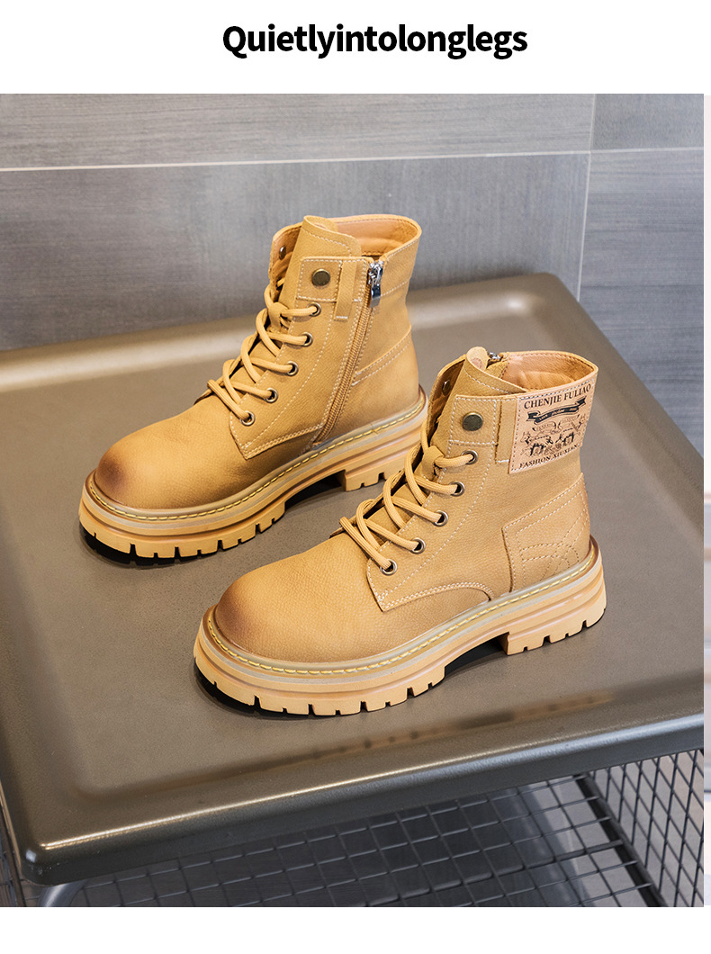 여성용 천연 가죽 마틴 부츠 2026년 여름 신상품 내부 키높이 통기성 레트로 영국풍 두꺼운 밑창 노란색 부츠스토어 가기