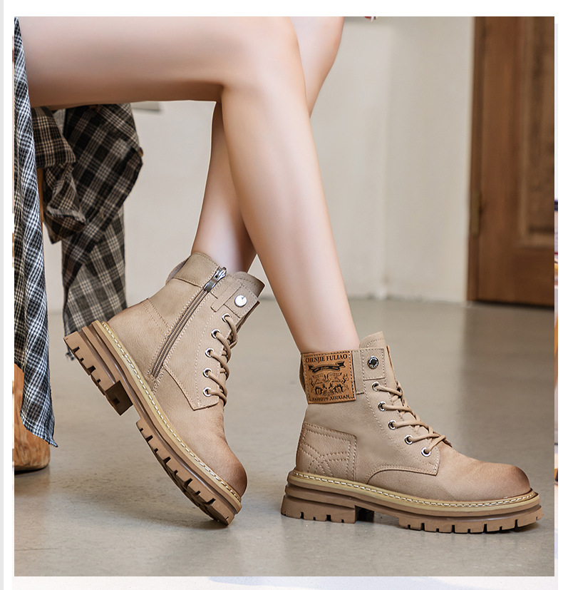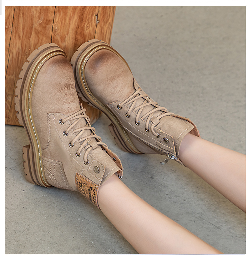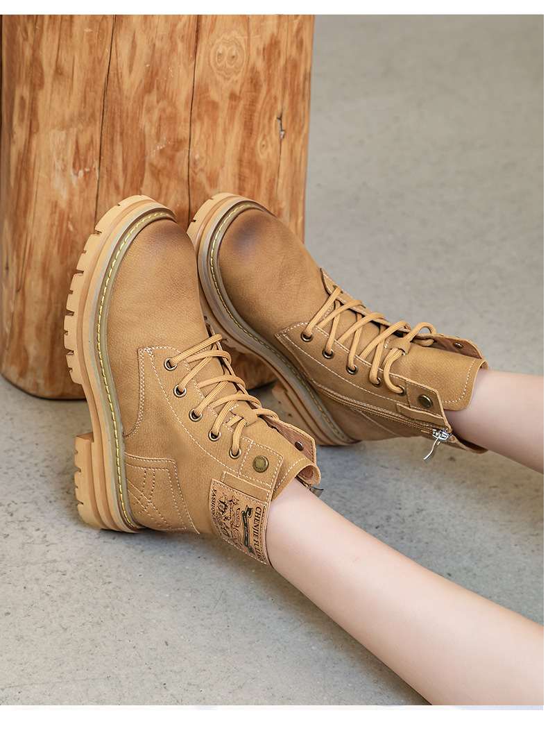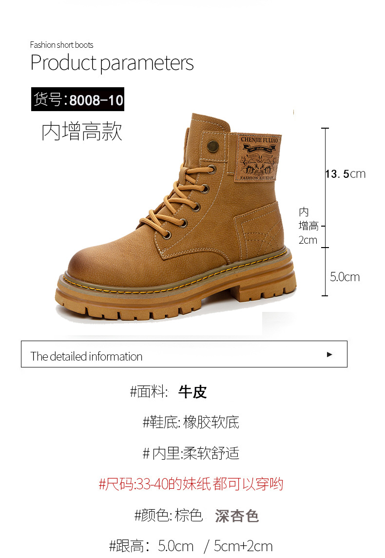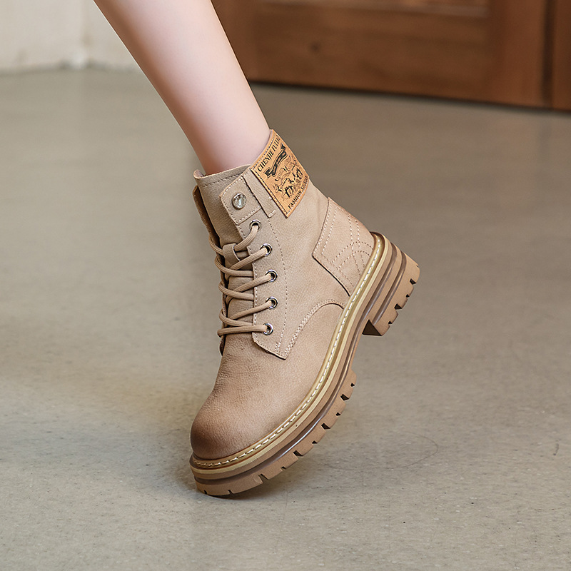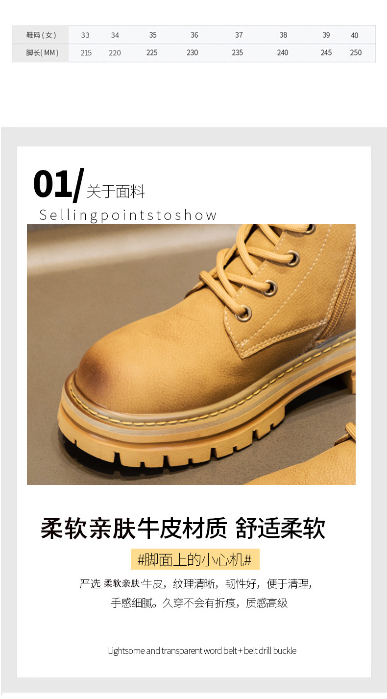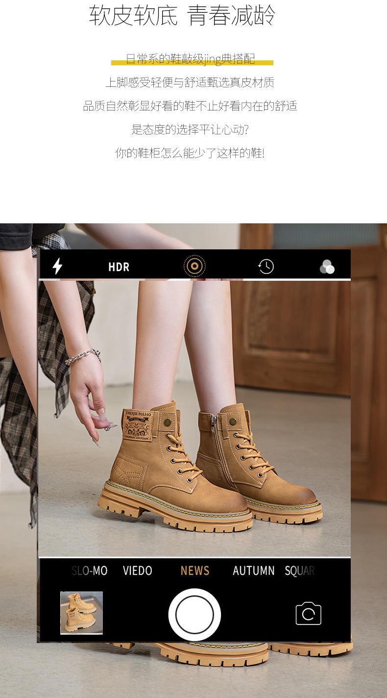 여성용 천연 가죽 마틴 부츠 2026년 여름 신상품 내부 키높이 통기성 레트로 영국풍 두꺼운 밑창 노란색 부츠스토어 가기