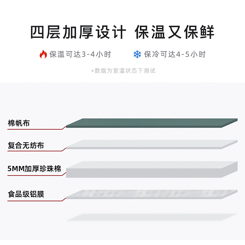 商品材质:棉帆布+珍珠棉+铝箔【环保级】