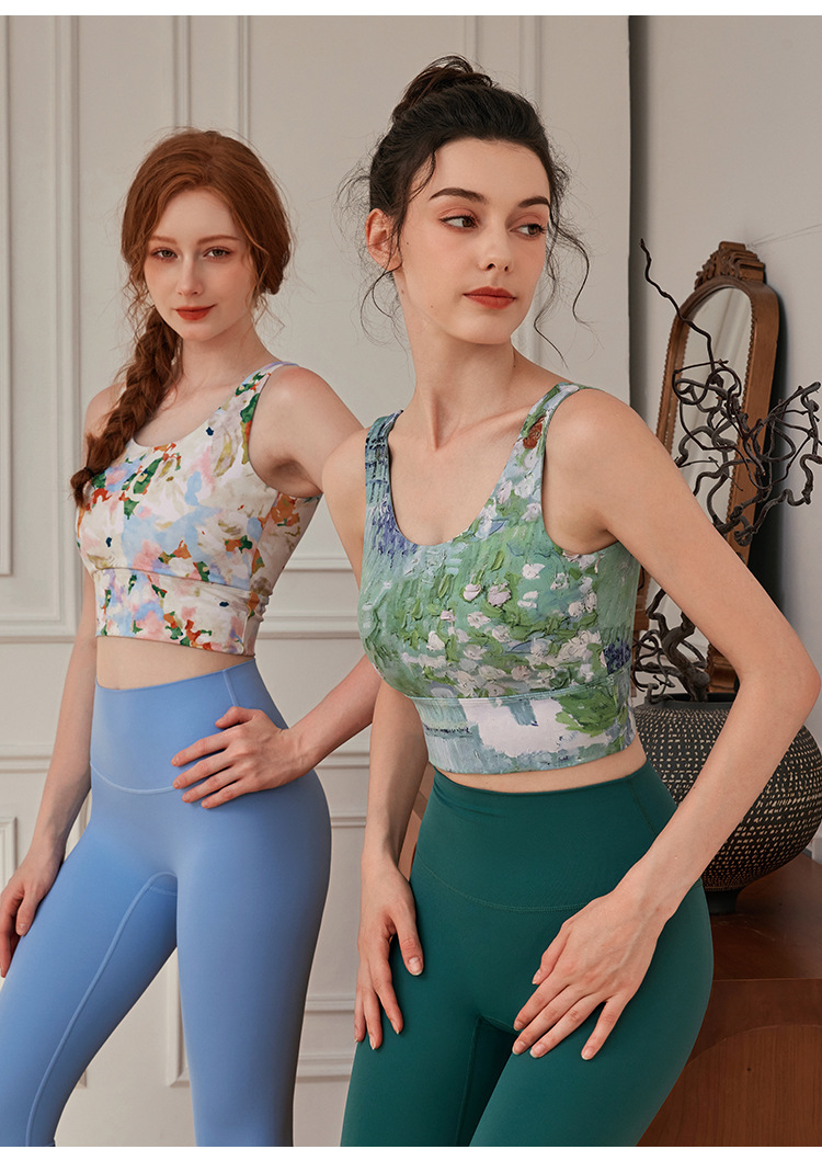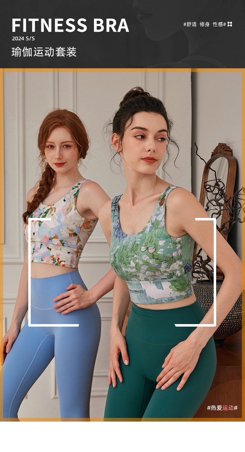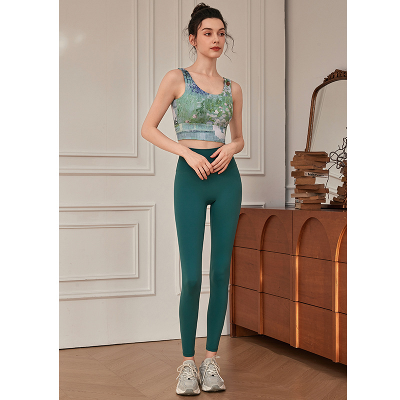 봄과 여름 새로운 요가 스포츠 조끼 고정 가슴 컵 비 달리기 조끼 높은 허리 복부 엉덩이 피트니스 바지 세트스토어 가기