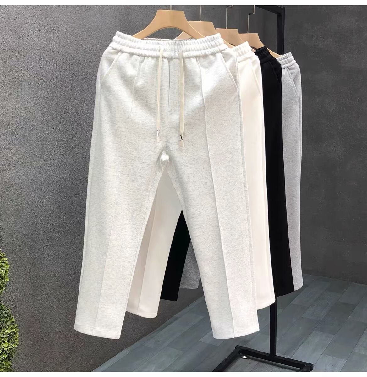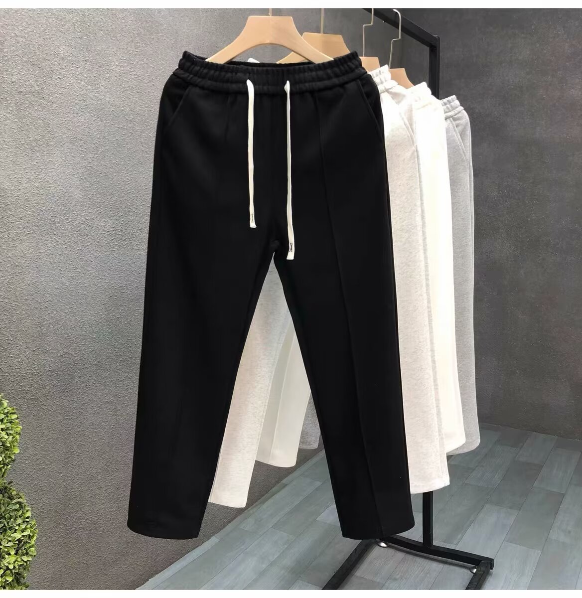 간단한 패션 화이트 바지 남자의 가을 유행 작은 직선 캐주얼 바지 2024 가을 새로운 남자의 바지스토어 가기