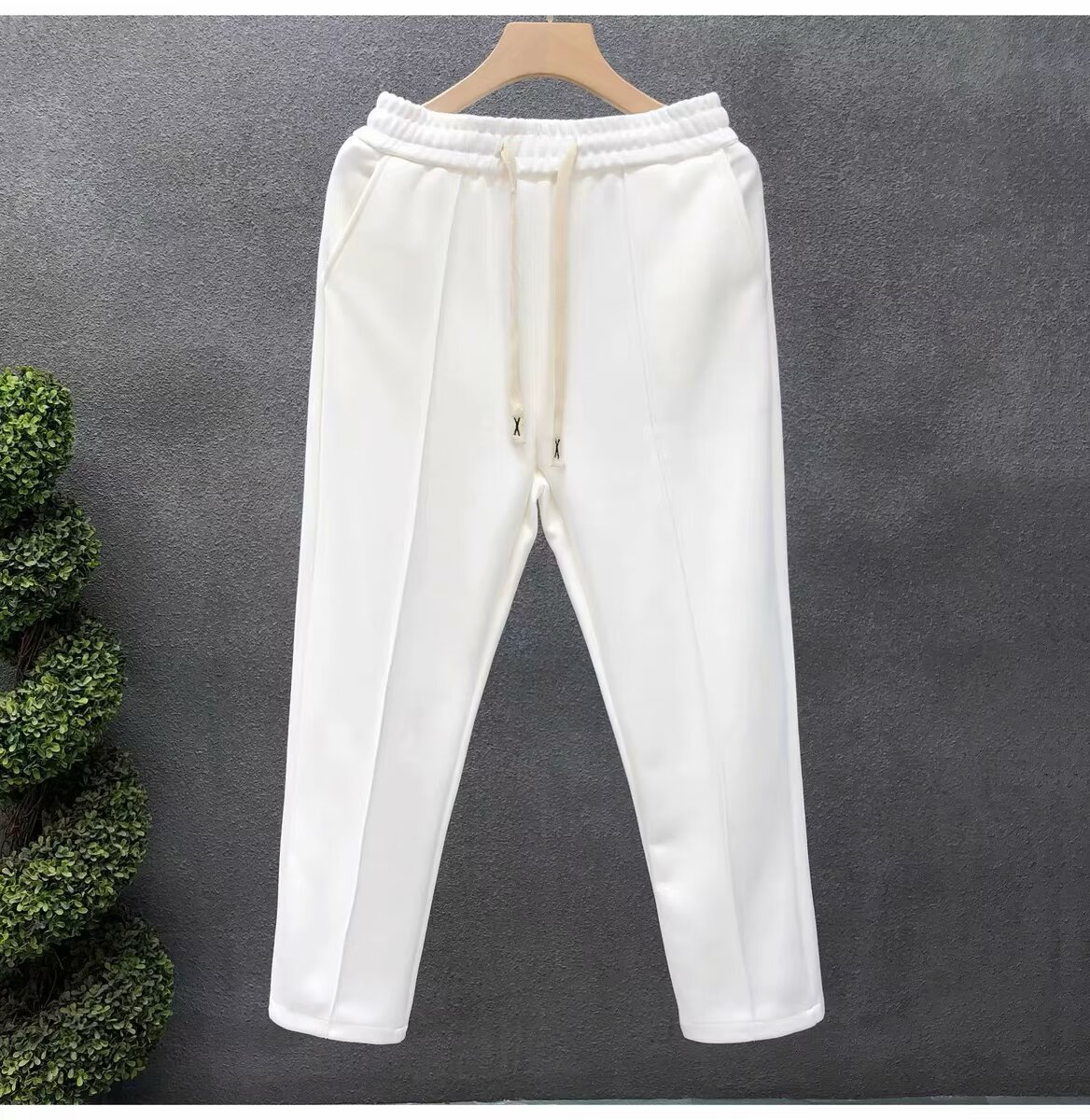간단한 패션 화이트 바지 남자의 가을 유행 작은 직선 캐주얼 바지 2024 가을 새로운 남자의 바지