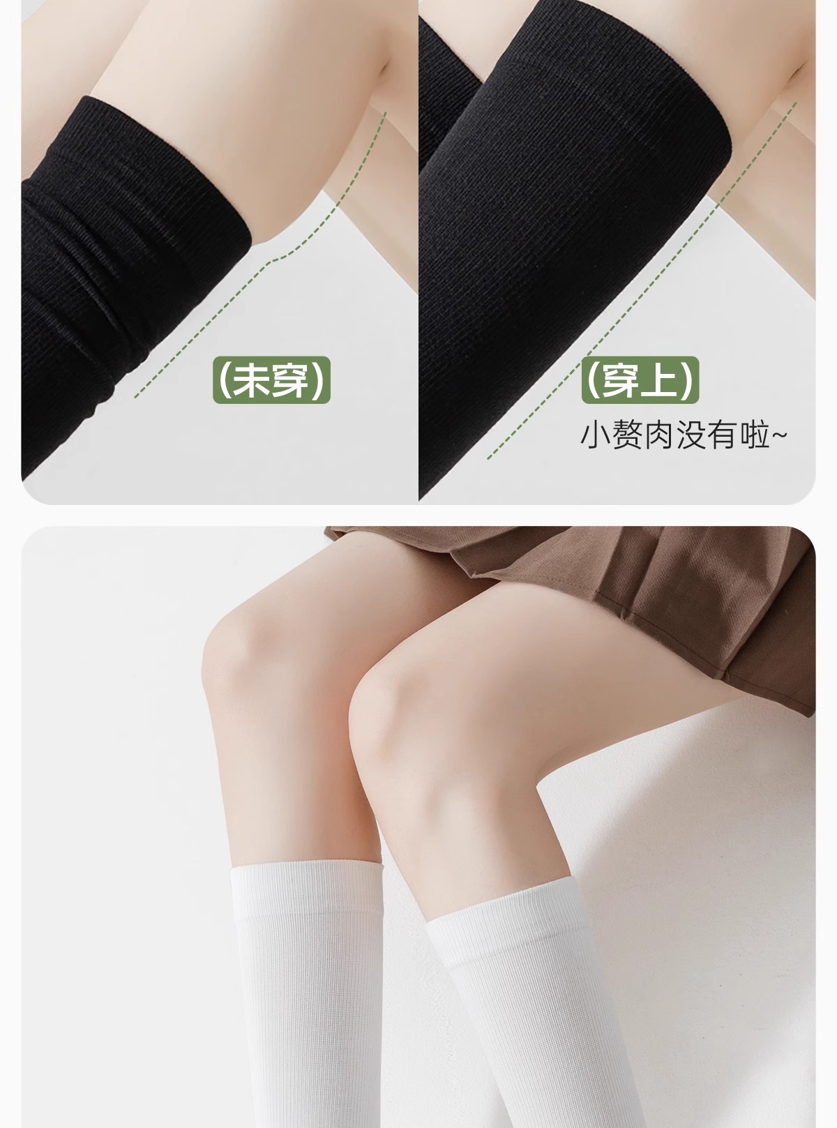• 흰색 송아지 양말 + 흰색 무릎 위 양말