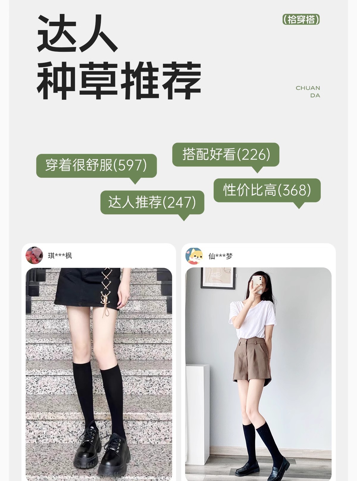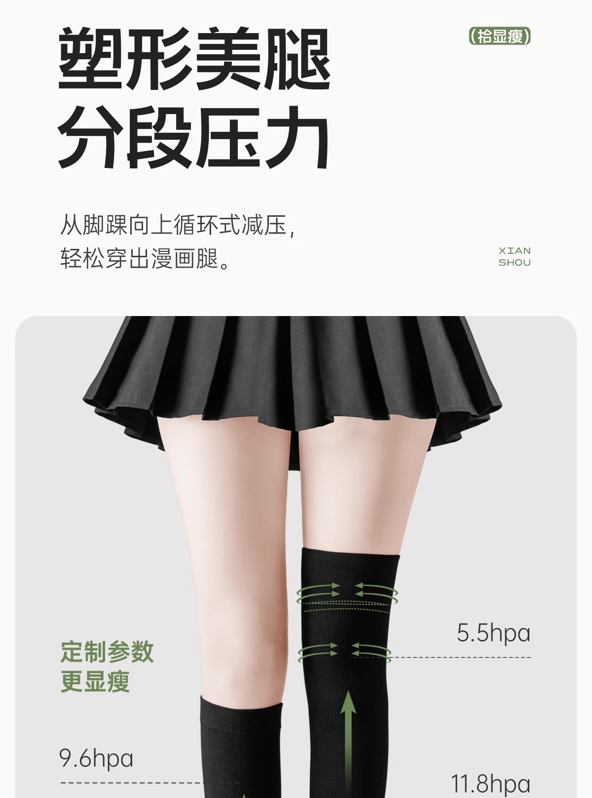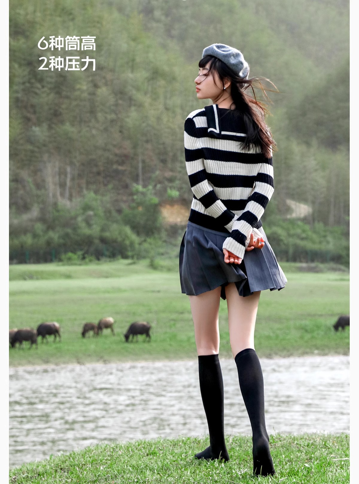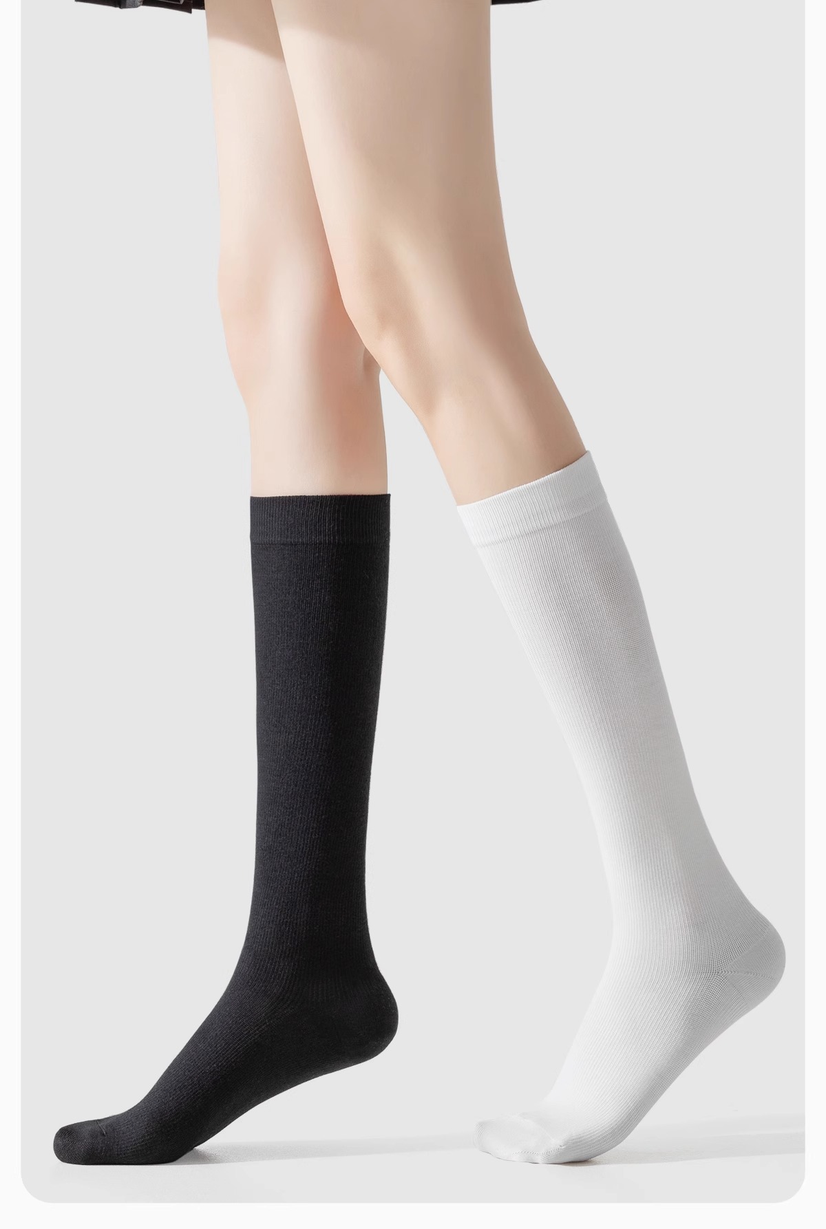 • 검은색 송아지 양말 + 흰색 무릎 위 양말