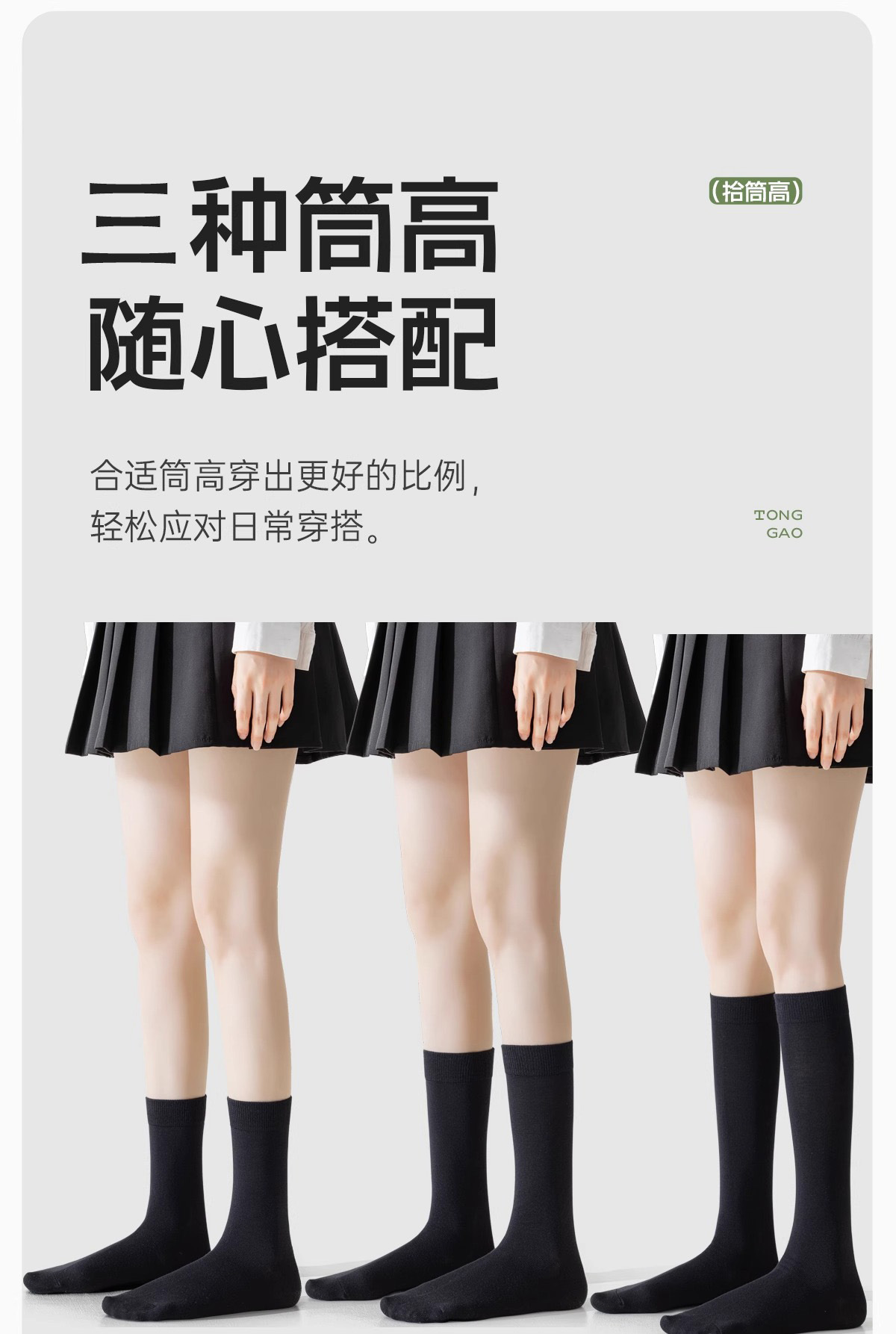 • 검은색 송아지 양말 + 검은색 무릎 위 양말