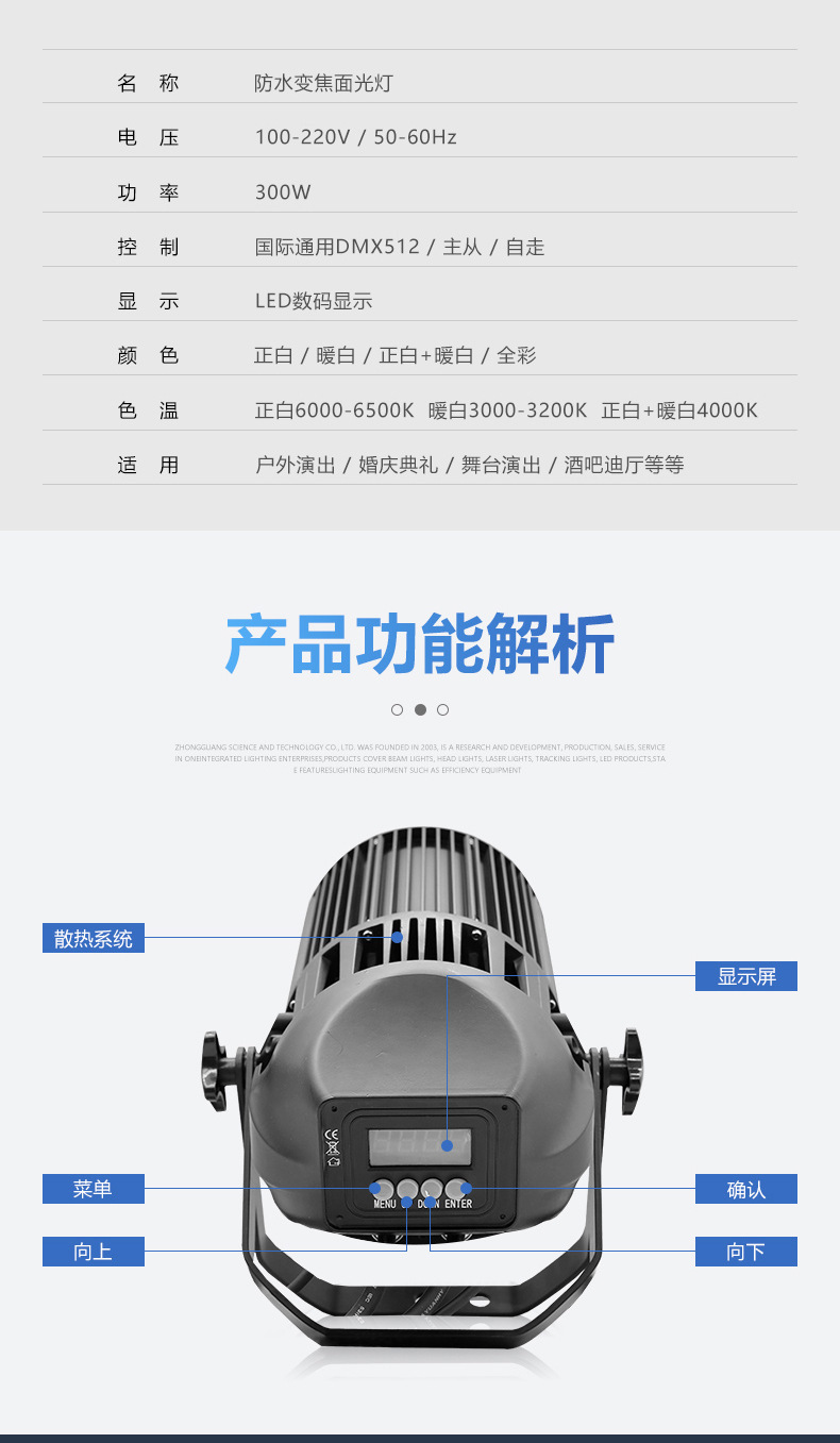 • [방수 모델] 300와트 포커싱 COB 표면 조명 [풀 컬러 포인원]