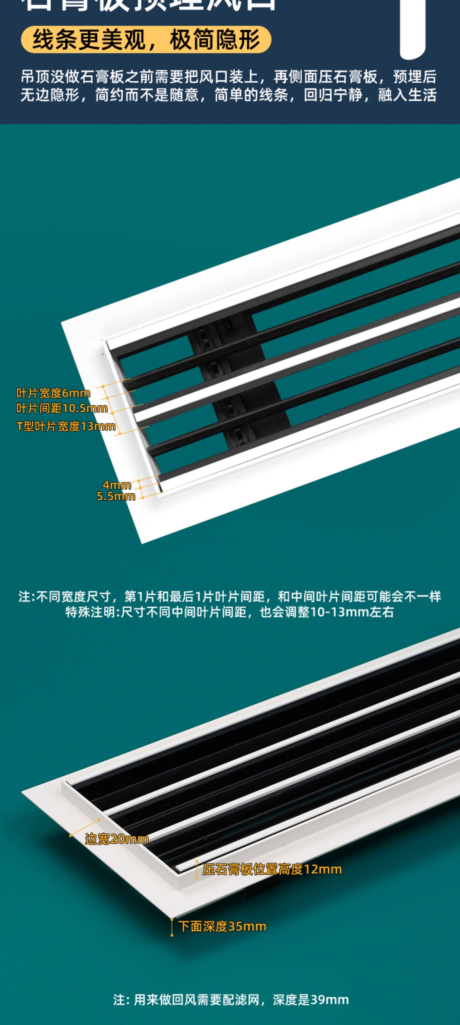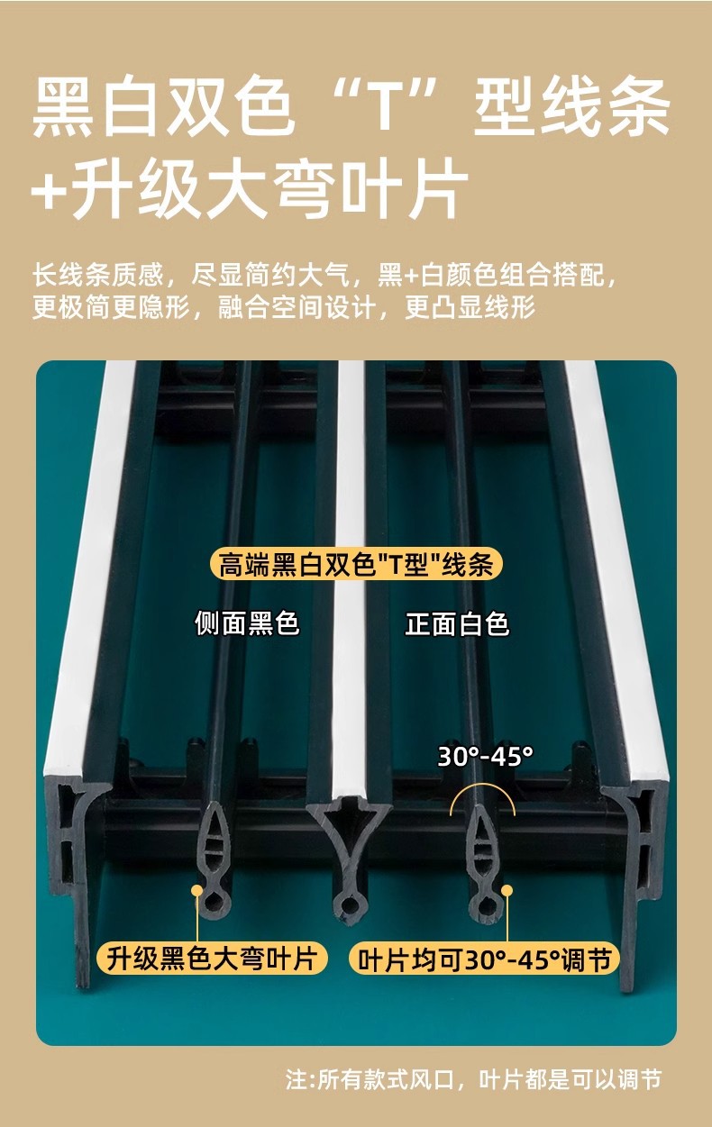 T 자형 중앙 에어컨 공기 배출구 클로 모양의 임베디드 루버 그릴 미니멀리스트 보이지 않는 공기 배출구 루버 공기 배출구