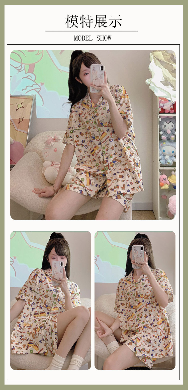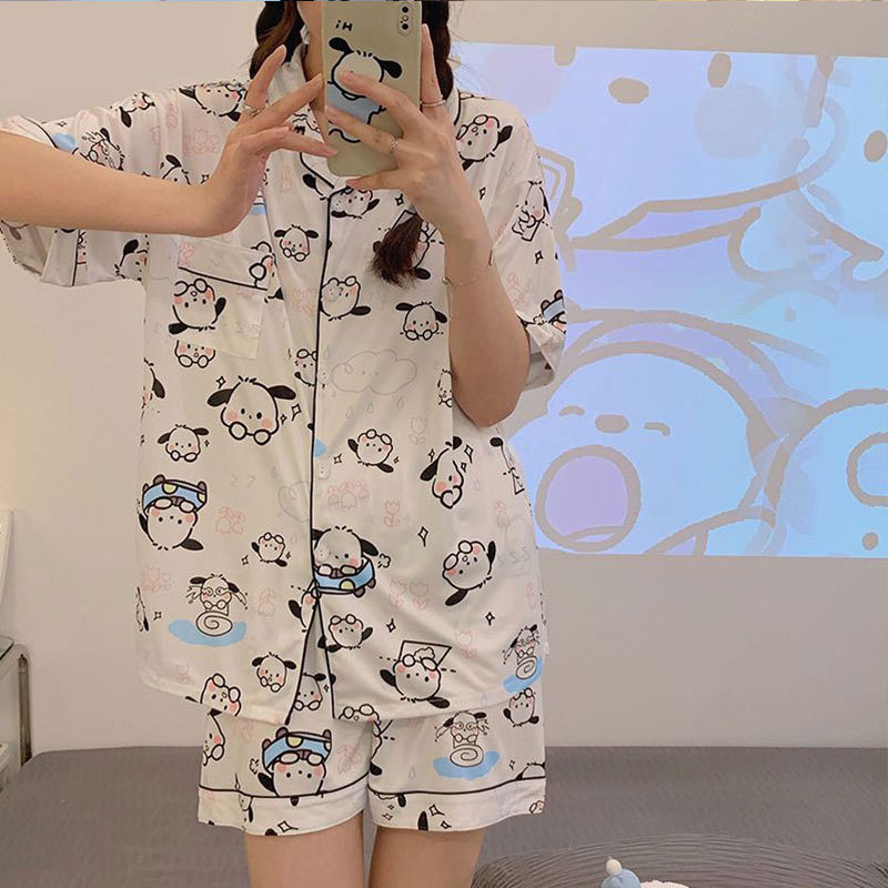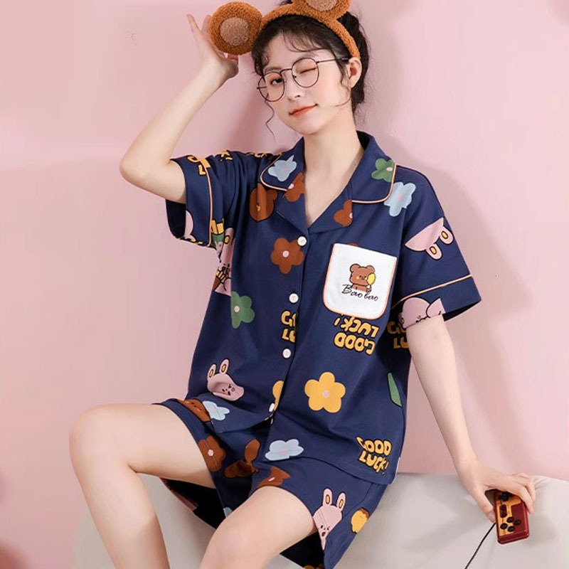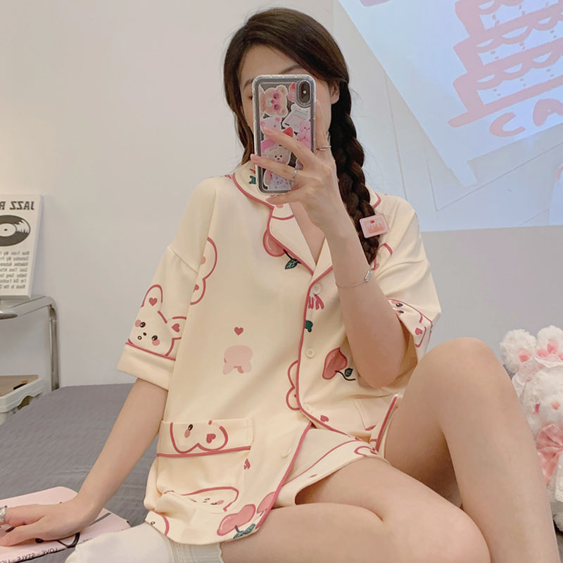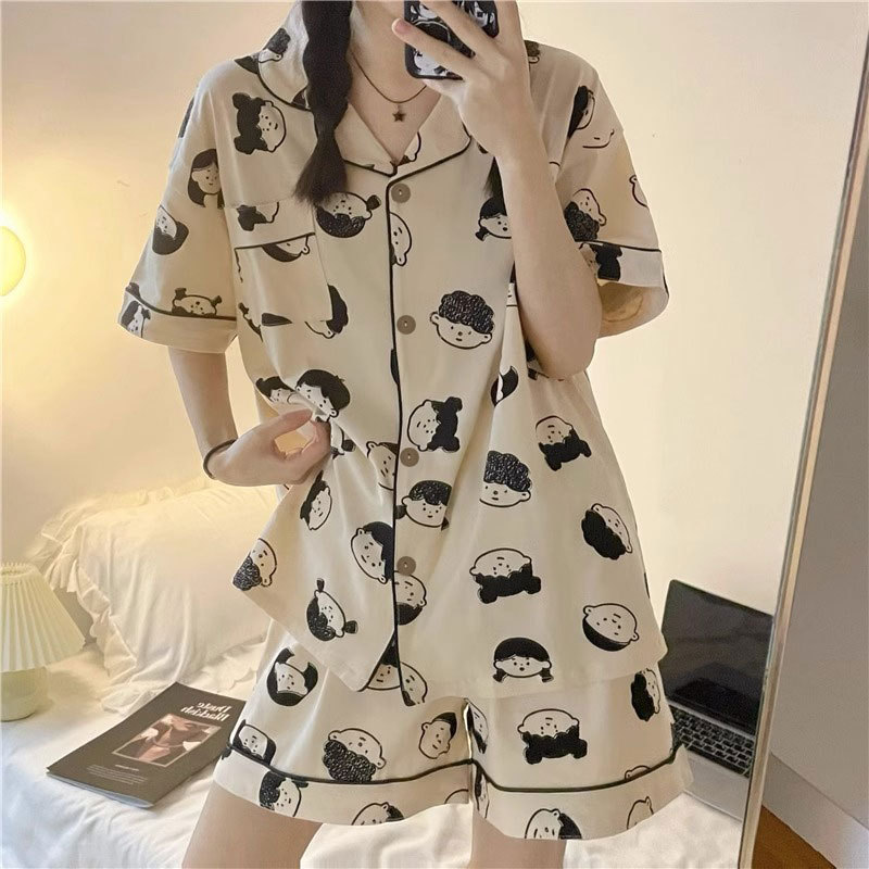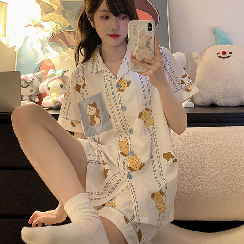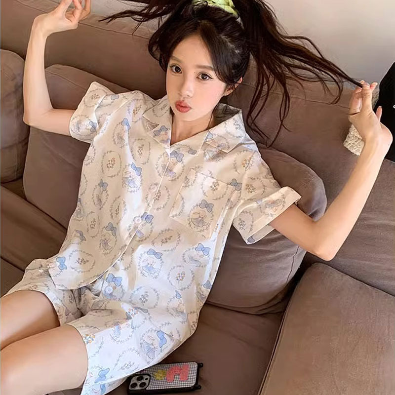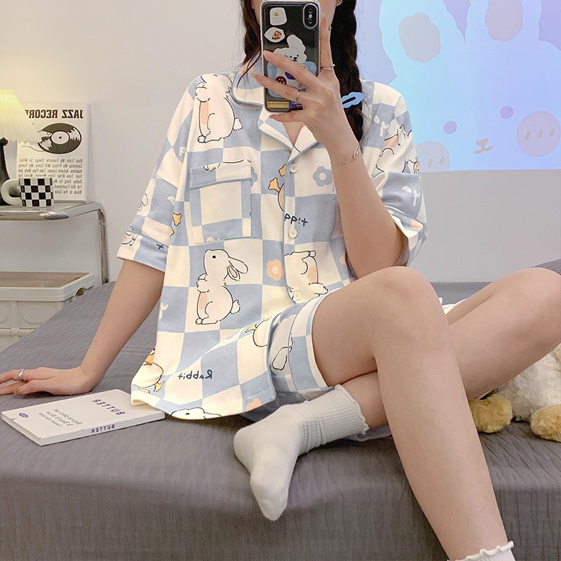 치카와 파자마 여성 여름 순면 반팔 일본 스타일 귀여운 우 사치 작은 8 세트 홈 옷스토어 가기