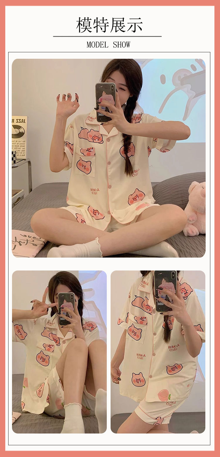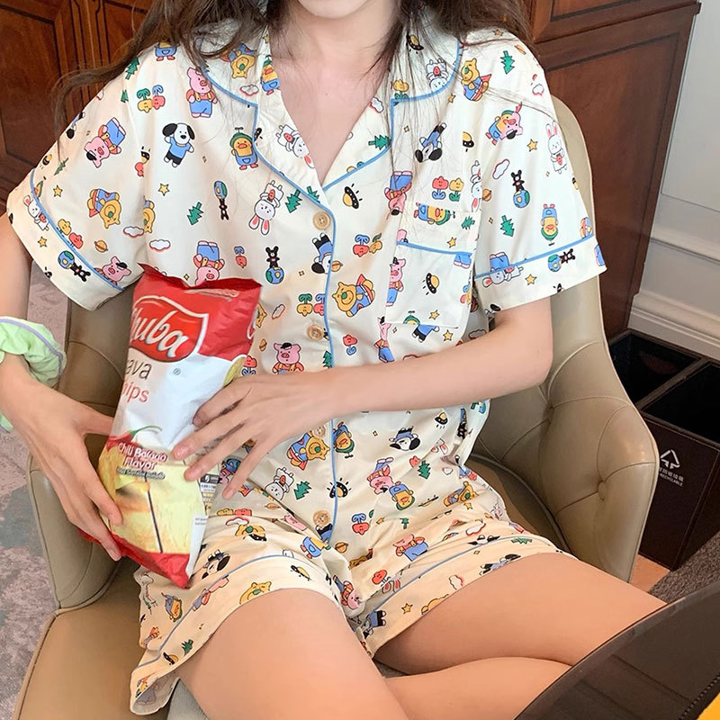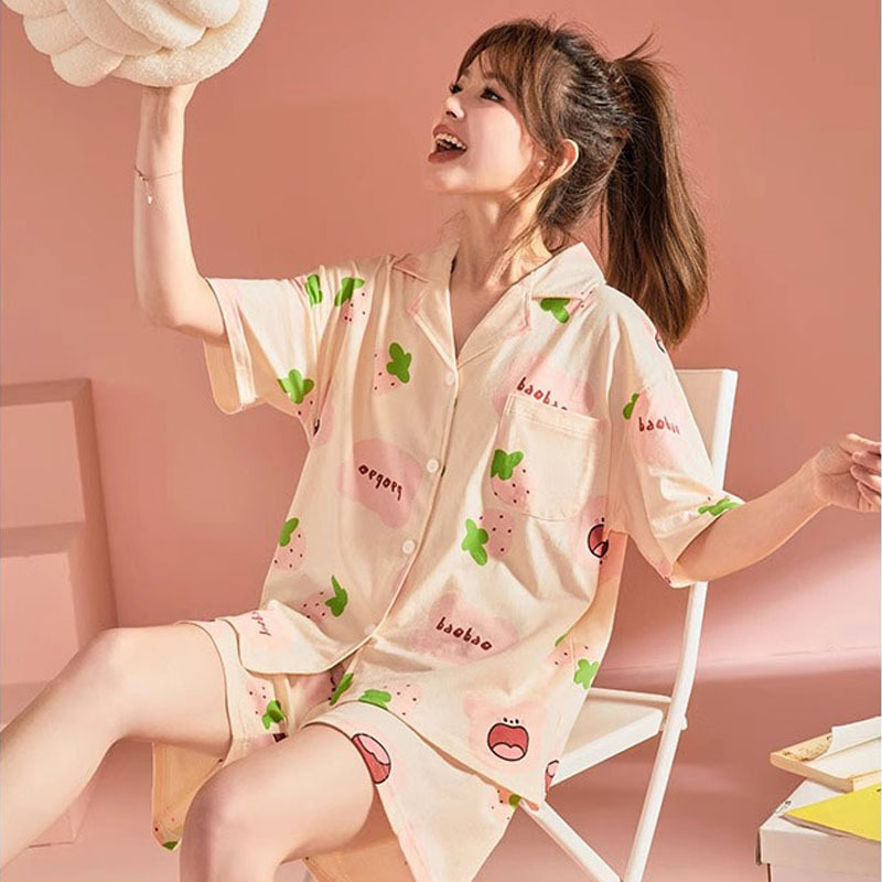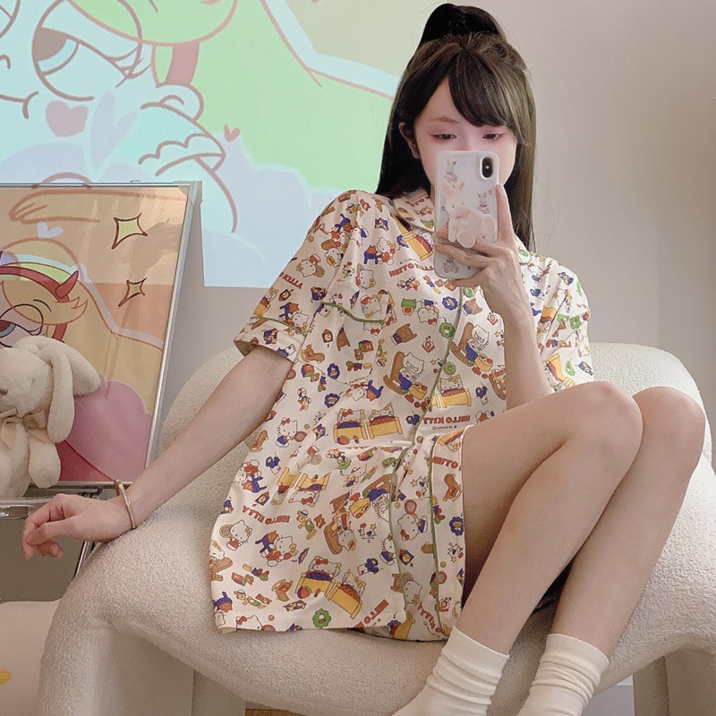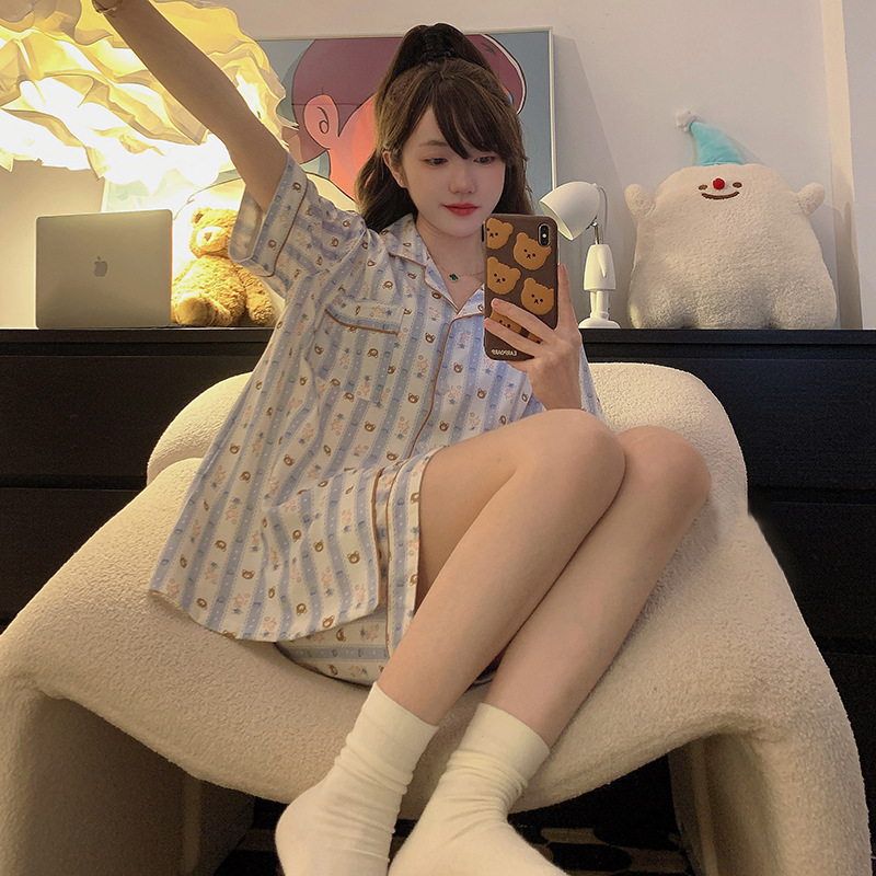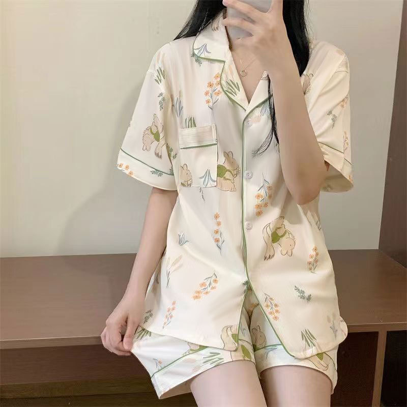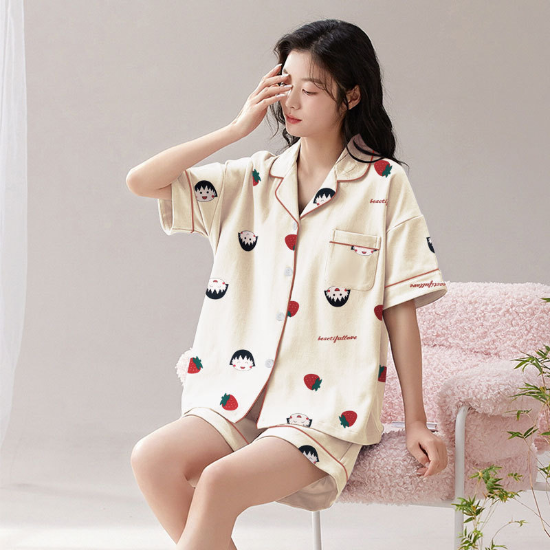 치카와 파자마 여성 여름 순면 반팔 일본 스타일 귀여운 우 사치 작은 8 세트 홈 옷스토어 가기
