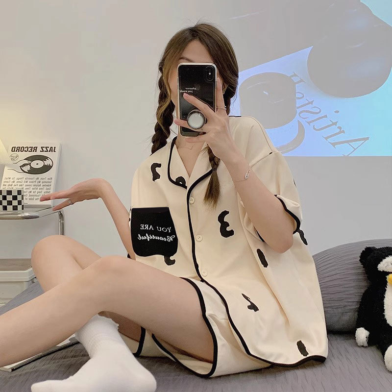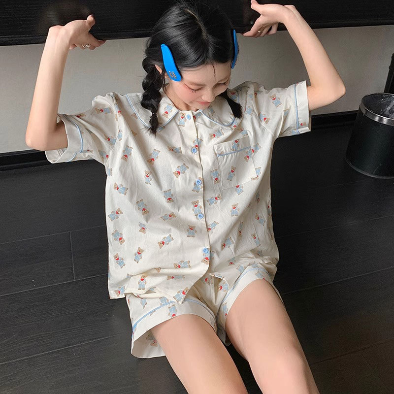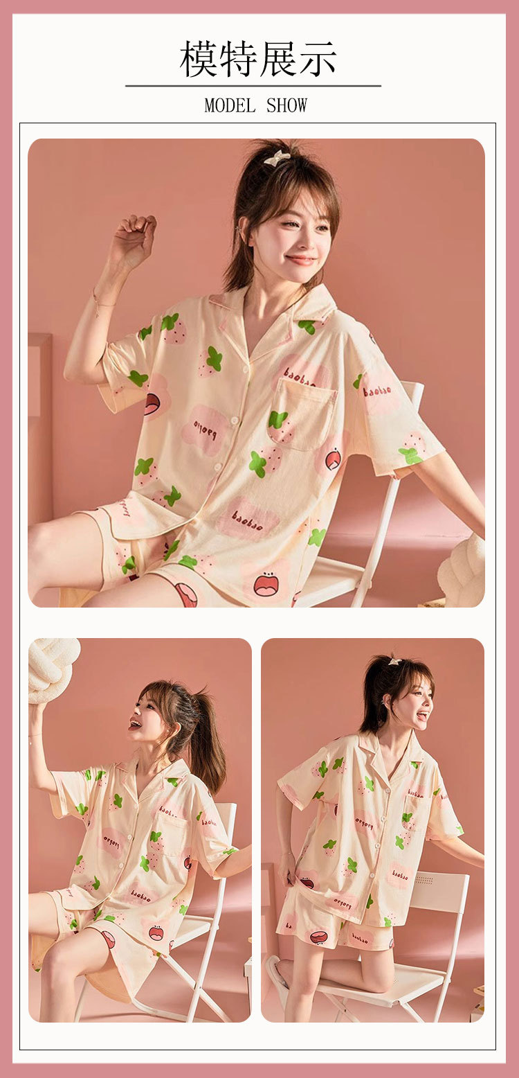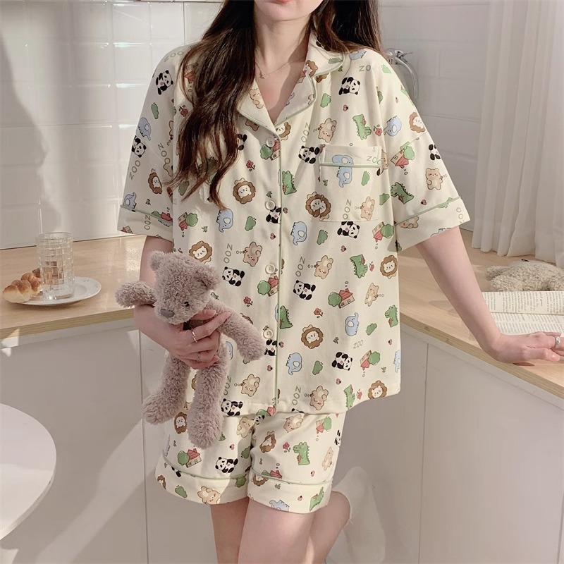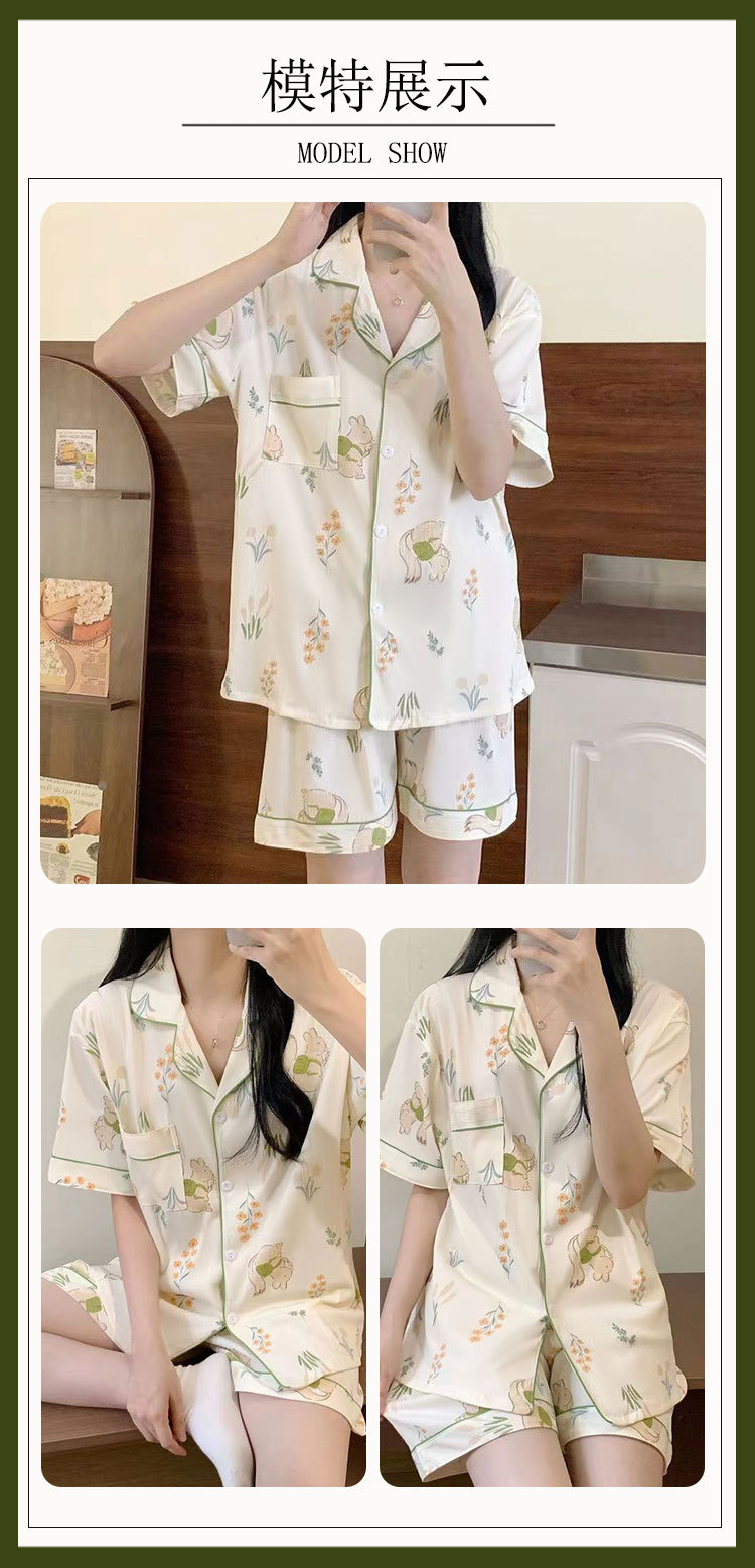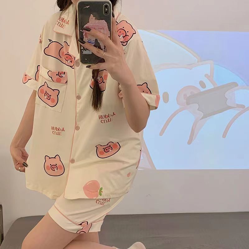 치카와 파자마 여성 여름 순면 반팔 일본 스타일 귀여운 우 사치 작은 8 세트 홈 옷스토어 가기