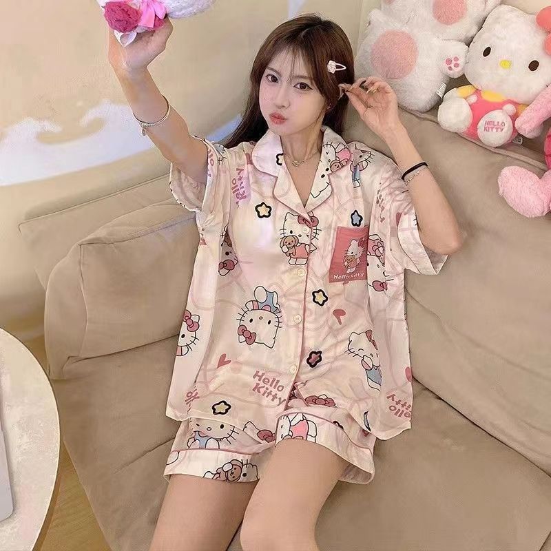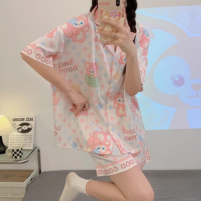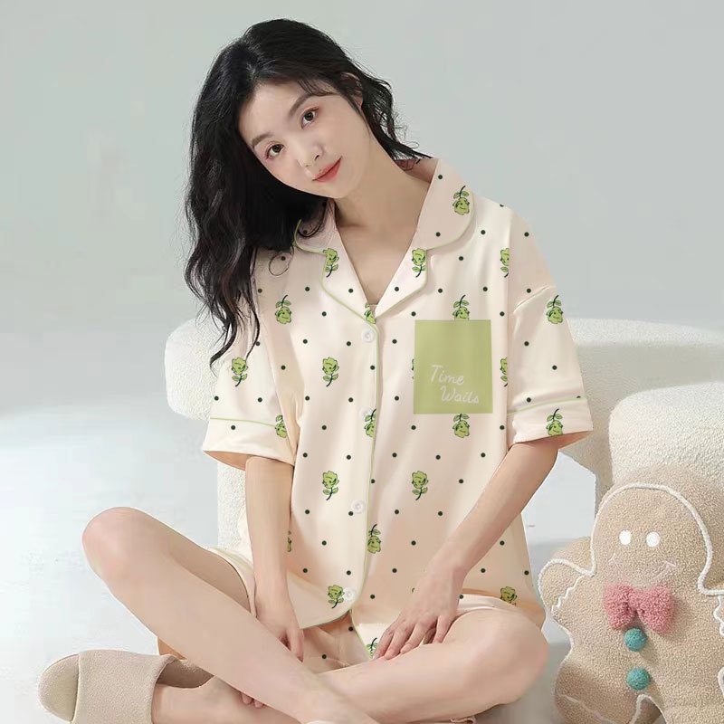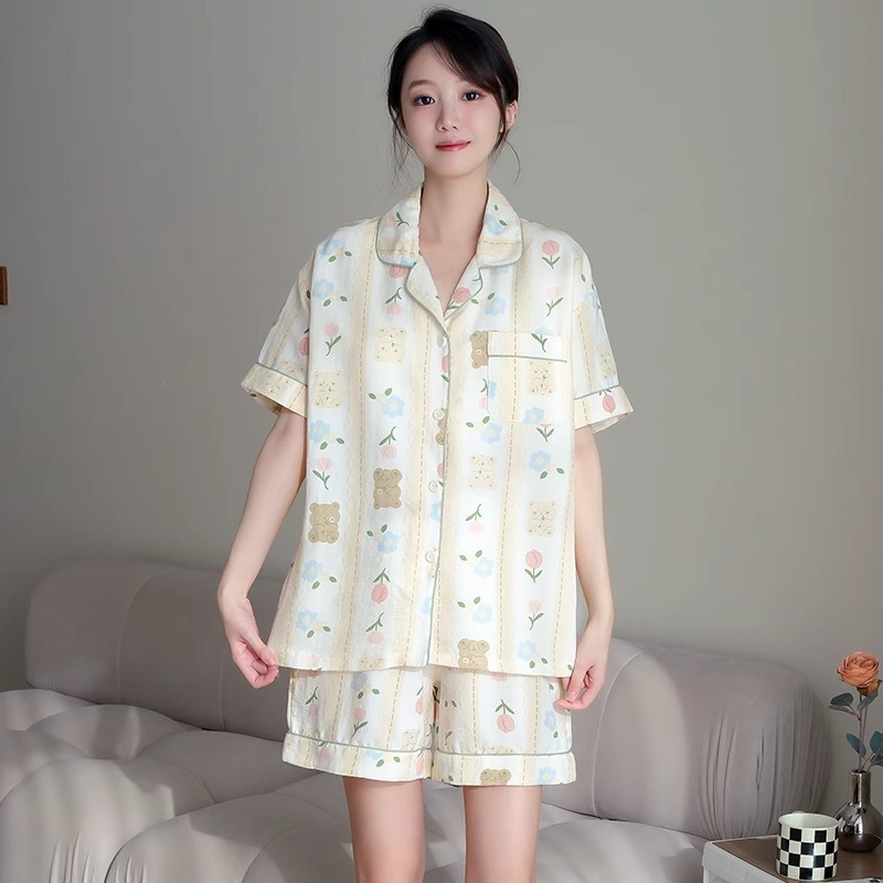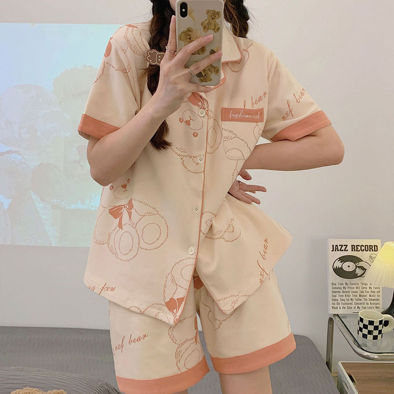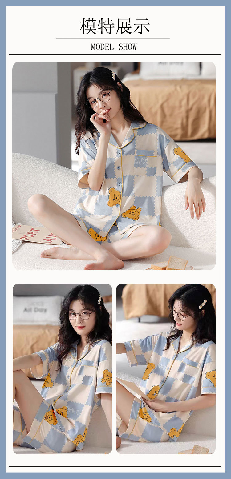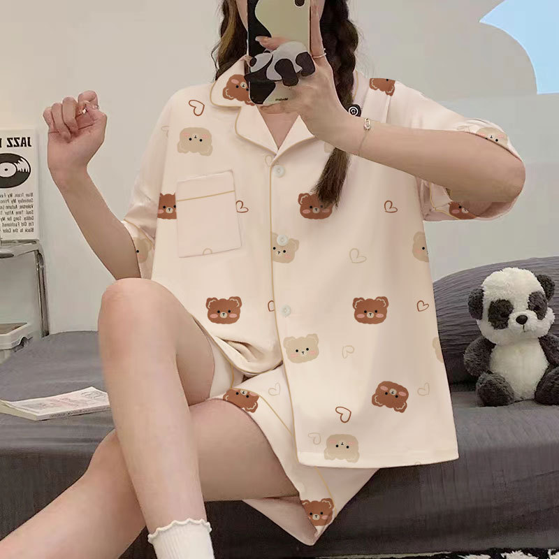 치카와 파자마 여성 여름 순면 반팔 일본 스타일 귀여운 우 사치 작은 8 세트 홈 옷스토어 가기