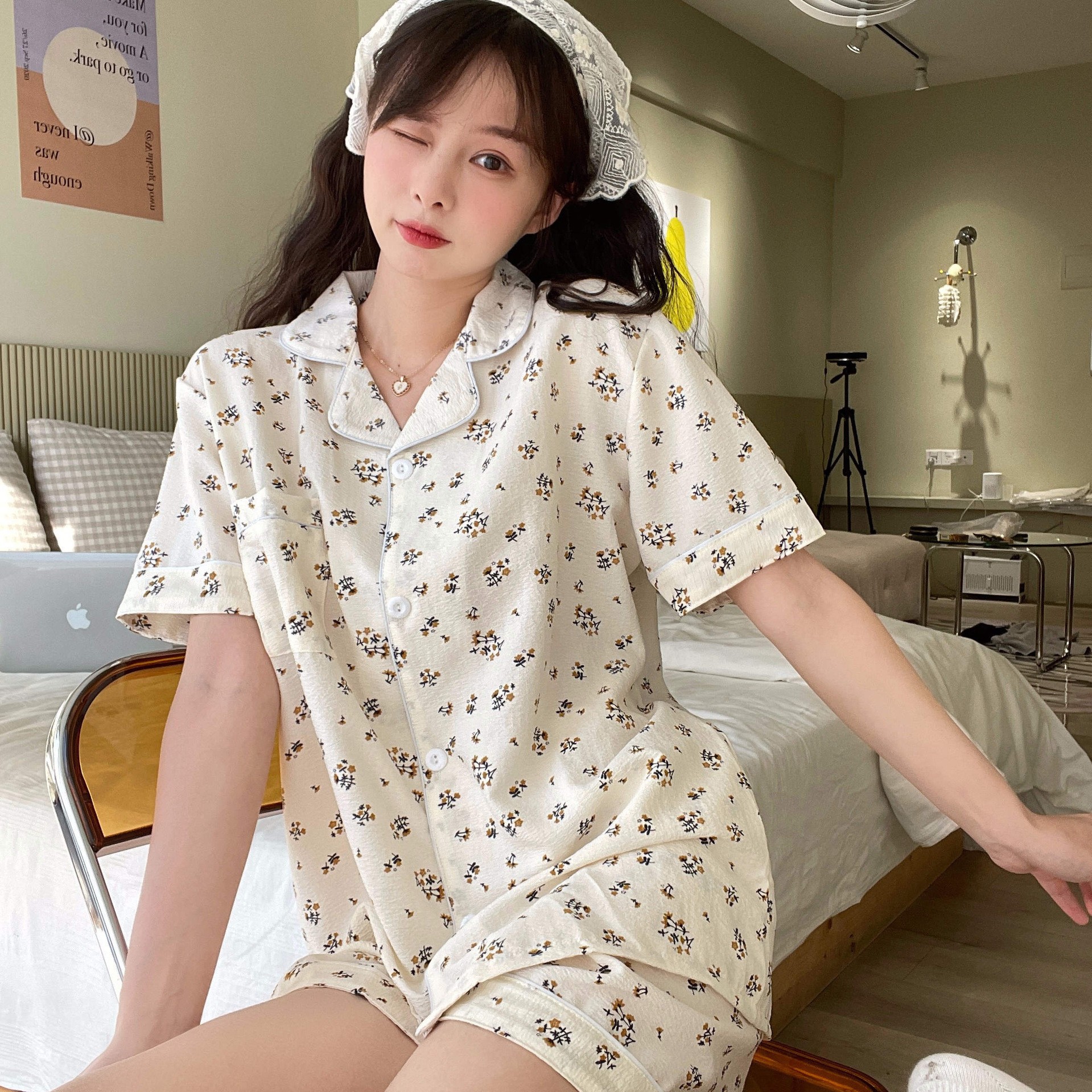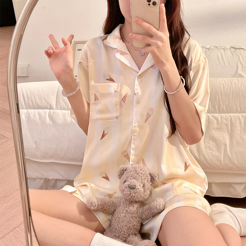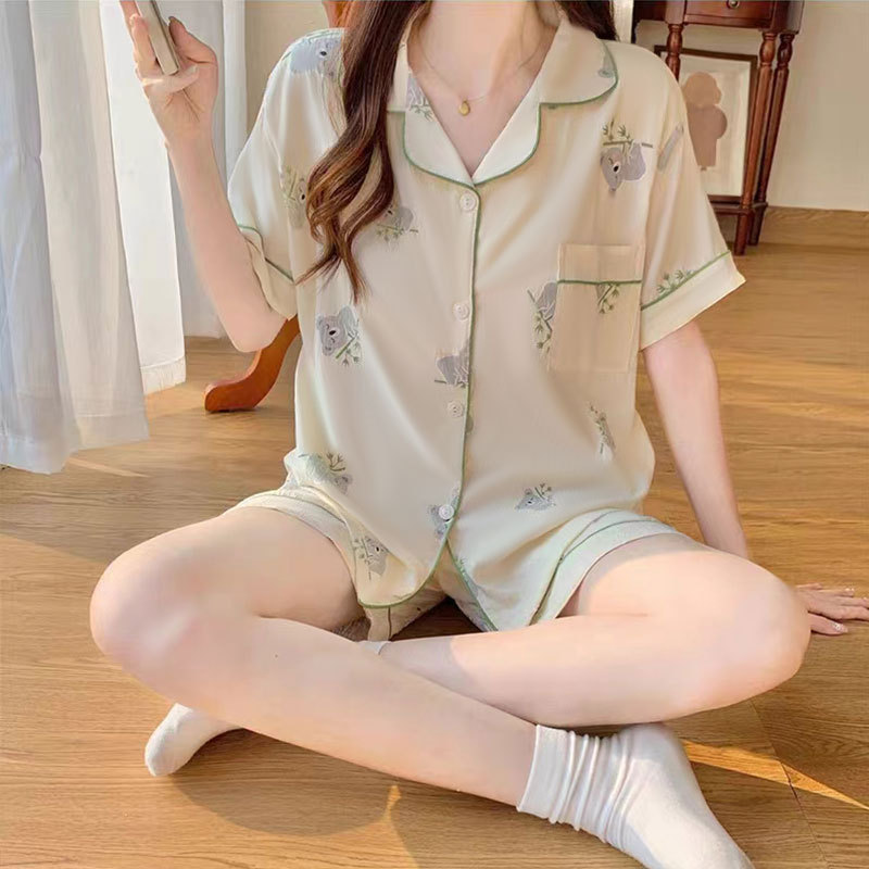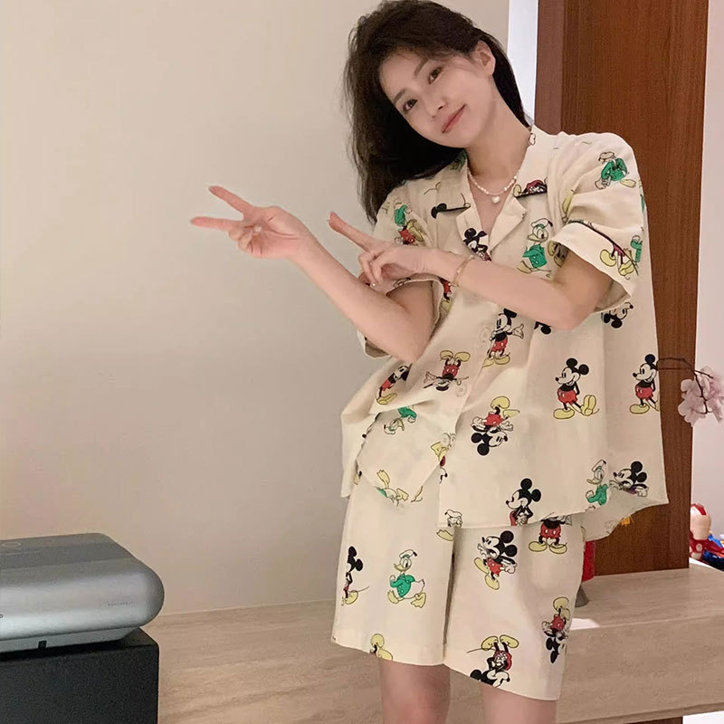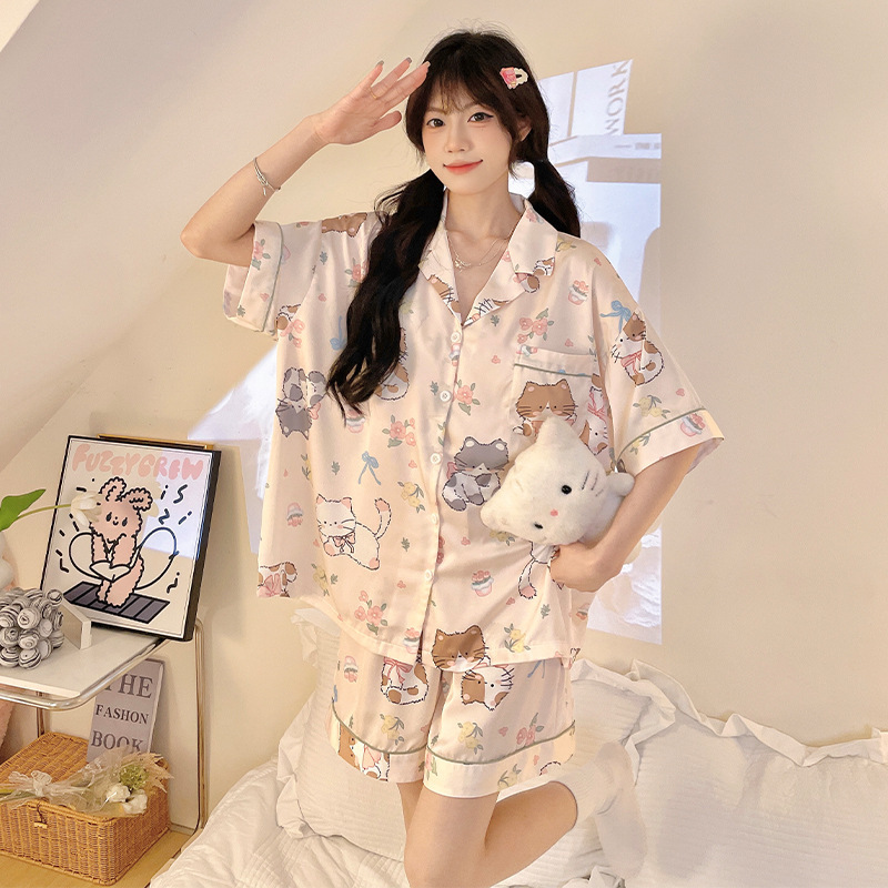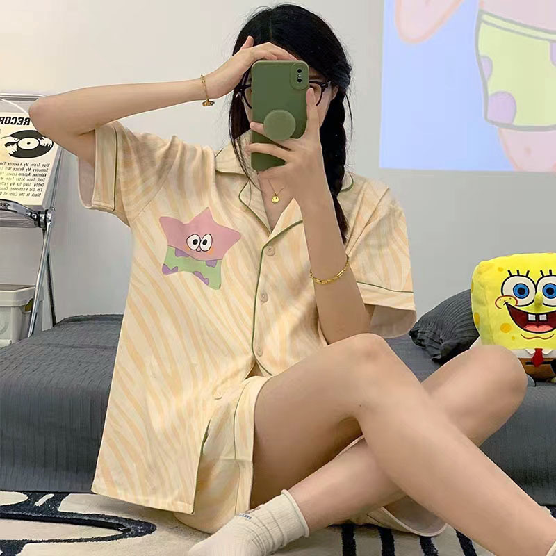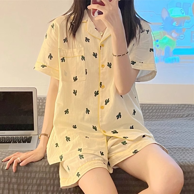 치카와 파자마 여성 여름 순면 반팔 일본 스타일 귀여운 우 사치 작은 8 세트 홈 옷스토어 가기