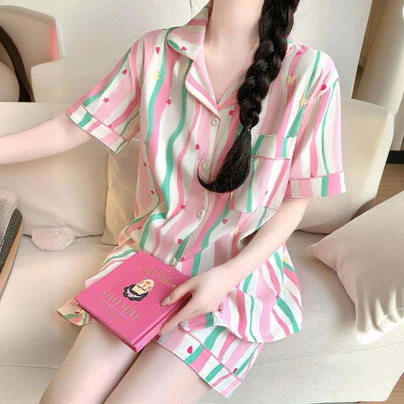 치카와 파자마 여성 여름 순면 반팔 일본 스타일 귀여운 우 사치 작은 8 세트 홈 옷