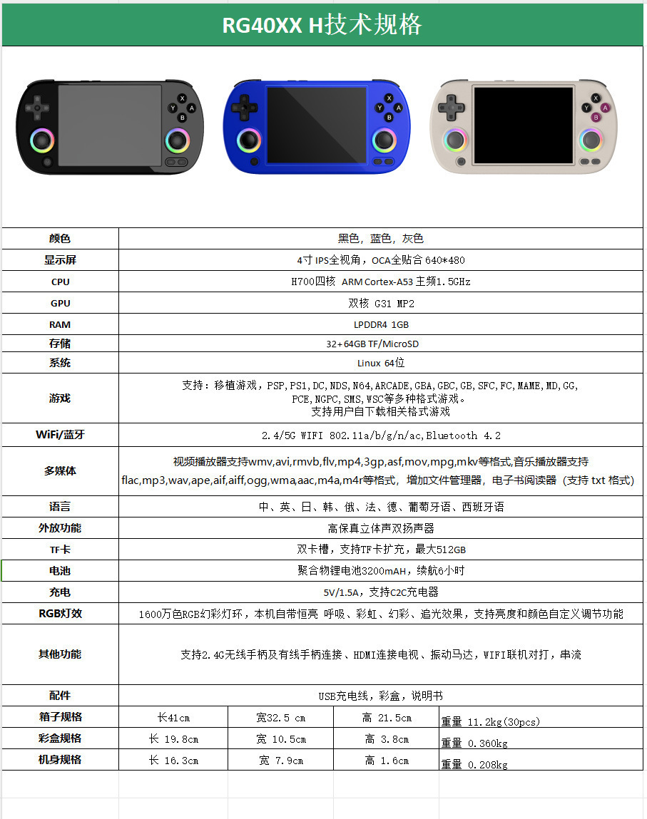 RG40XXH 조이스틱 무드등 레트로 휴대용 게임기