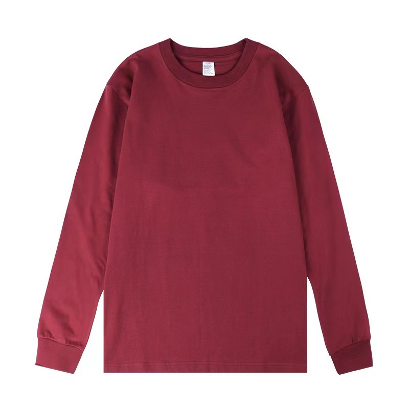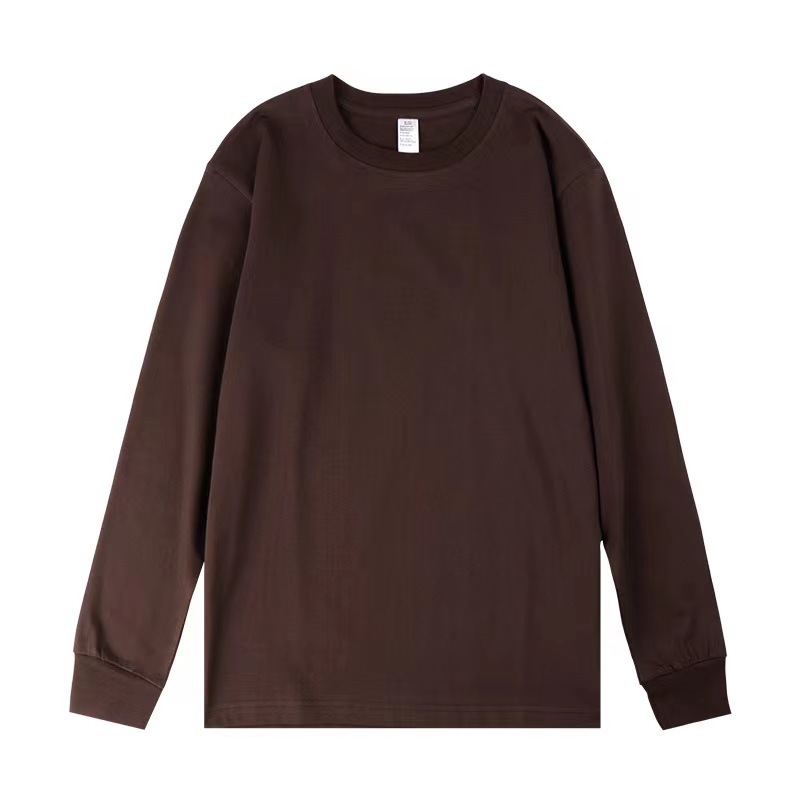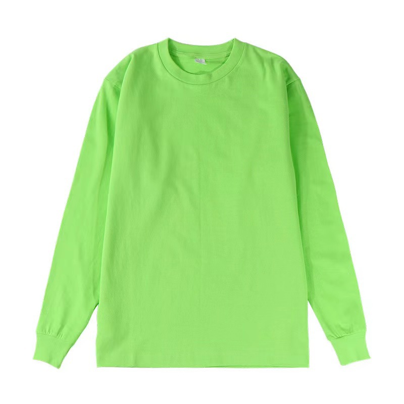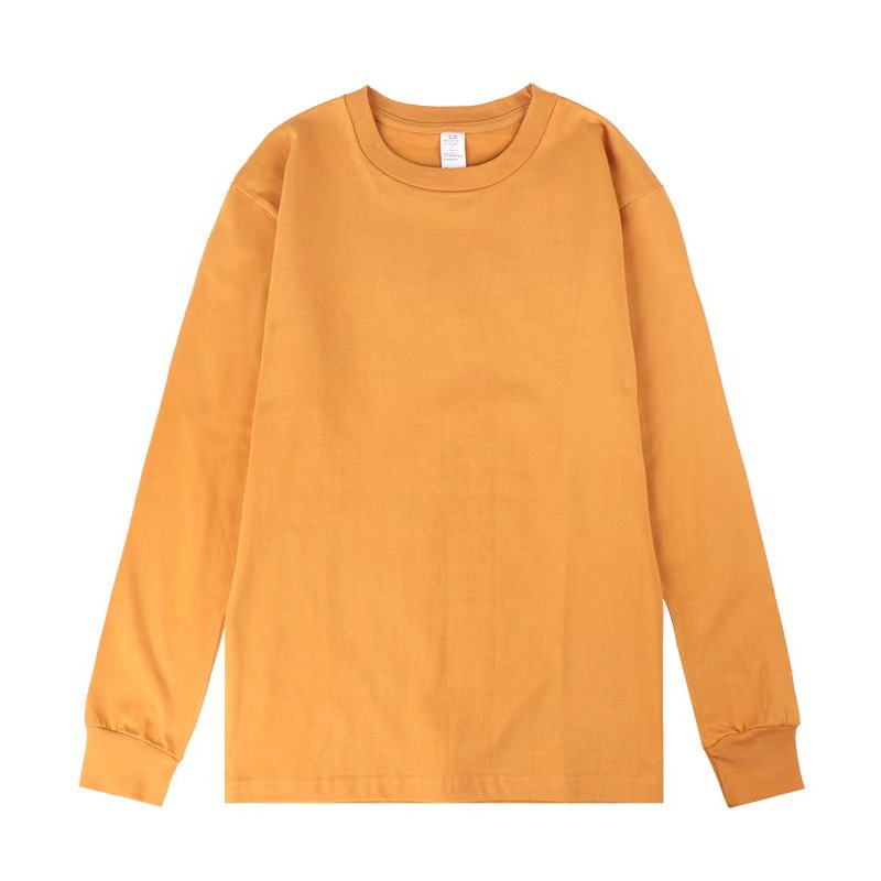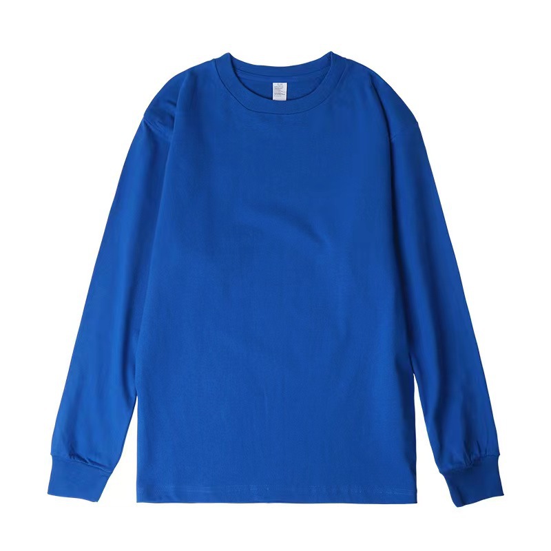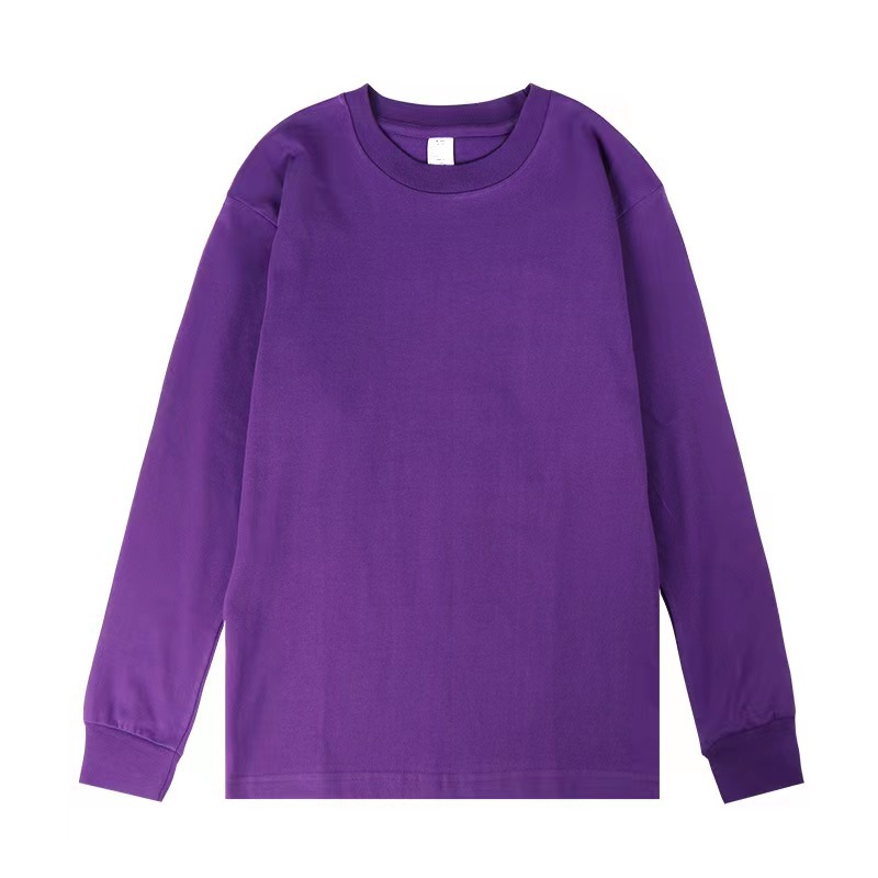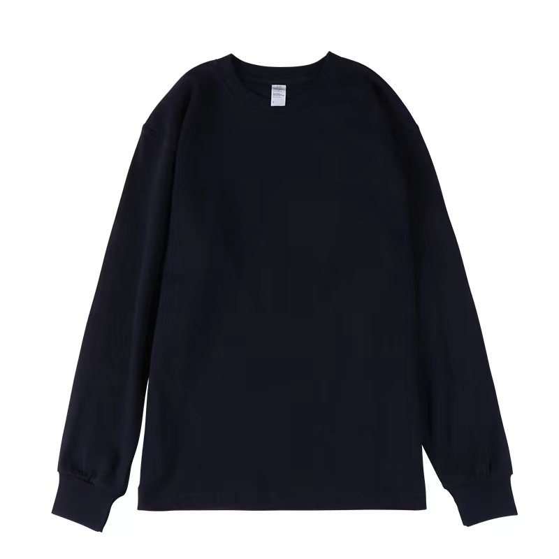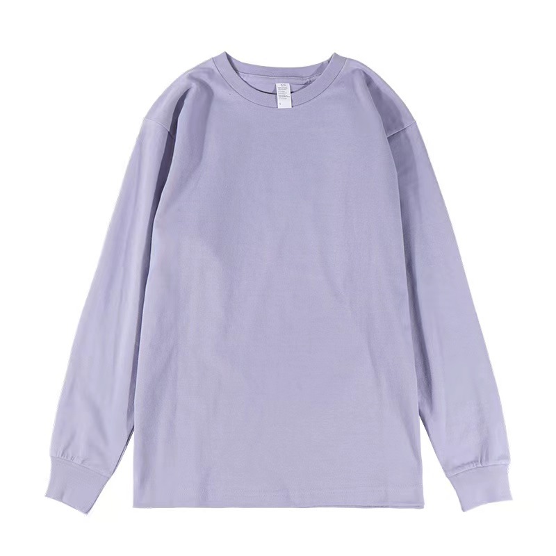 새로운 250g 헤비급 순면 부드럽고 피부 친화적인 루즈핏 일본 트렌디 여름 라운드 넥 긴팔 티셔츠