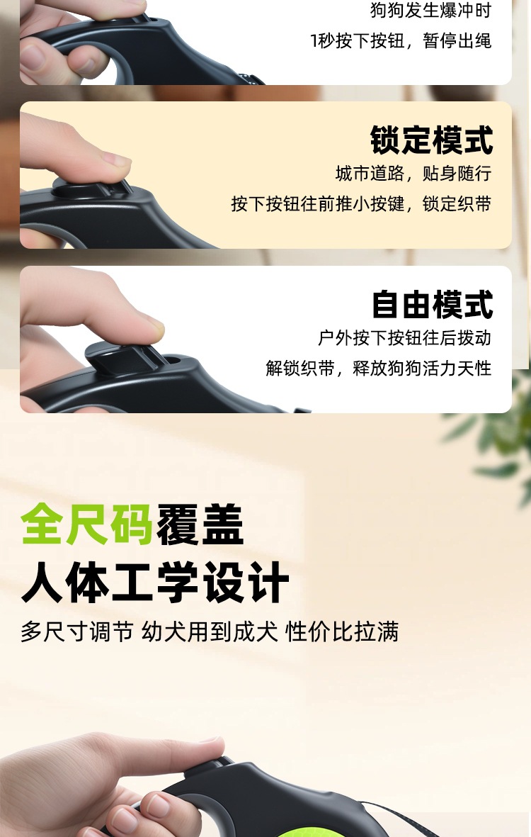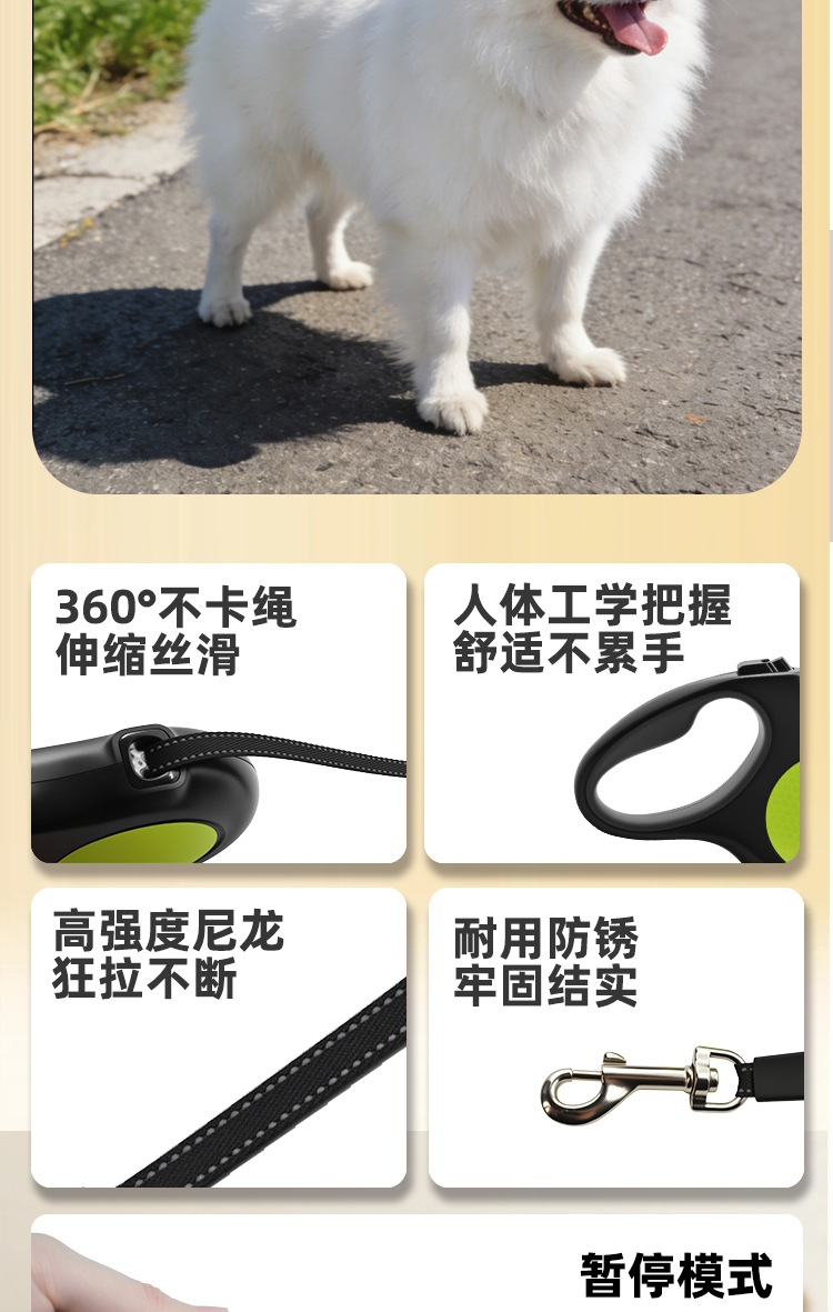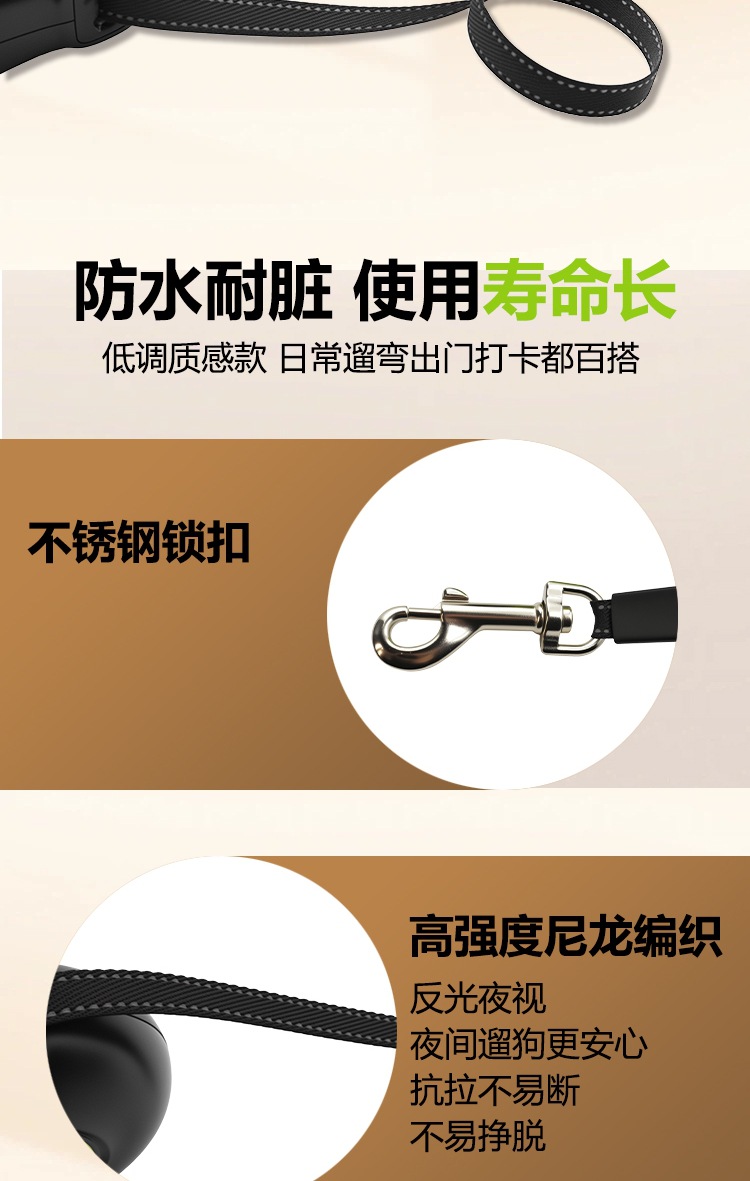 签收后,牵绳有使用痕迹,包装不齐全,不接受退换货。在正常使用情况下,一年内出现不能收缩等问题,经检测判断后可以返厂维修(寄付运费自理)。因人为因素(高空跌落,进水等)或宠物啃咬造成卡绳、回缩障碍,绳体断裂或其他使用功能障碍等,无法进行维修处理。牵引伸缩机能故障问题不包括绳体断裂、绳体磨损、挂钩断裂、挂钩磨损、外部磨损等情况。
