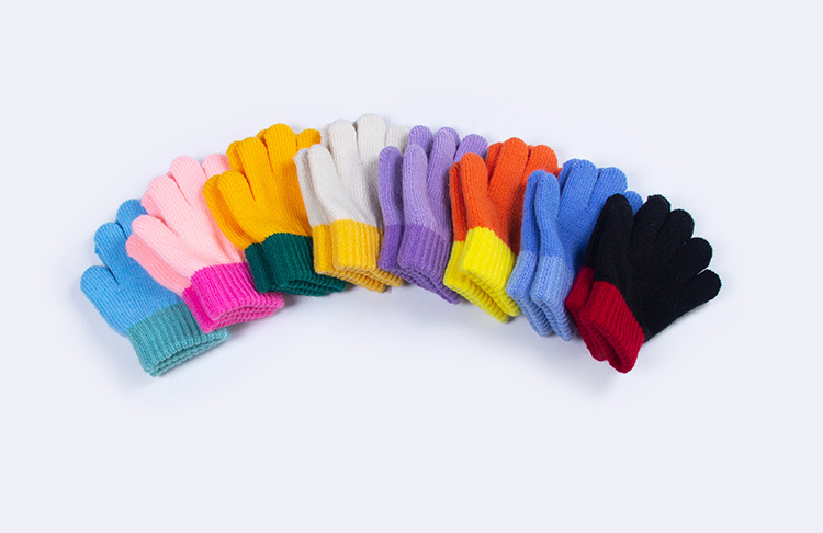 한국형 콘트라스트 컬러 유치원 아기 소년 · 소녀 겨울 냉방한 다섯 손가락 꼬인 따뜻한 올매치 울 장갑 어린이