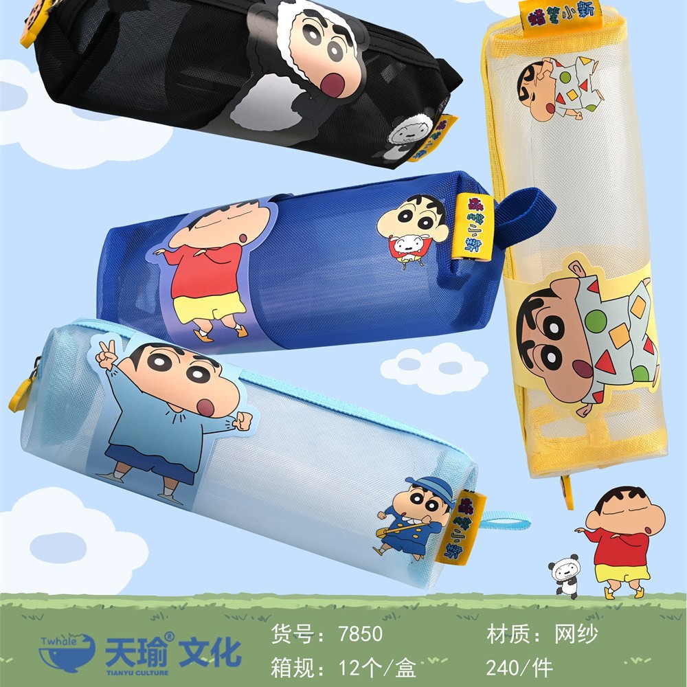 Tianyu 메쉬 연필 가방 정품 크레용 신짱 스타일 연필 상자 학교 시작 중학생 보관 가방 편지지 가방 도매
