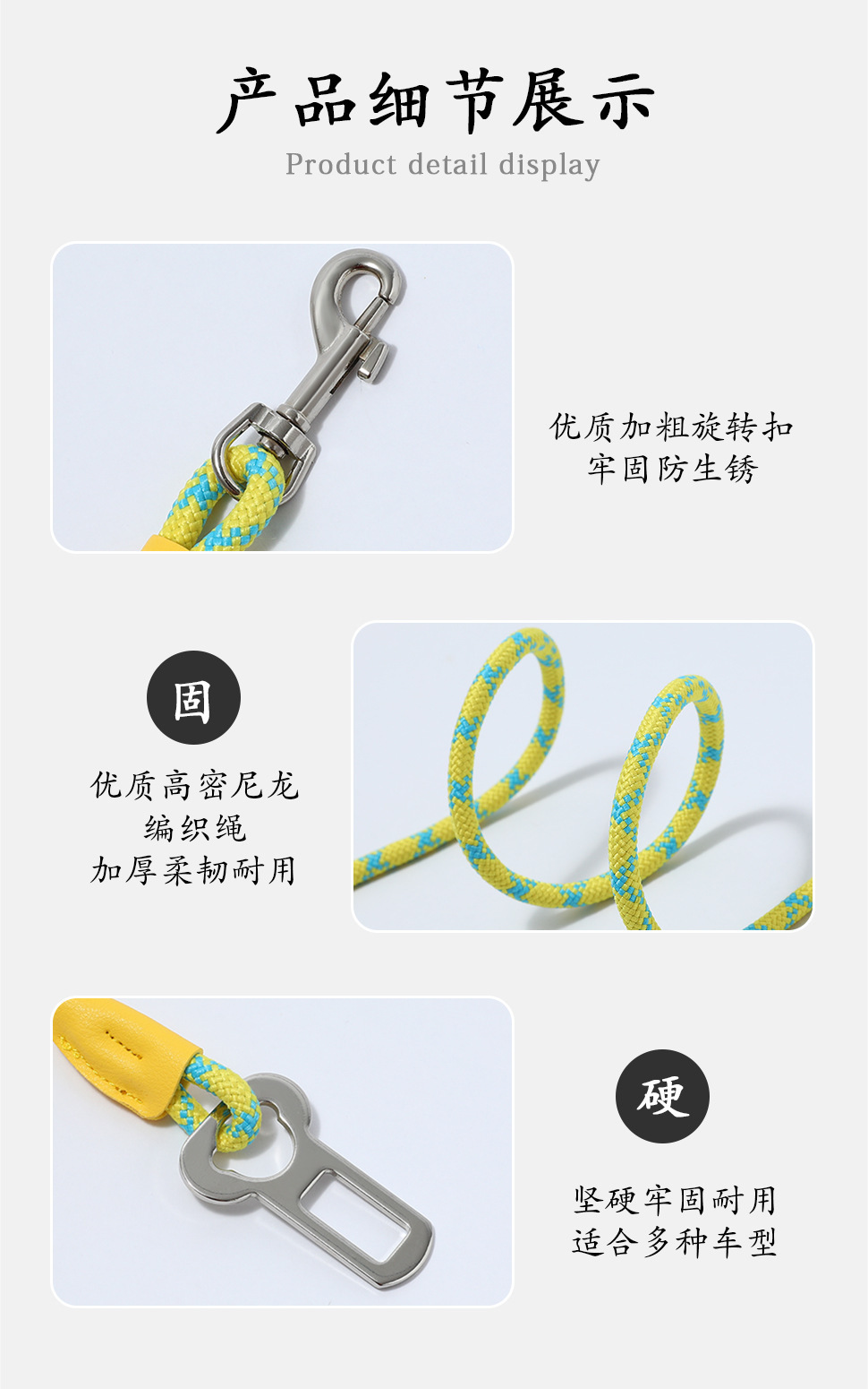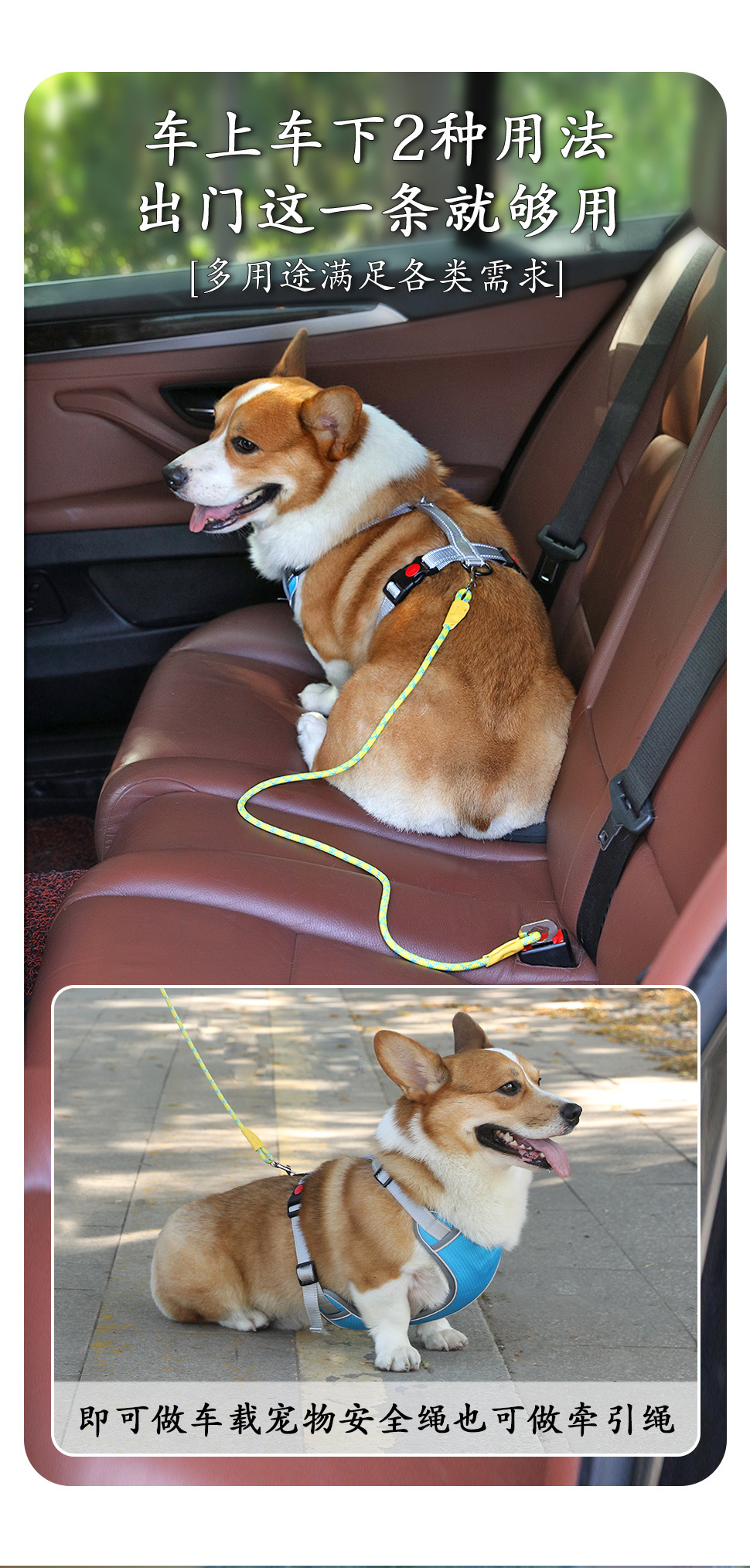 애완 동물 제품 자동차 안전 견인 벨트 링 개 로프 고양이 로프 자동차 머리 받침 견인 로프스토어 가기