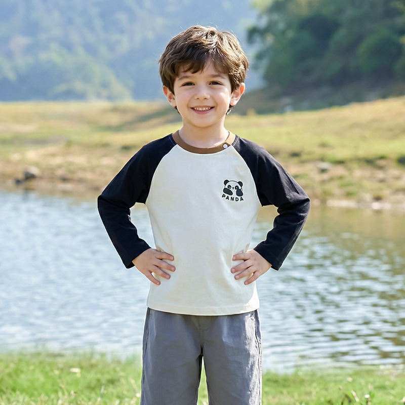 아기 긴팔 티셔츠 2025 봄, 가을 아기 바닥 셔츠 어린이 탑 만화 곰 컬러 매칭 티셔츠