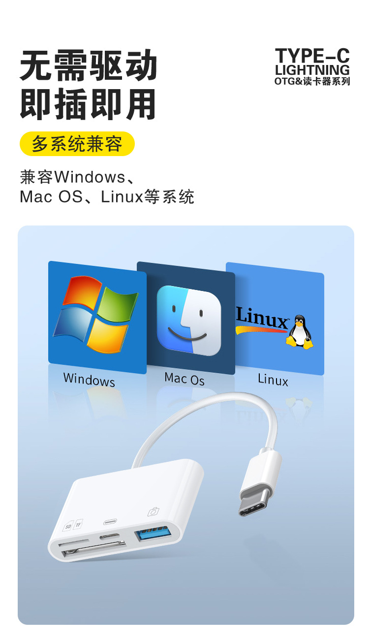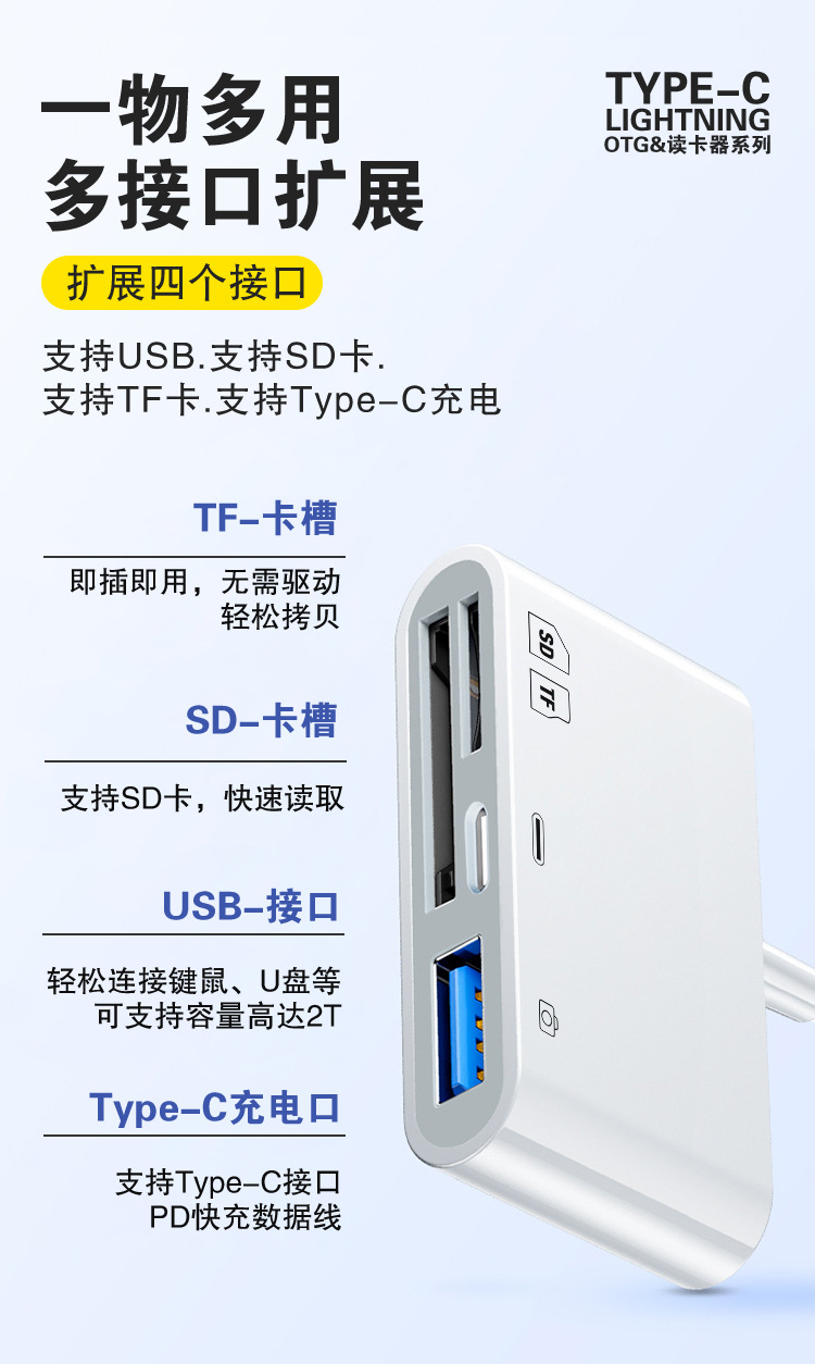 • TYPE-C 인터페이스 [SD+TF+TYPE-C+USB] T44 벌크선