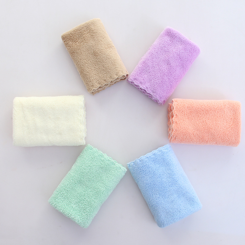 공장 도매 산호 양털 30*30 어린이 수건 흡수성 부드러운 얼굴 작은 사각형 수건 메이크업 제거제 천 작은 수건