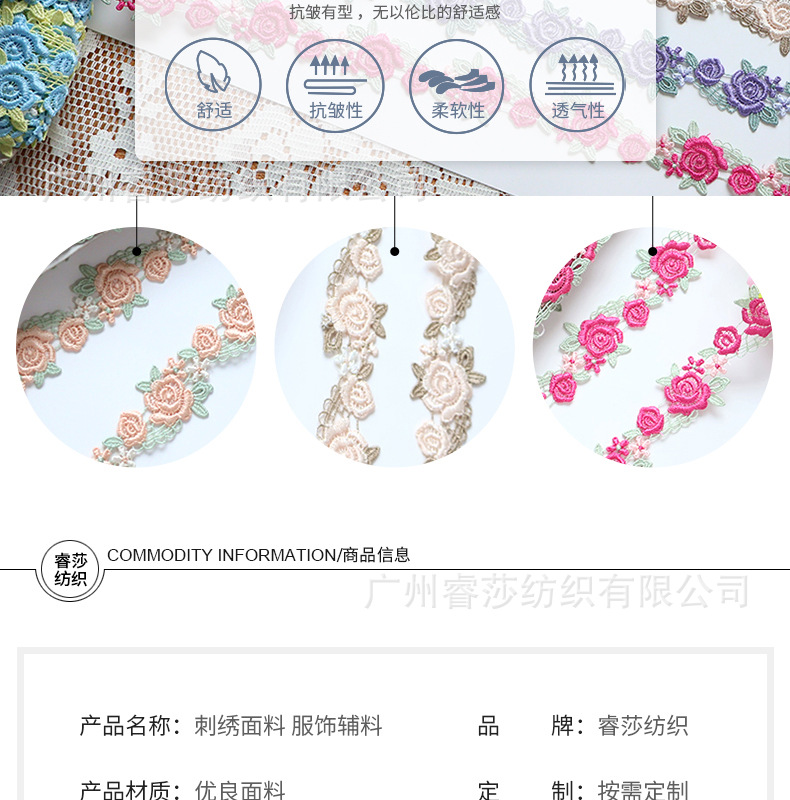 새로운 재고 장미 수용성 자수 레이스 바코드 DIY 수제 속옷 치삼 원피스 원피스 레이스 액세서리스토어 가기