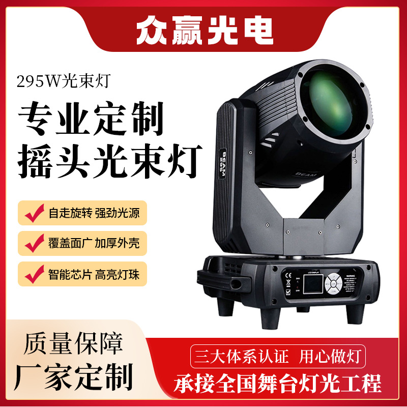 제조업체는 다양한 패턴과 동적 효과를 갖춘 295W 이동 헤드 빔 라이트를 사용자 정의합니다. 회전 조명 쇼 무대 쇼 조명
