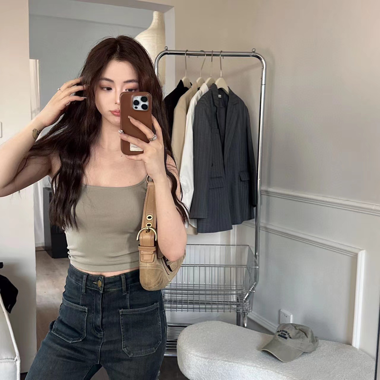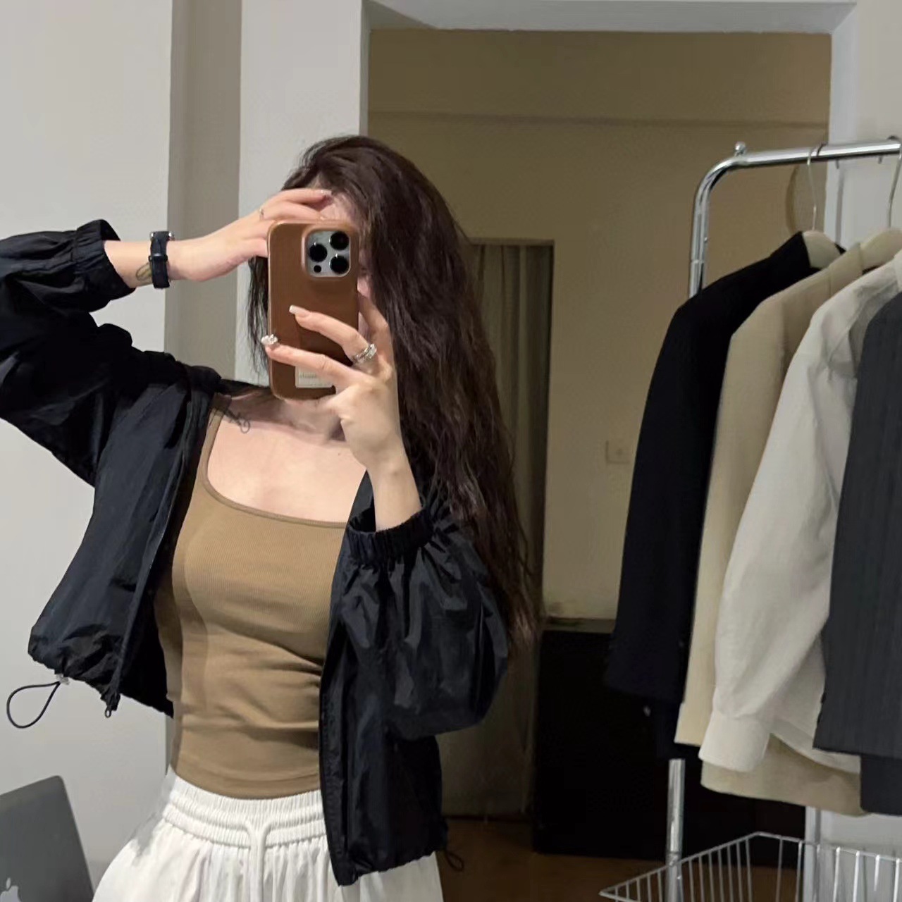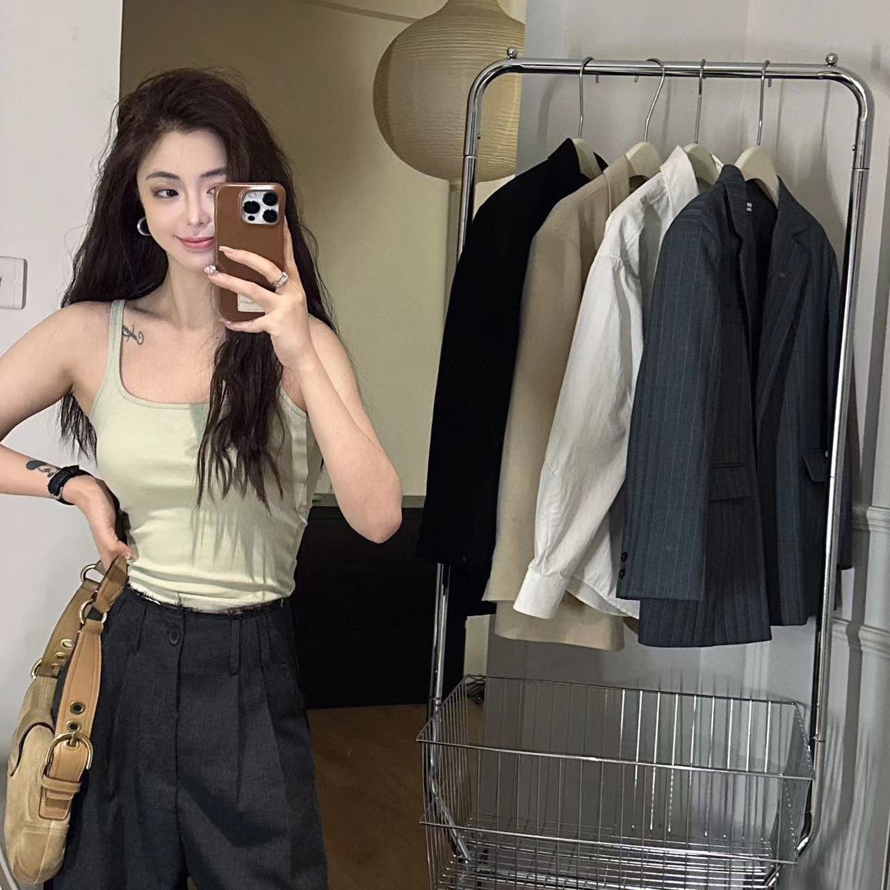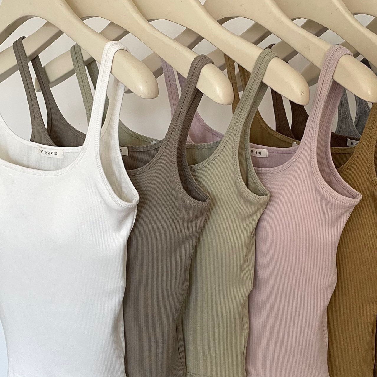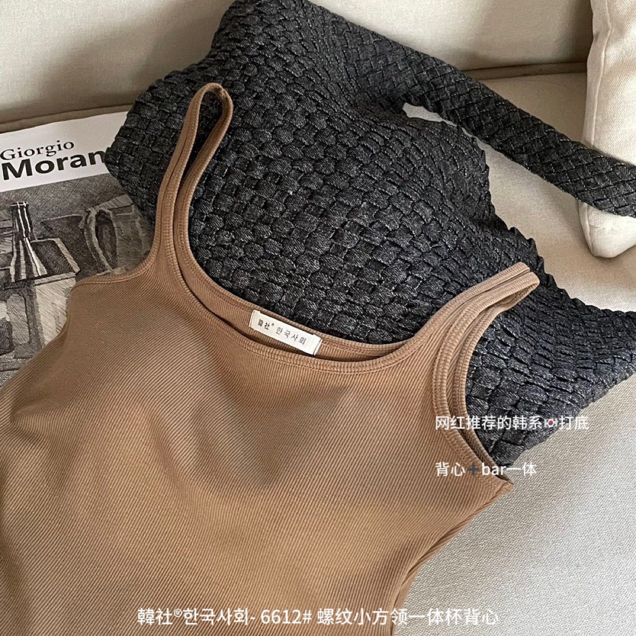 한국사회사6612 # 나사형 스트라이프 디자인의 작은 사각 넥라인이 있는 여성용 슬림핏 원피스탑, 이너웨어 또는 아우터웨어로 착용 가능한 얇은 여성용 베이스탑