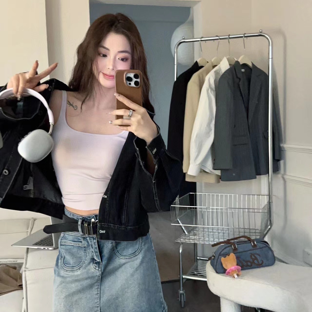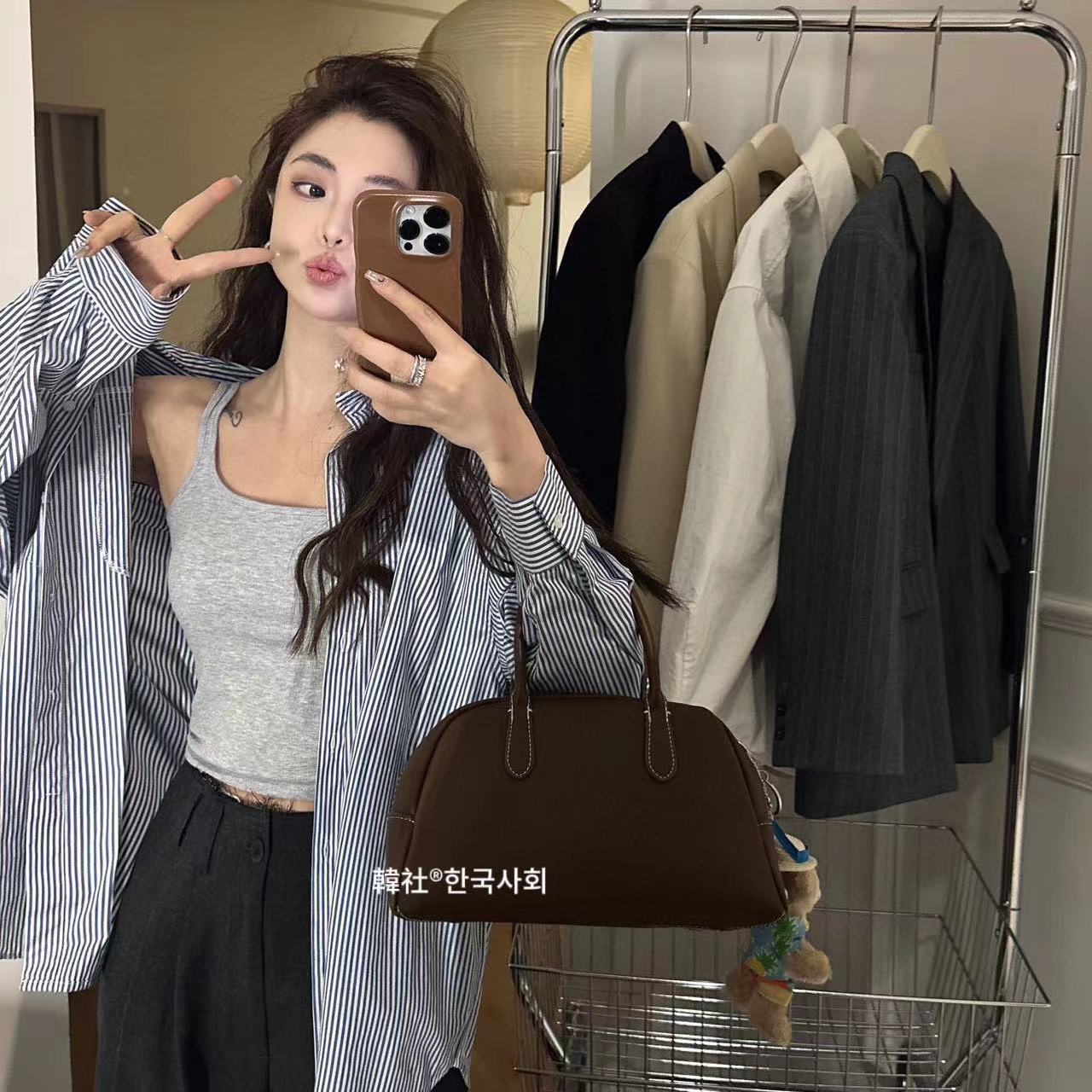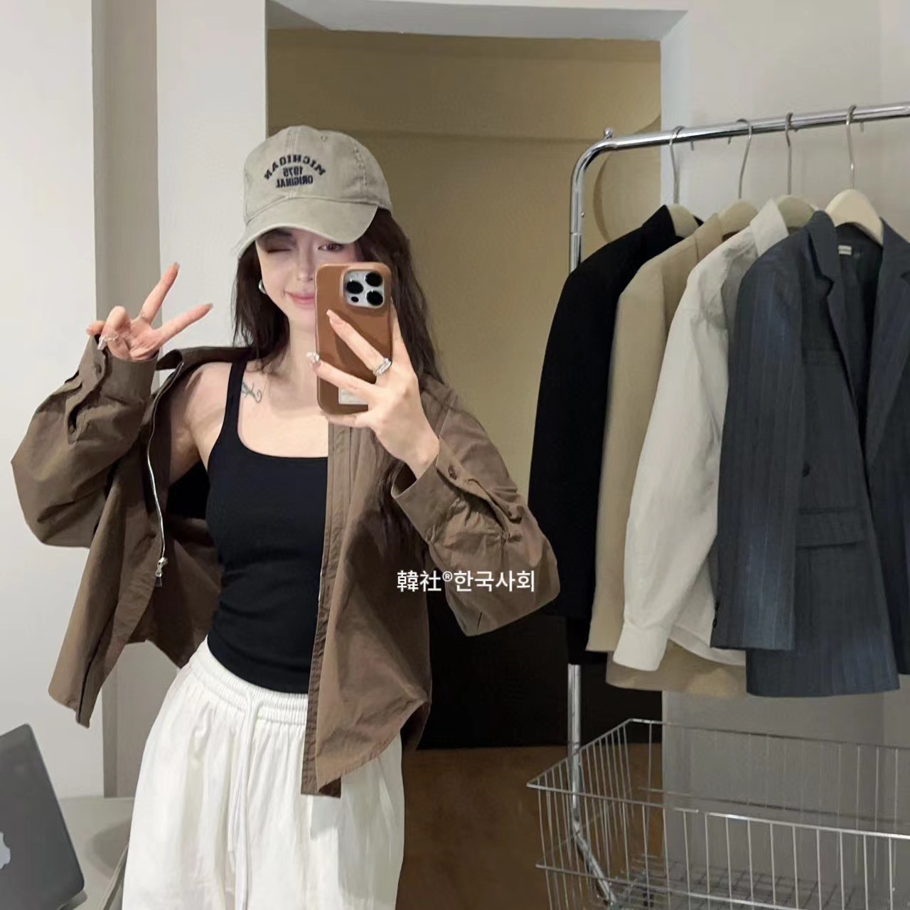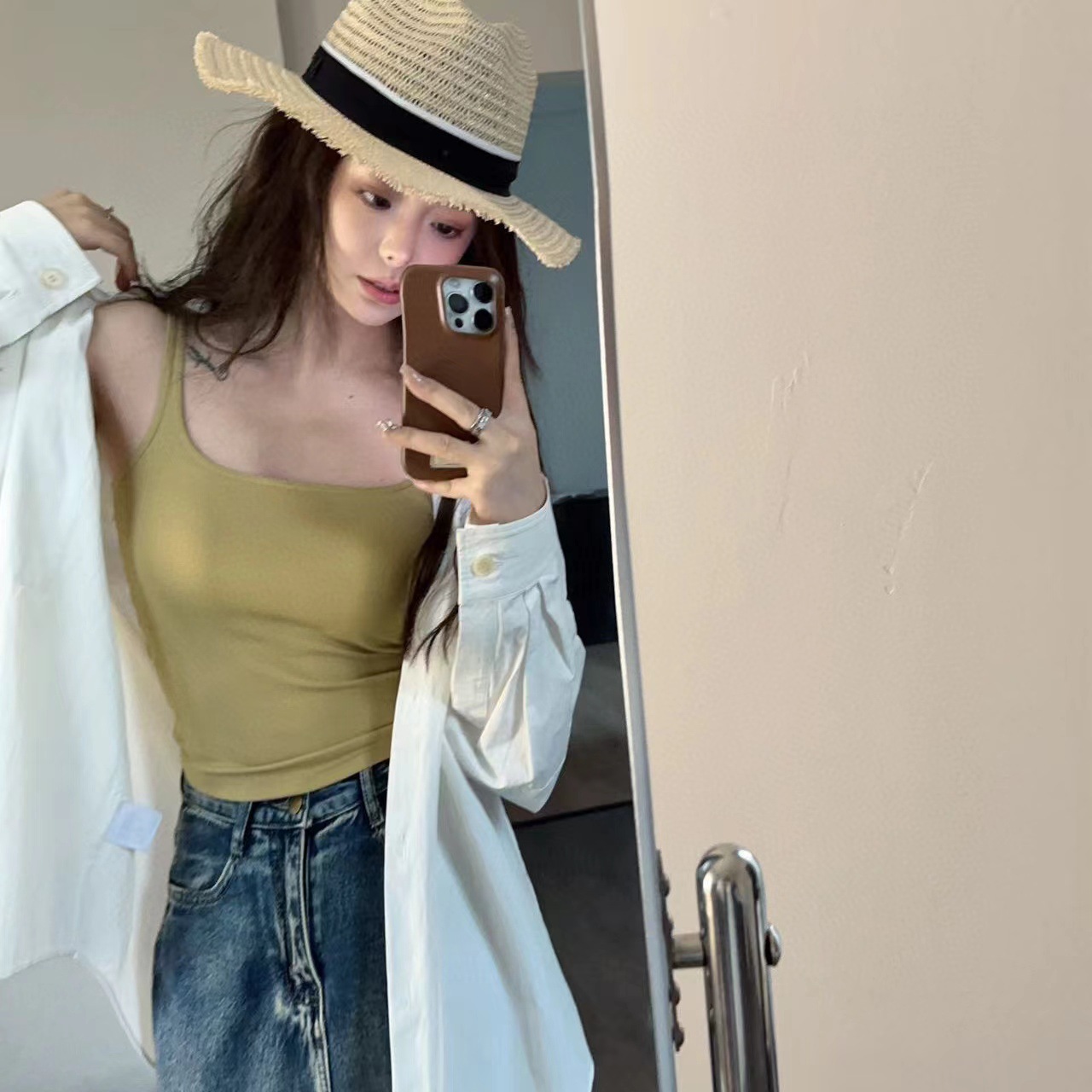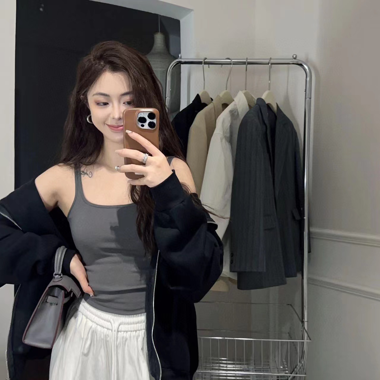 한국사회사6612 # 나사형 스트라이프 디자인의 작은 사각 넥라인이 있는 여성용 슬림핏 원피스탑, 이너웨어 또는 아우터웨어로 착용 가능한 얇은 여성용 베이스탑