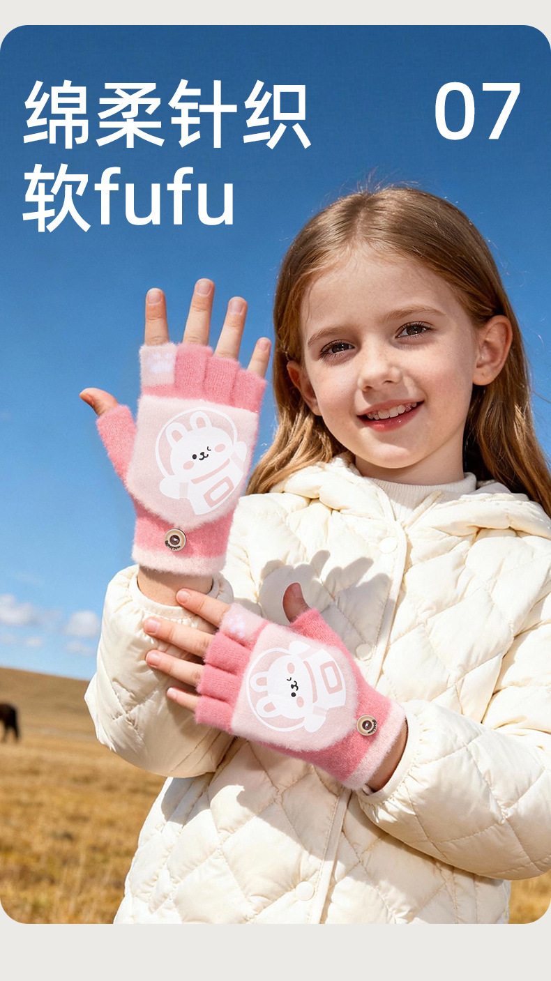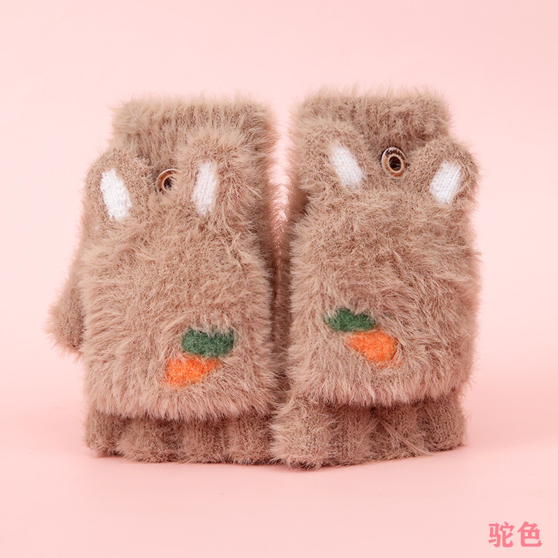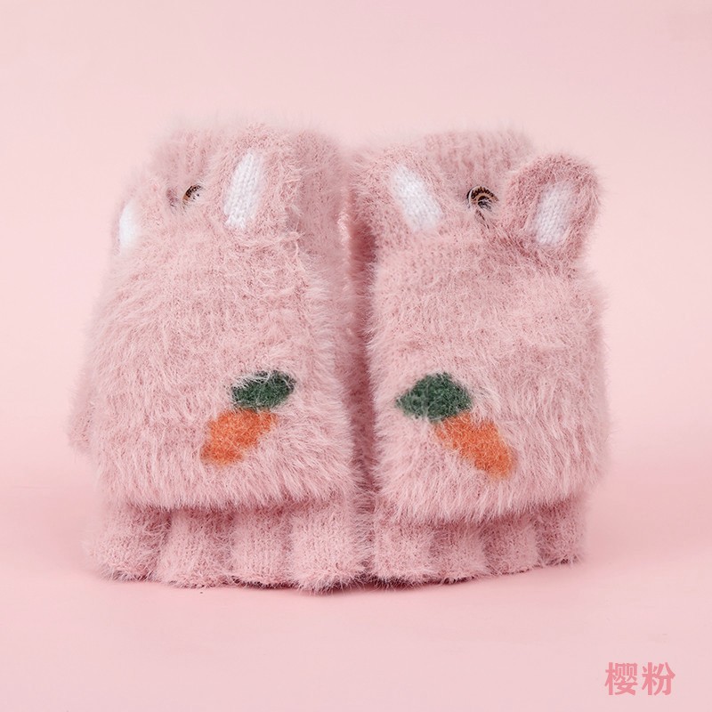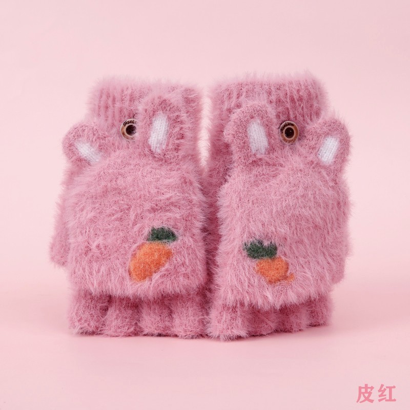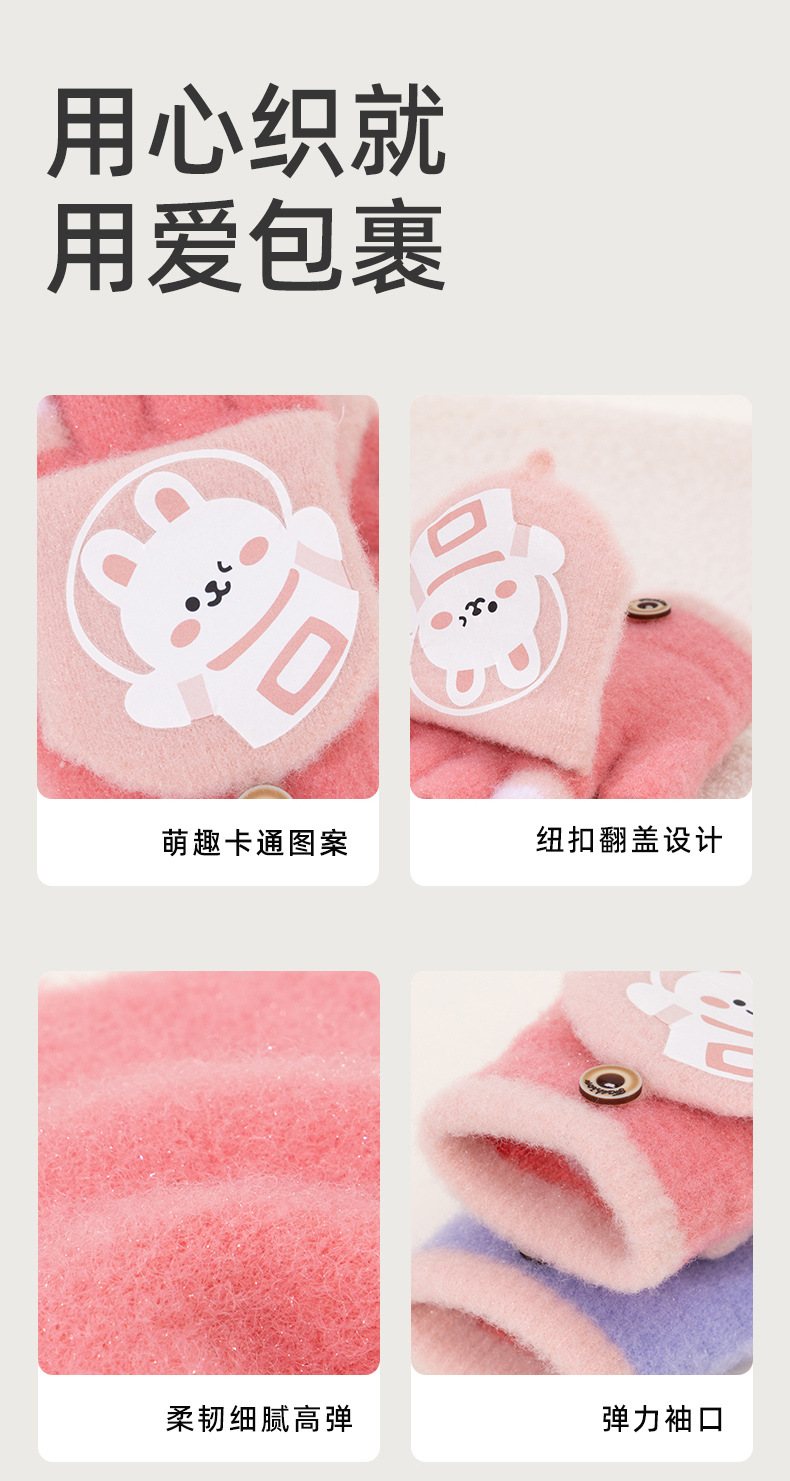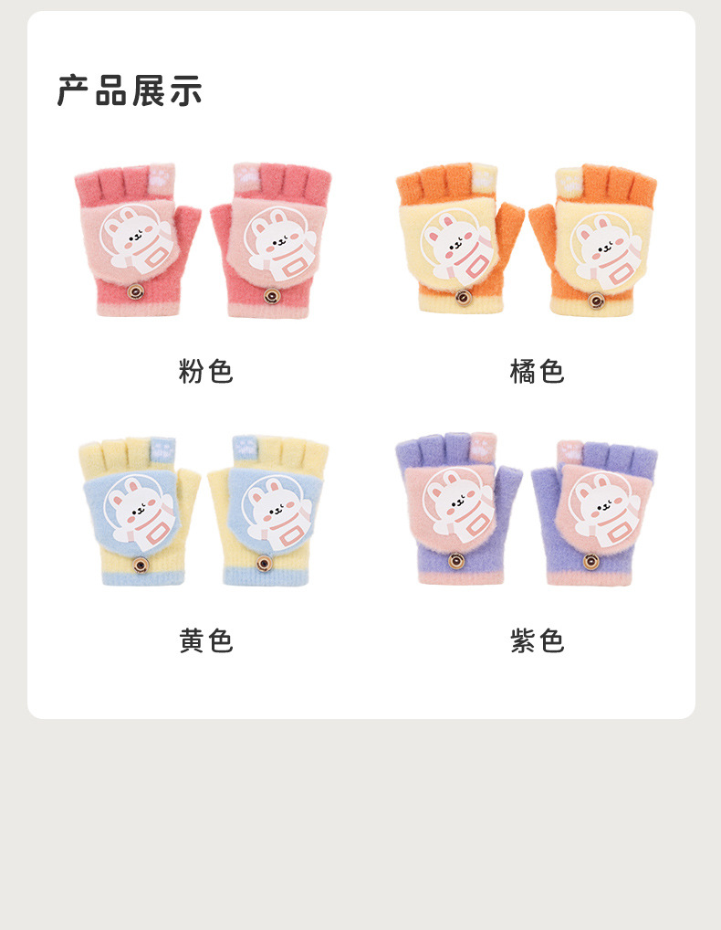 우주 토끼 하프 핑거 플립 온 중간 어린이 오픈 핑거 겨울 두꺼운 따뜻한 학생 소녀 용 귀여운 니트 장갑 쓰기