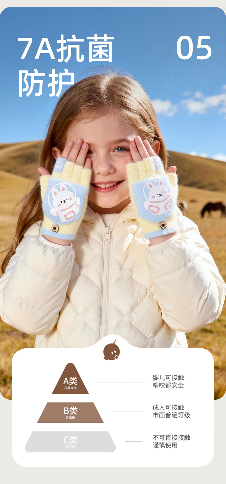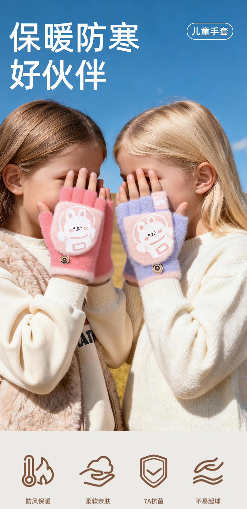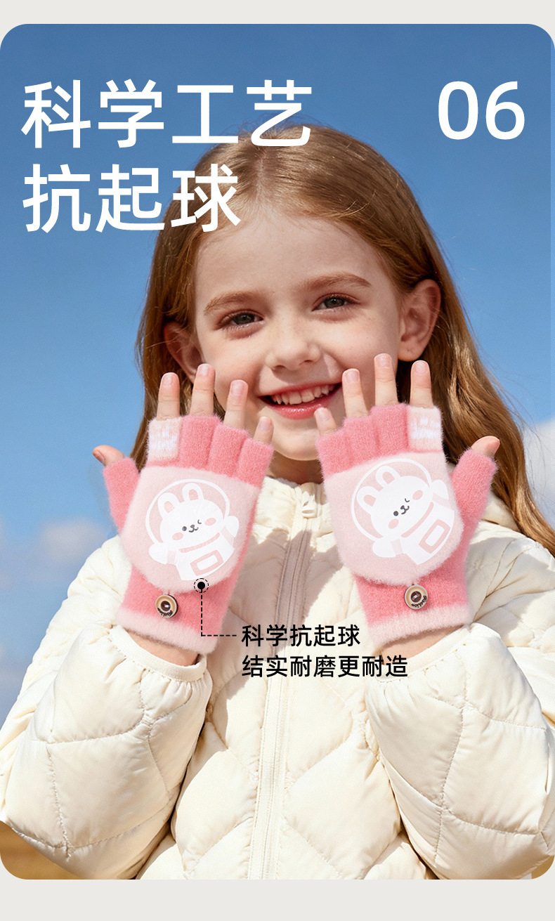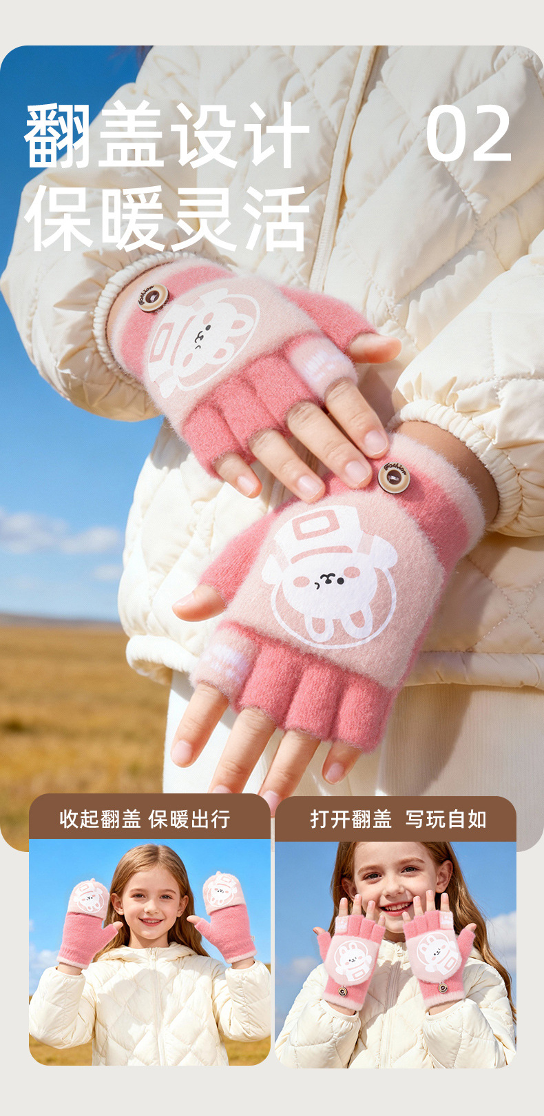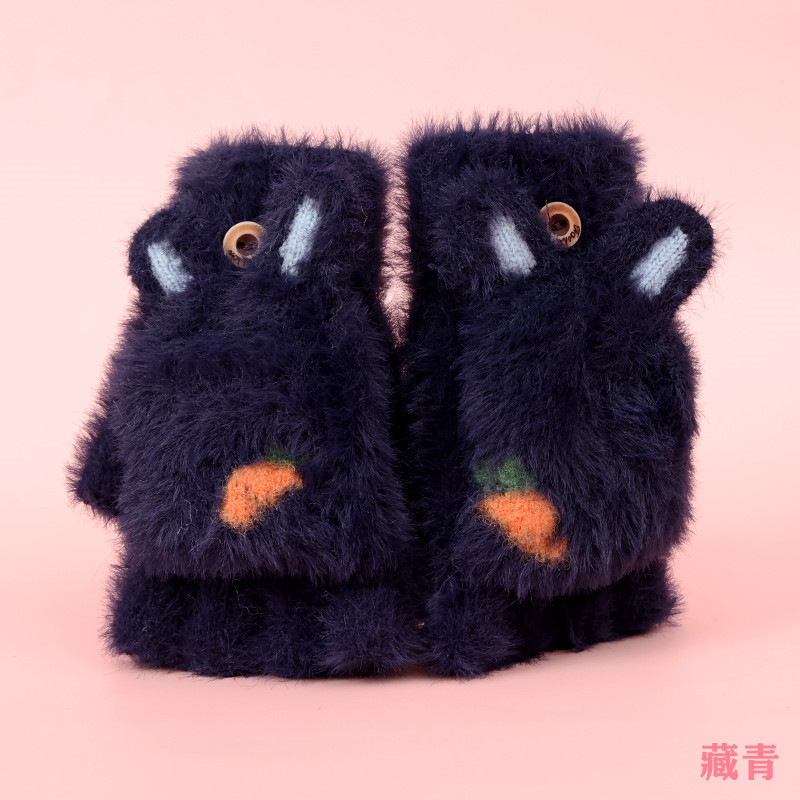 우주 토끼 하프 핑거 플립 온 중간 어린이 오픈 핑거 겨울 두꺼운 따뜻한 학생 소녀 용 귀여운 니트 장갑 쓰기