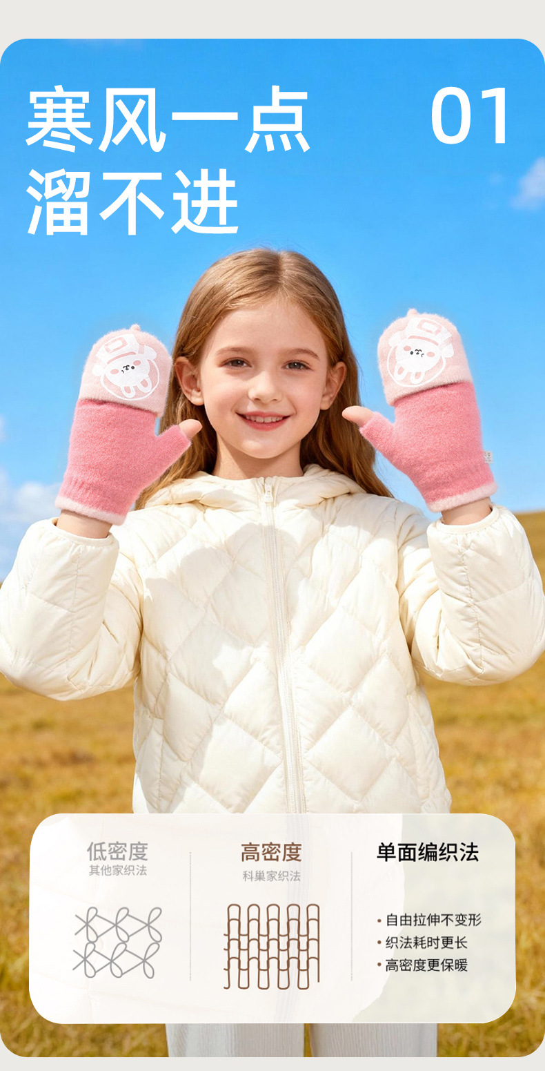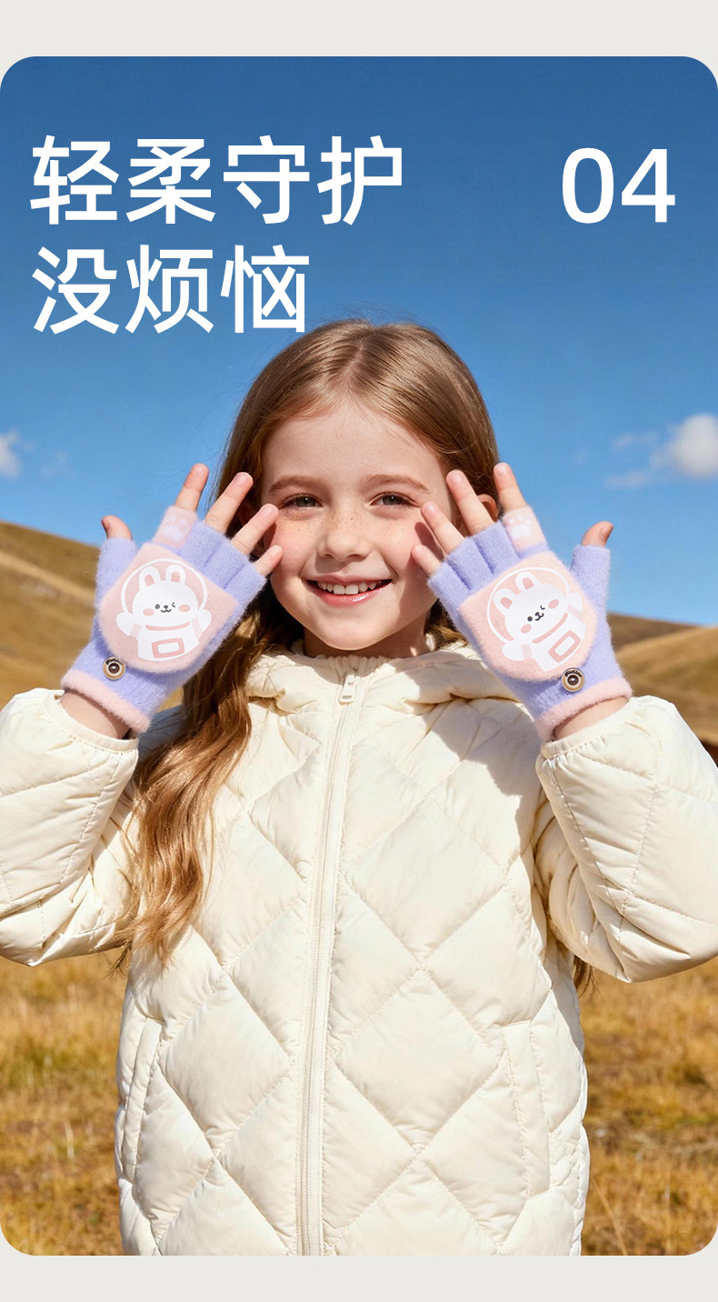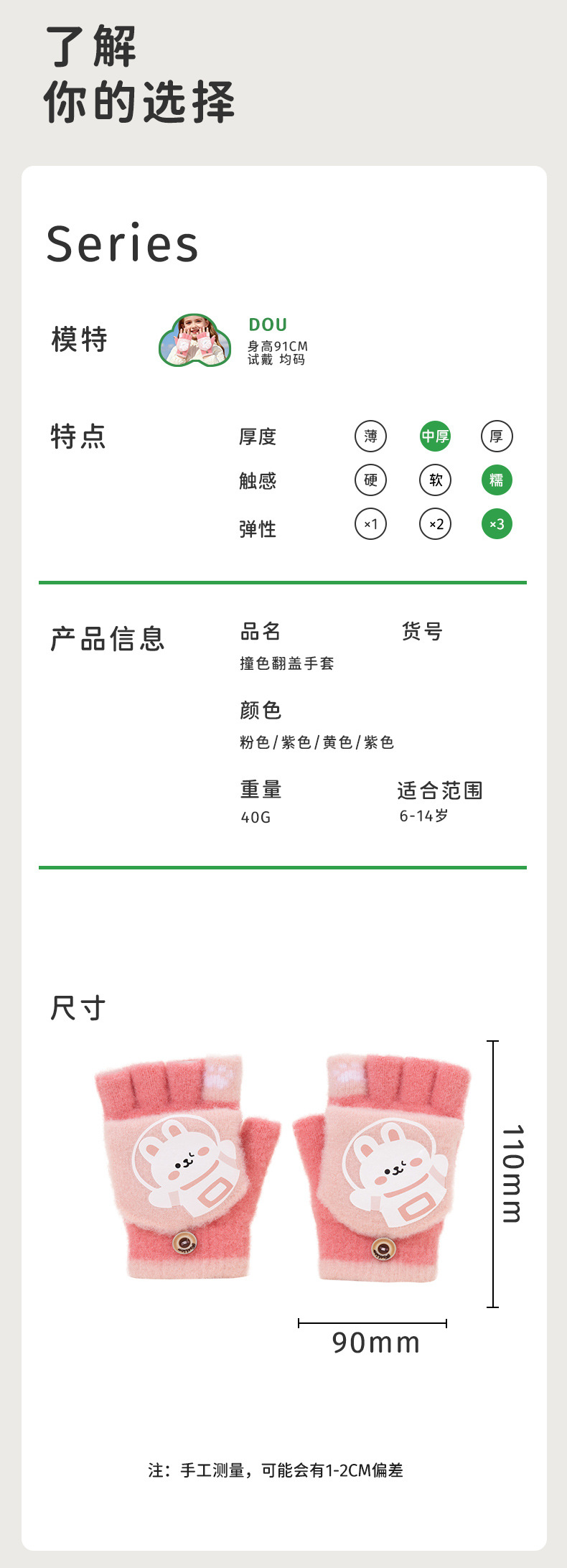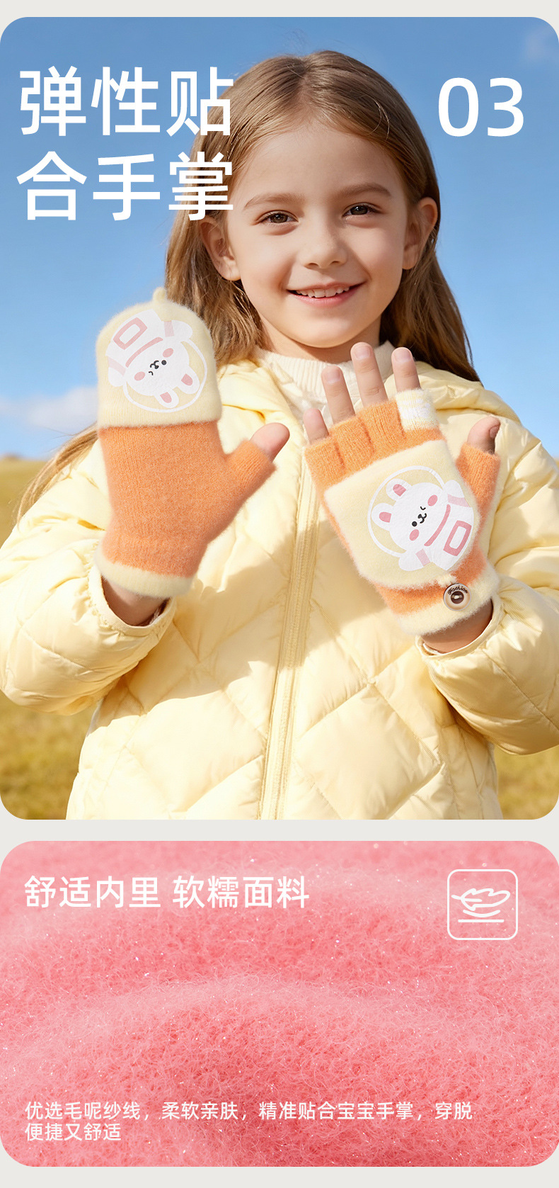 우주 토끼 하프 핑거 플립 온 중간 어린이 오픈 핑거 겨울 두꺼운 따뜻한 학생 소녀 용 귀여운 니트 장갑 쓰기