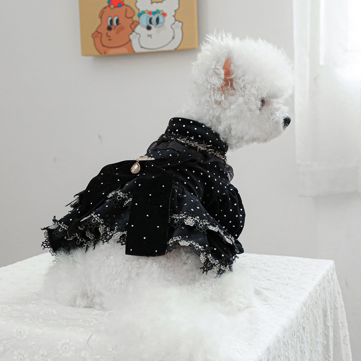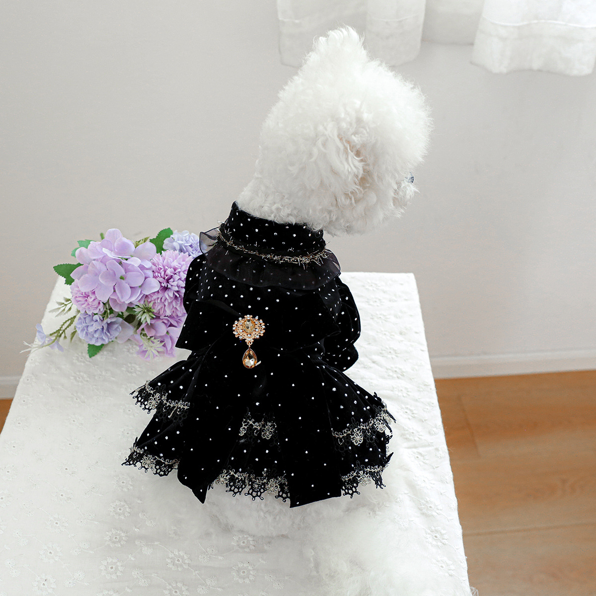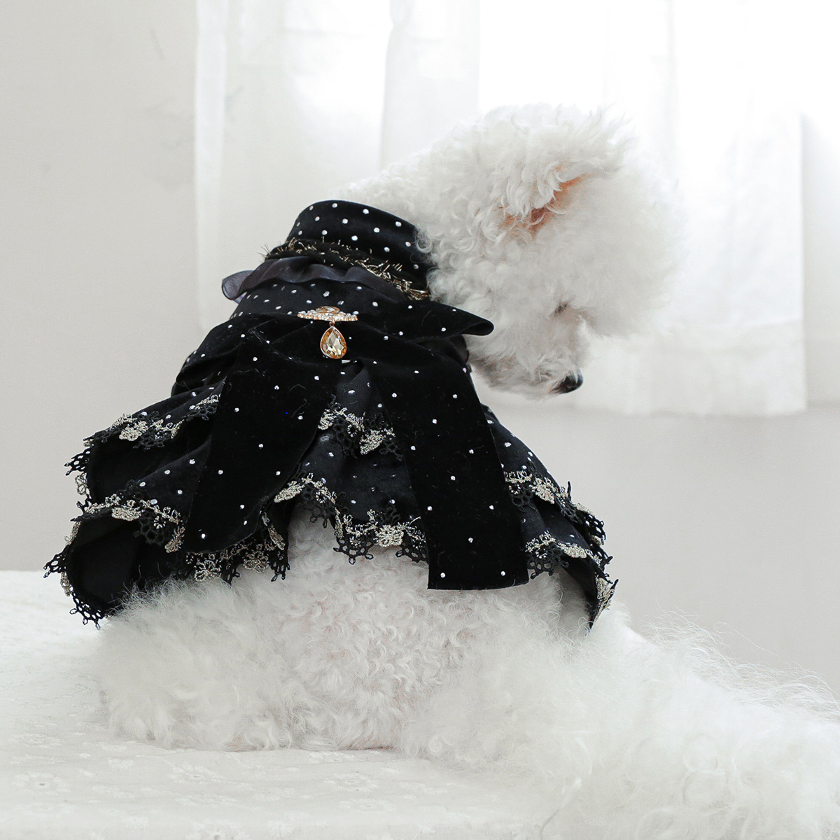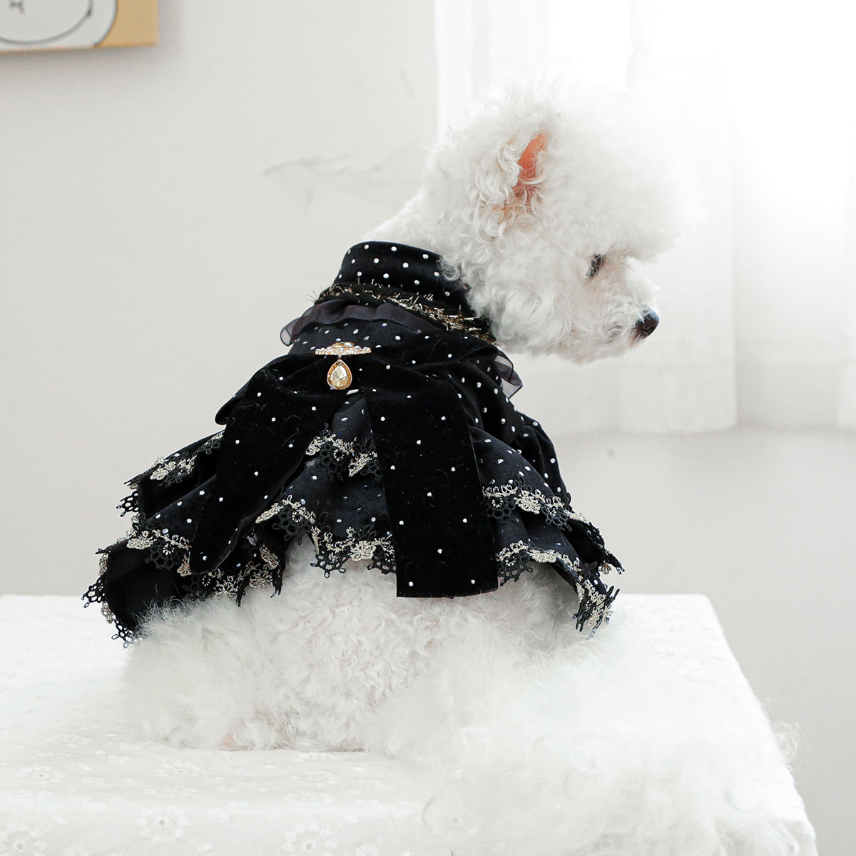 PETCIRCLE 펫써클 애완동물 의류 강아지 고양이 의류 귀족풍 블랙 골드 드레스스토어 가기