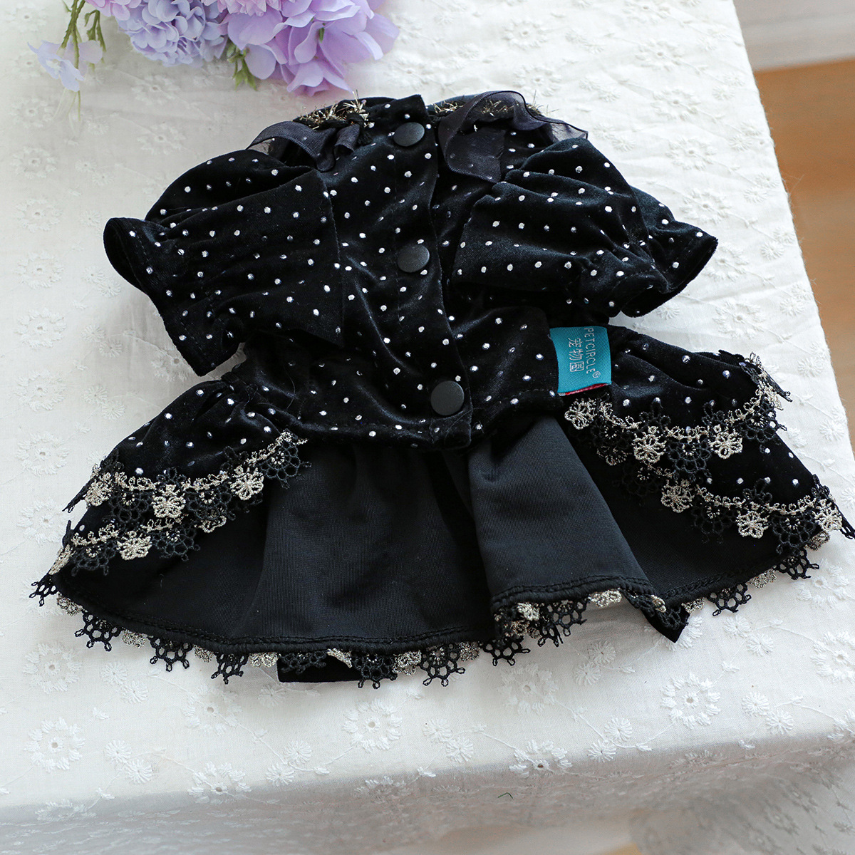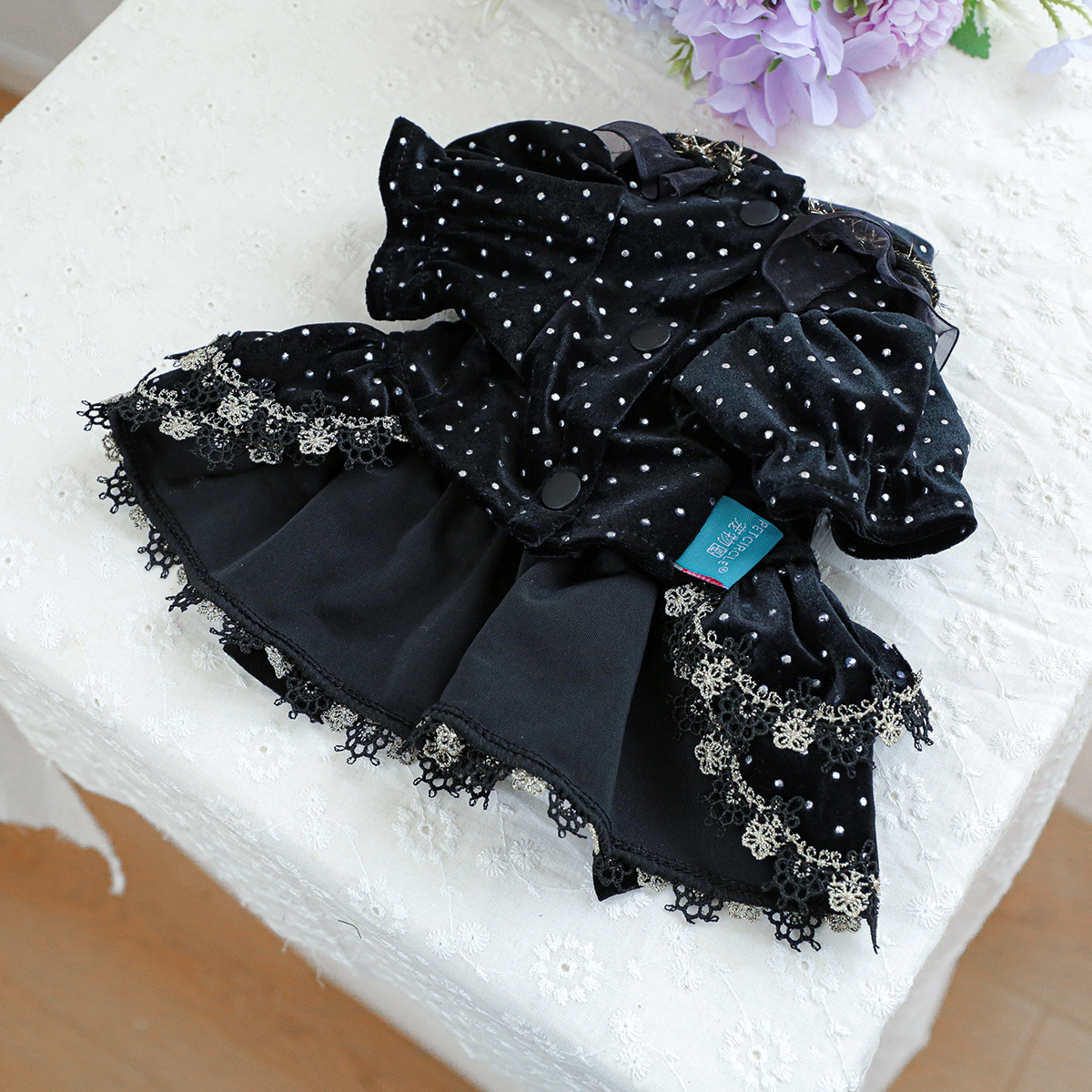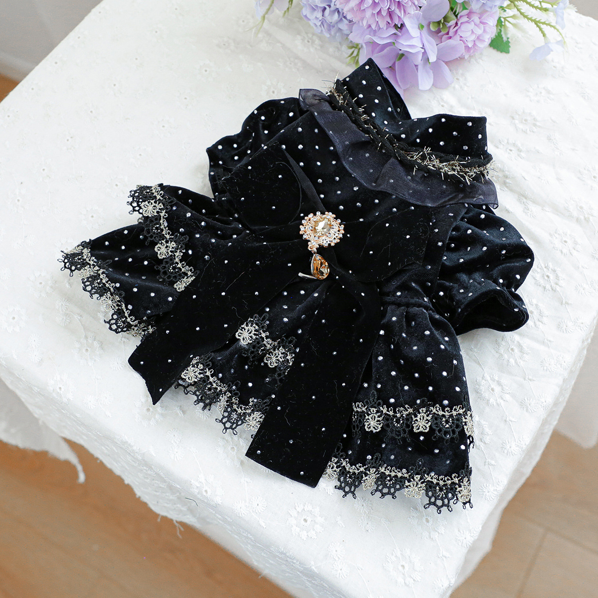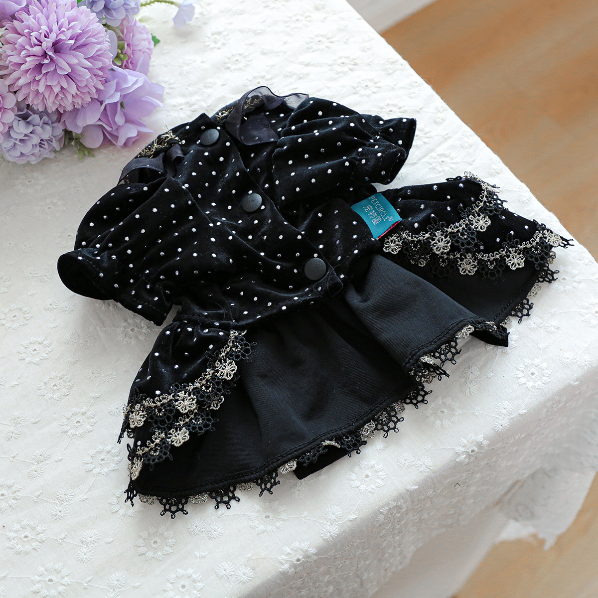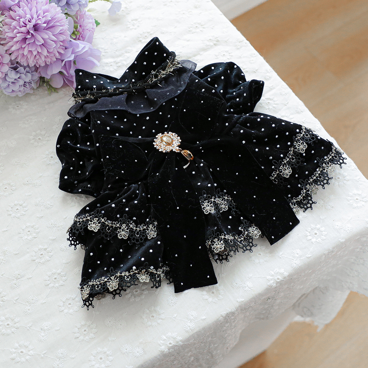PETCIRCLE 펫써클 애완동물 의류 강아지 고양이 의류 귀족풍 블랙 골드 드레스