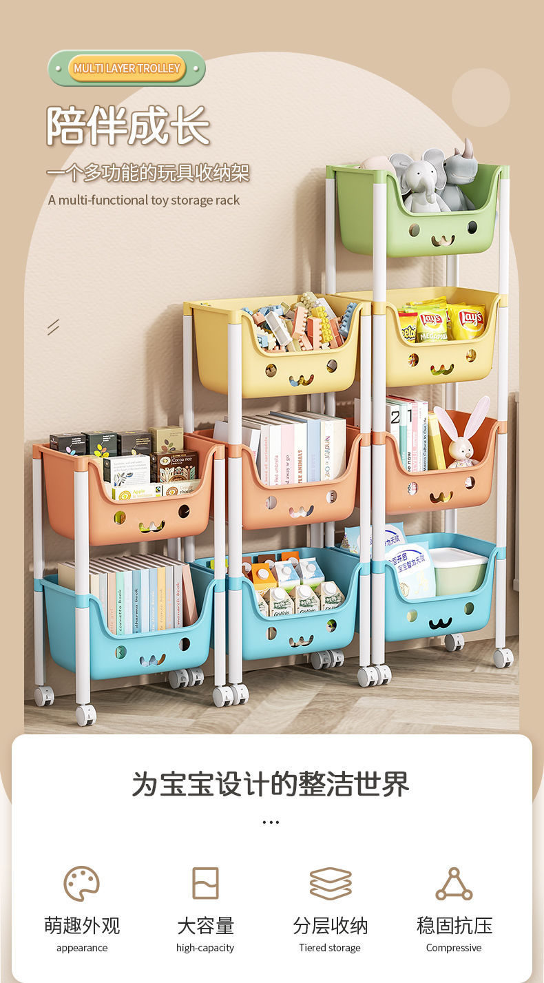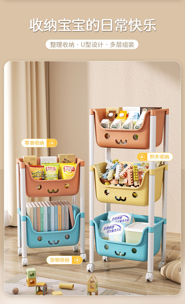 어린이 장난감 보관 랙 가정용 이동식 다층 책장 그림책 랙 거실 스낵 보관 트롤리