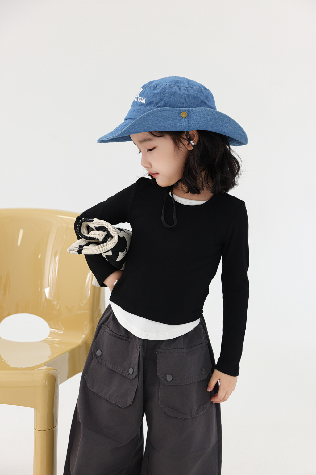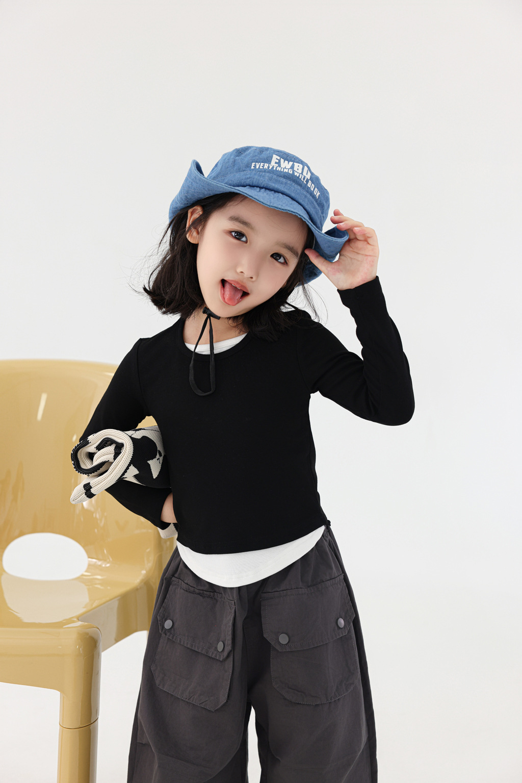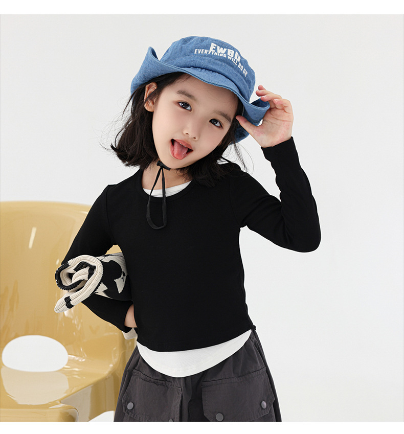 밀밭 시즌 아동복 소녀의 편안한 탄성 슬림 핏 컬러 매칭 긴팔 티셔츠 어린이 가짜 투피스 베이스 셔츠 탑스토어 가기