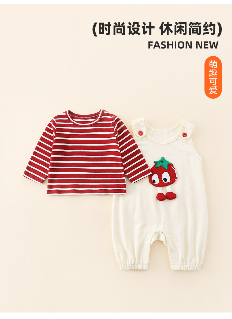 아기 봄가을 의류 세트, 여아 점프수트, 바지형 점프수트, 스트라이프 베이스레이어, 투피스 세트, 설날 의상