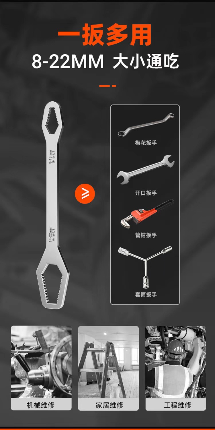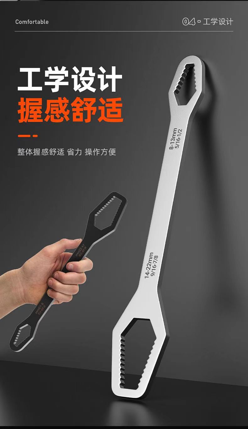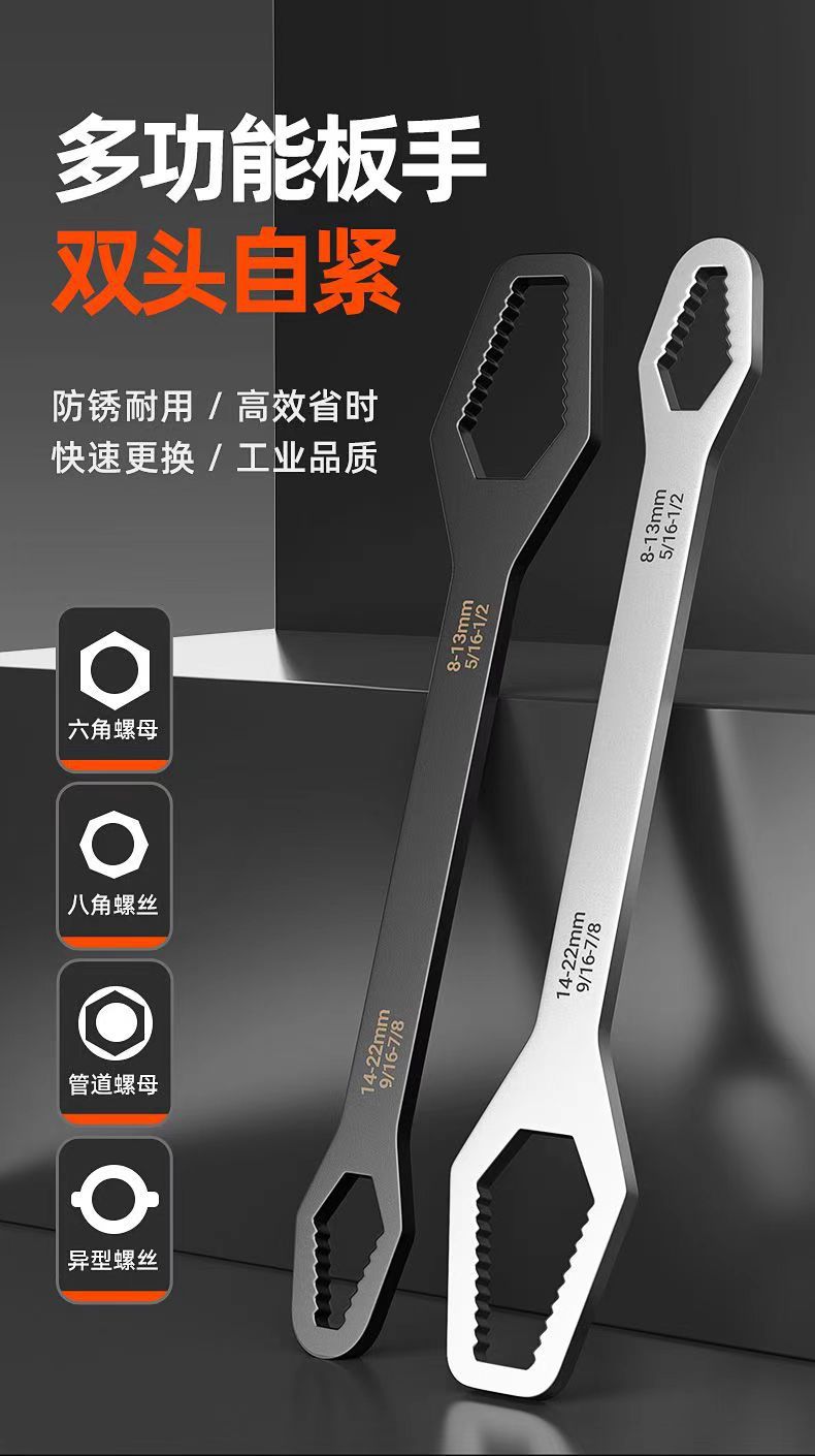 공장 재고 도매 보편적 인 렌치 다기능 링 렌치 이중 자체 조임 조정 가능한 8-24MM 이동식 렌치