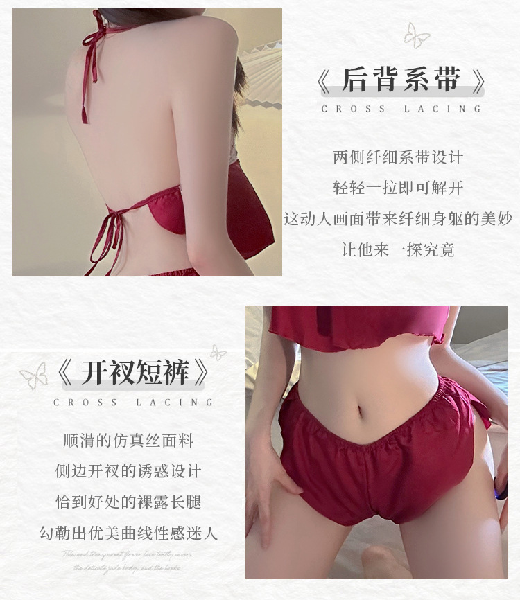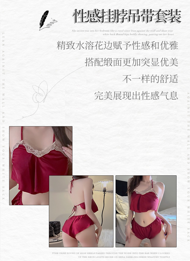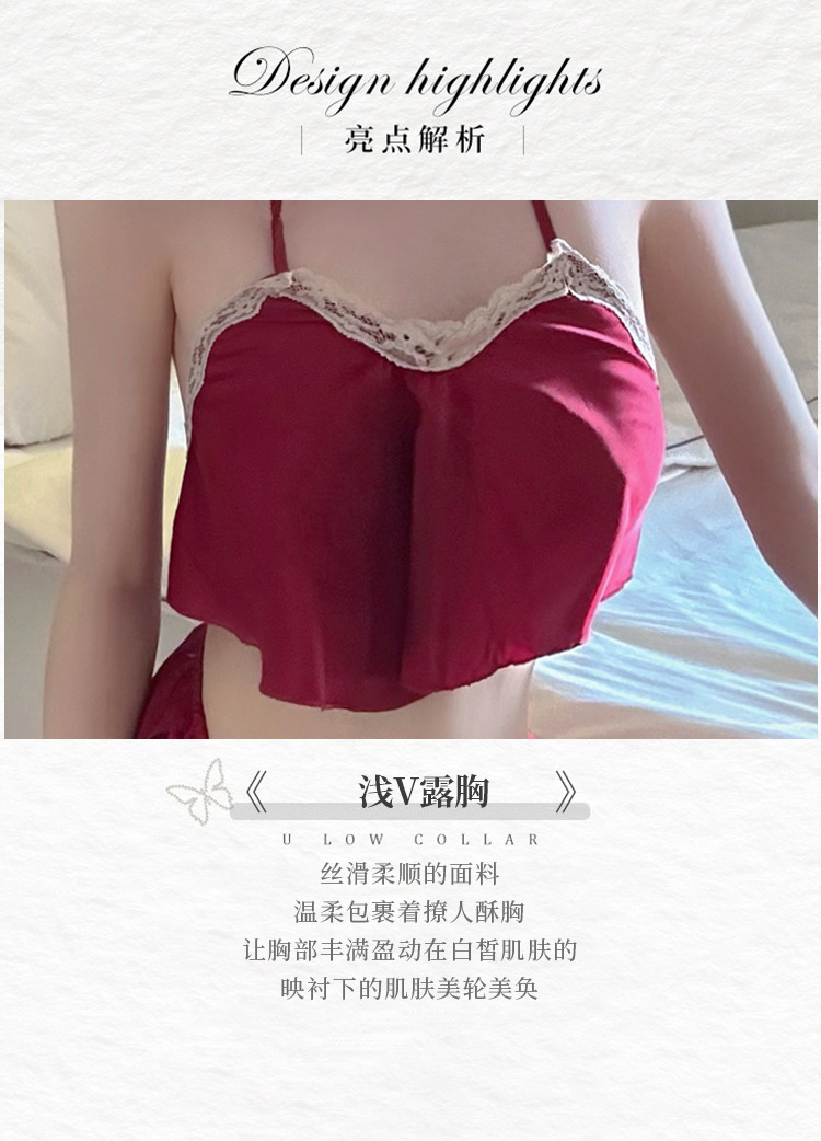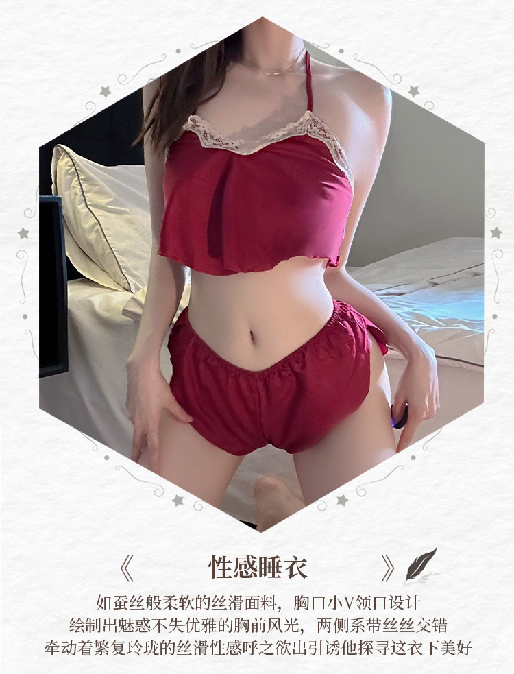사랑 섹시한 잠옷 여성의 순수한 뜨거운 배 반바지 세트 핫 레이스 슬링 레이스 홈 의류 세트