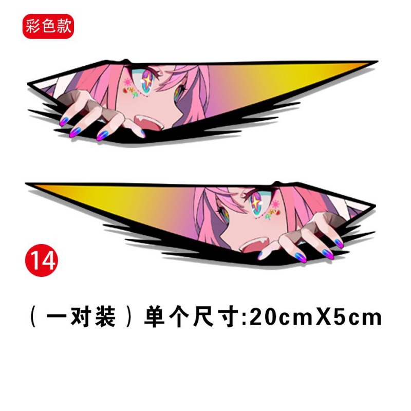 자동차 스크래치 차단 스티커 2 차 애니메이션 소녀 자동차 스티커 유리 성격 레이저 반사 쿨 아이 킬스토어 가기